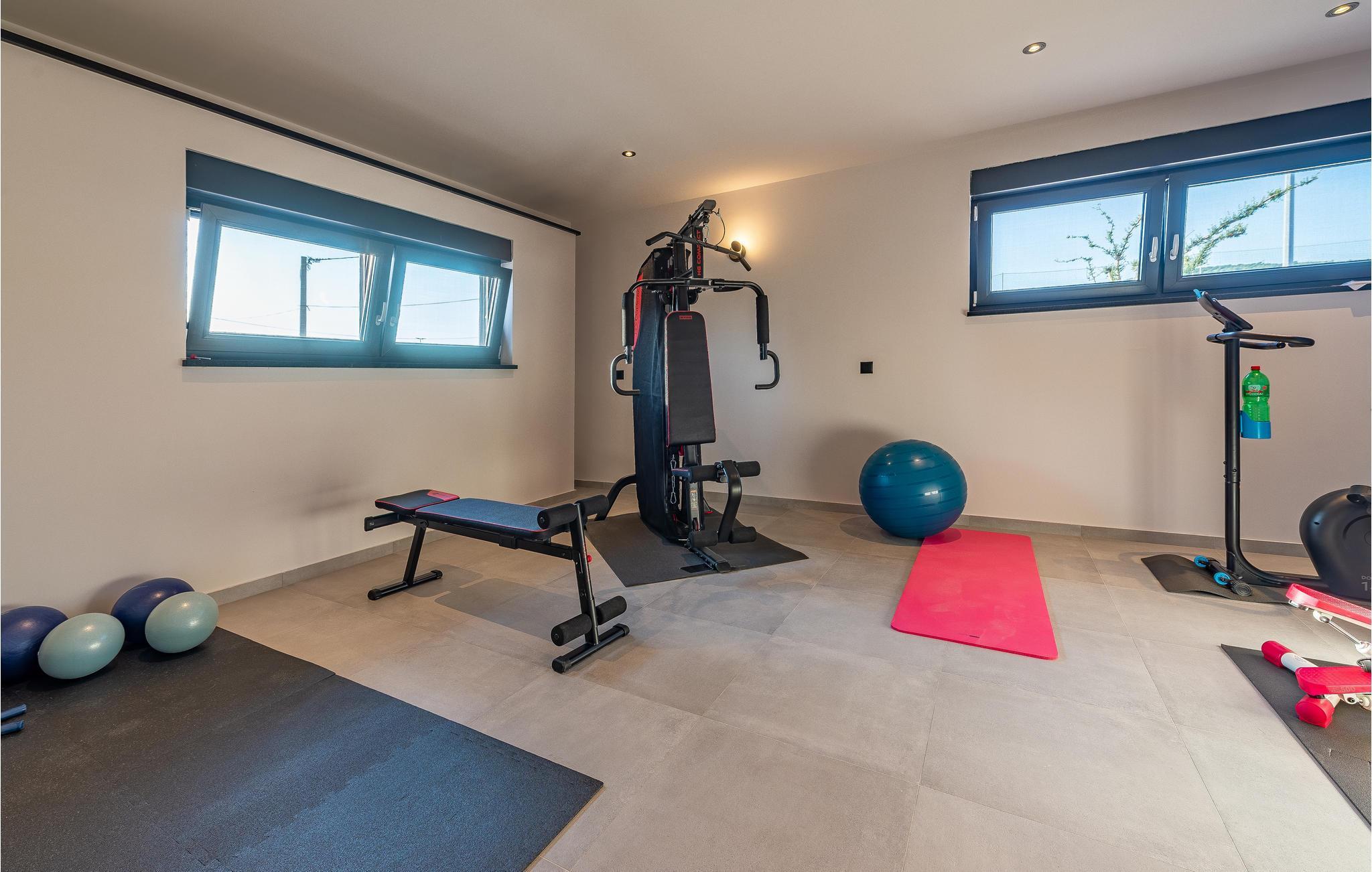 Glæd jer til en vidunderlig ferie i dette lækre, moderne feriehus, som med fem soveværelser og fem badeværelser kan rumme op til 12 personer. Indretningen på værelserne er enkel og moderne, og så er der tilmed en flot havudsigt. I har desuden adgang til fitnessudstyr og diverse underholdningsmuligheder.