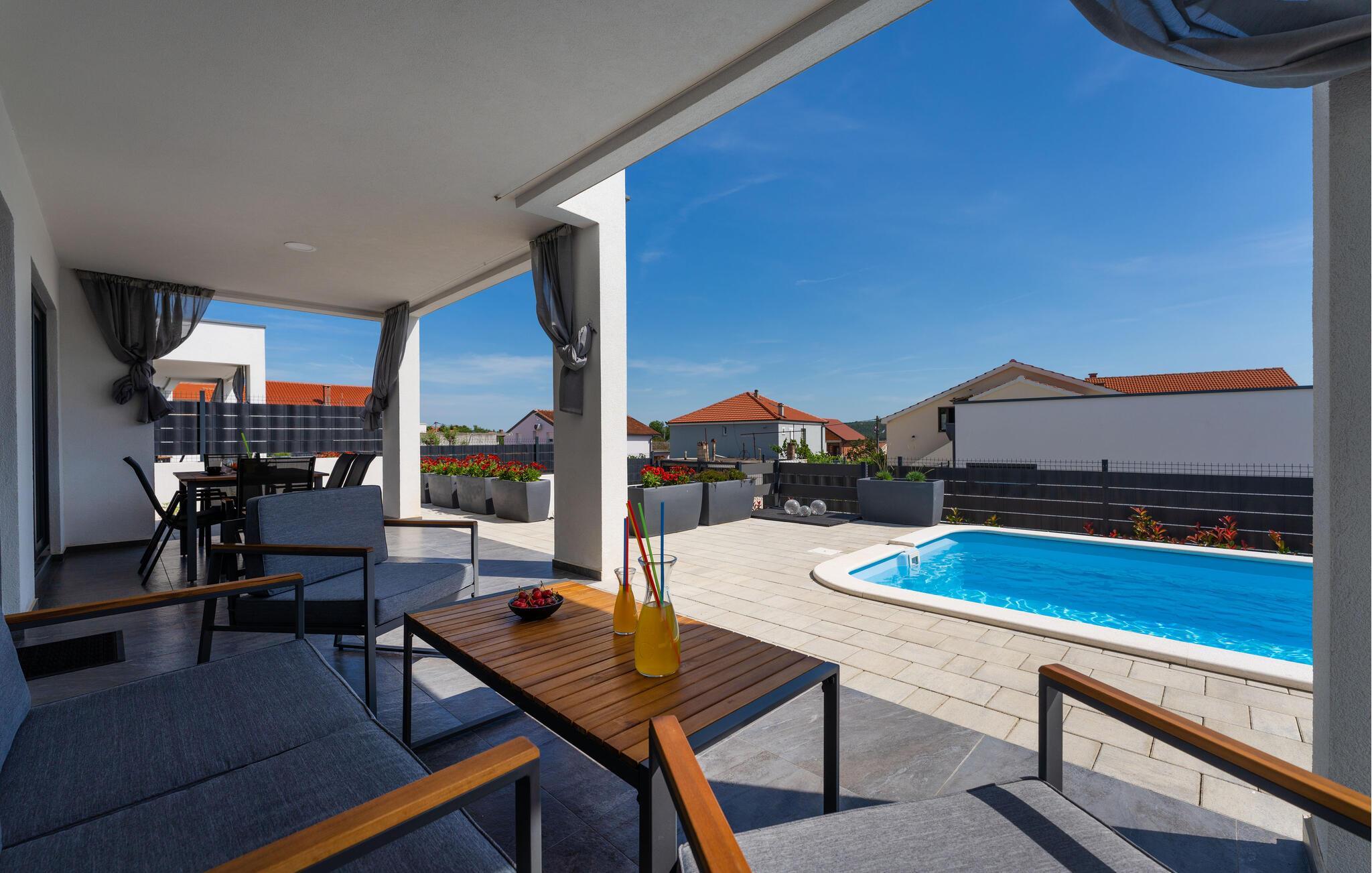 Nyd en solrig ferie i dette komfortable feriehus med pool.