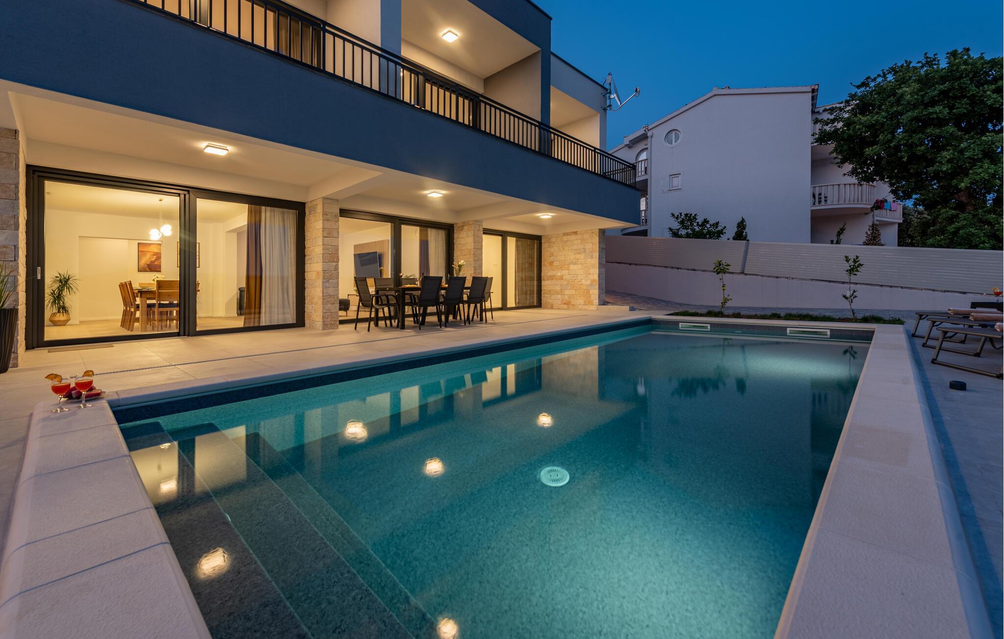 En lille stenstrand lokker lige foran huset – snorkel i det krystalklare vand. Tag en bådtur gennem kløfterne i Paklenica Nationalpark, udforsk den gamle bydel i Zadar med dens romerske ruiner, det berømte Havorgel og lysshowet "Hilsen til solen". smag lokale specialiteter i små konobas eller tag en dagstur til Krka Nationalpark med dens betagende vandfald.