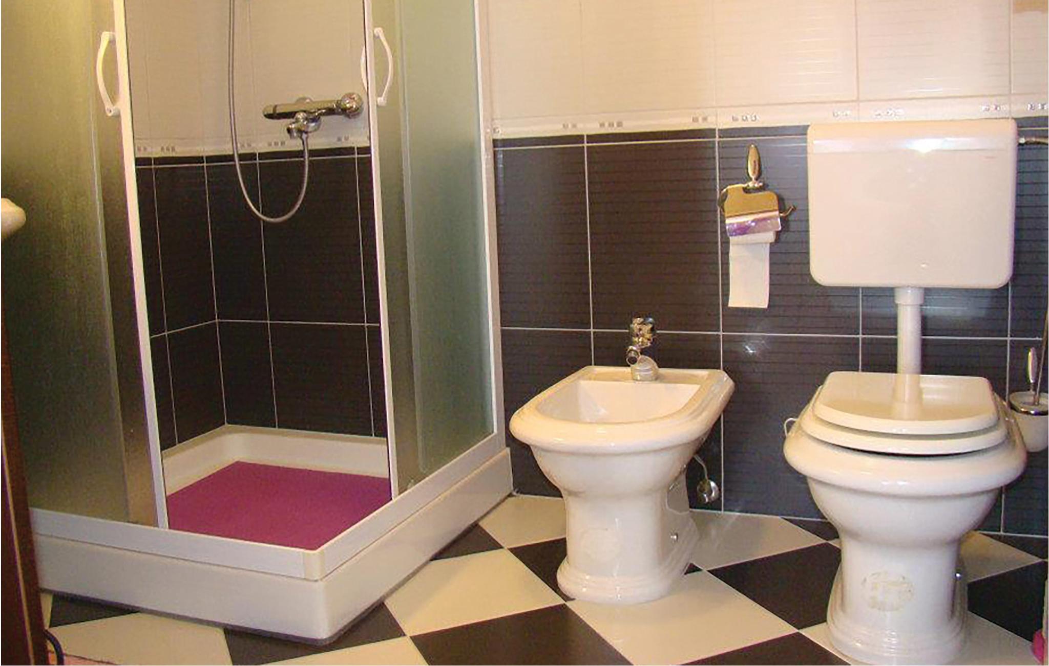 Badeværelse (nr. 1) - WC. Varmt og koldt vand. Bruser