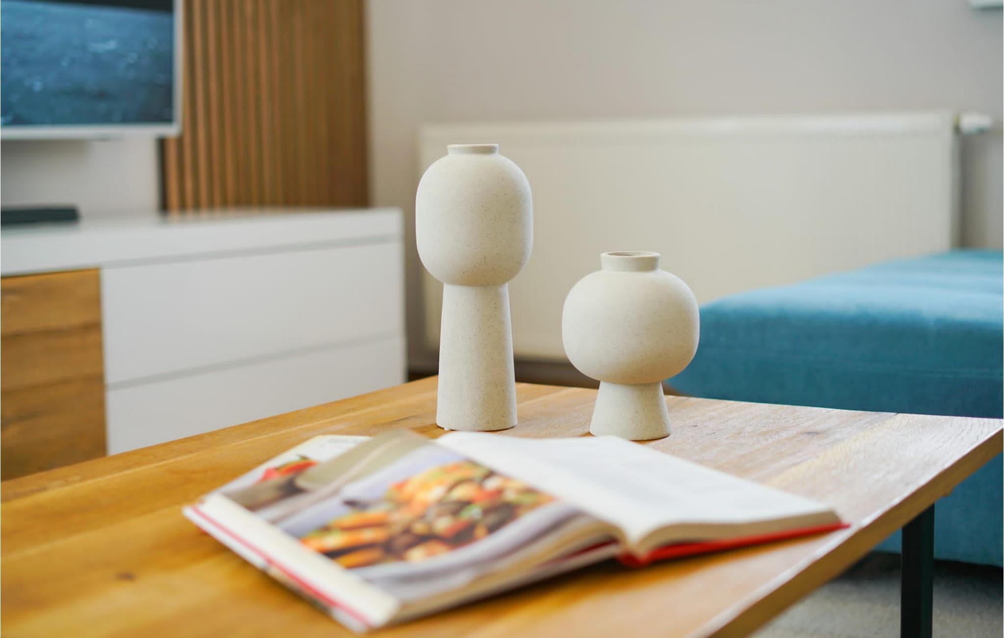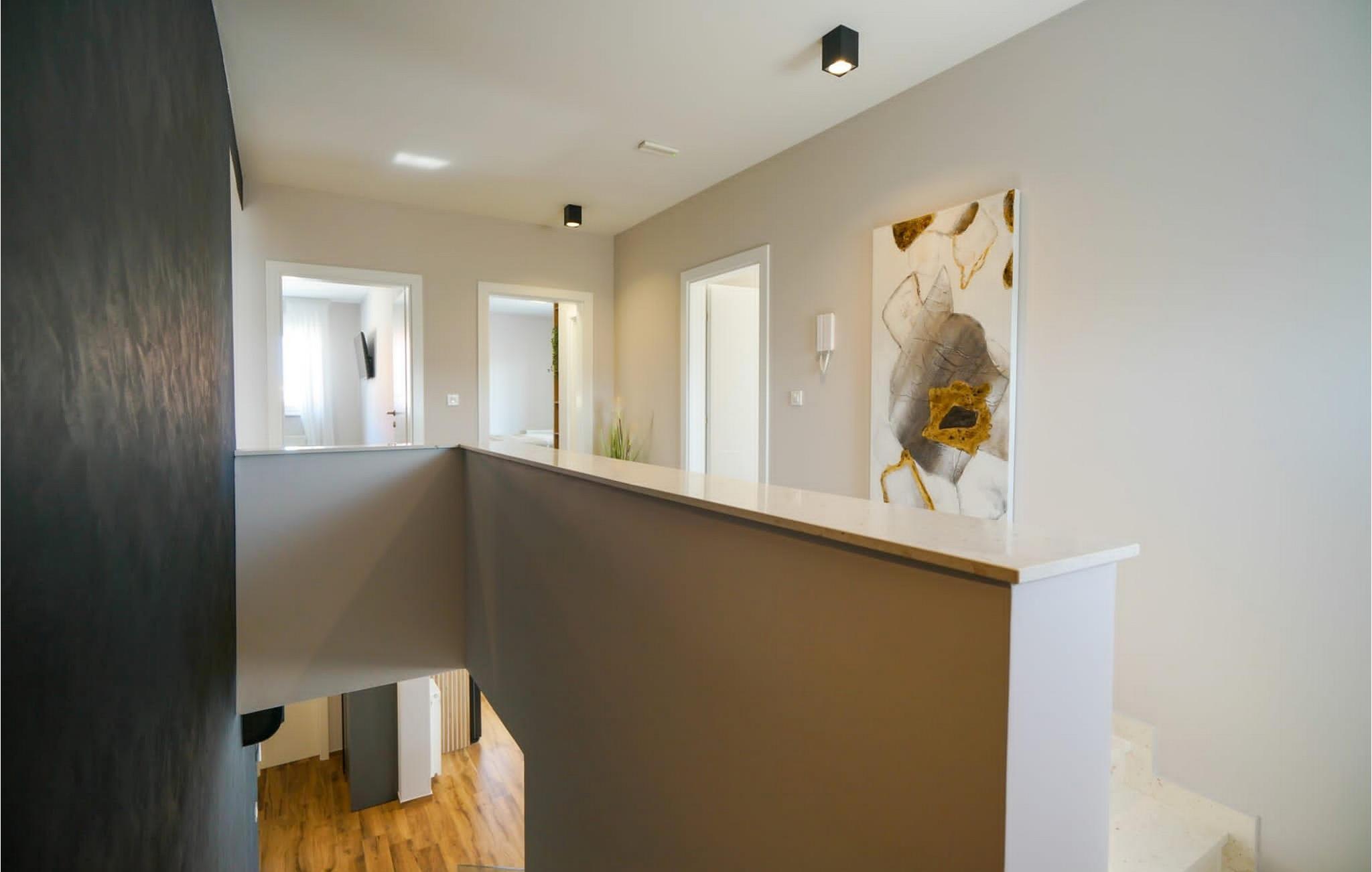 I den smukt beliggende Villa Manimm vil I opleve en helt exceptionel ferie. Varme farver og moderne, stilfulde møbler skaber en atmosfære, hvor I hurtigt kan slappe af og genoplade. Nyd afslappende timer på den indbydende sofa, snak med venner eller lyt til god musik. Hvis I føler jer aktiv, kan I træne jeres styrke og udholdenhed ved hjælp af træningsudstyret.