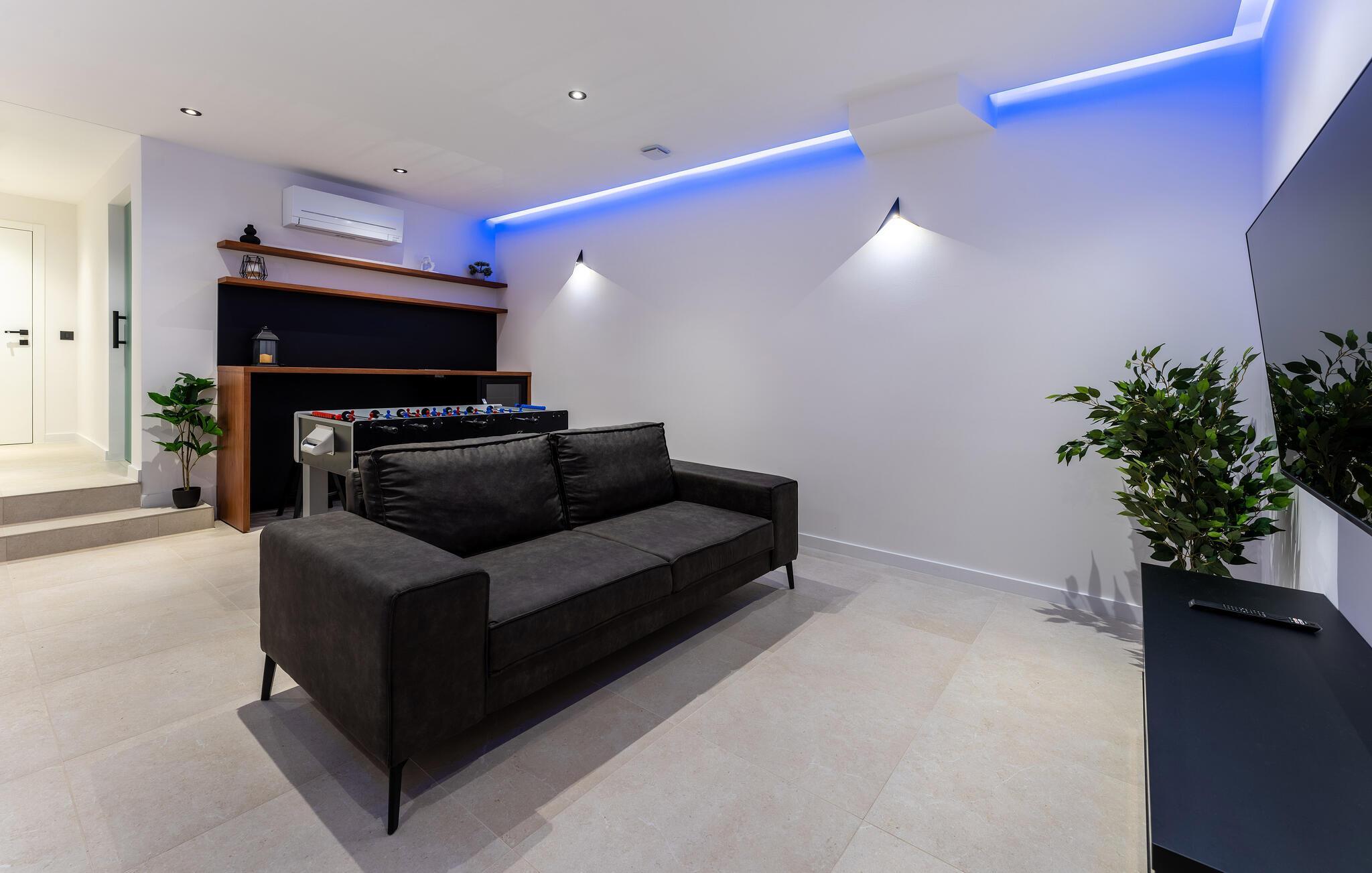 Den moderne indrettede luksusvilla Sense er det ideelle tilflugtssted for en afslappende flugt fra hverdagen. Nyd jeres yndlingsprogrammer med familie og venner i den rummelige stue eller lad børnene spille en omgang PlayStation. Tilbered friske måltider i det moderne køkken og server dem i spisestuen, som har direkte adgang til terrassen.
