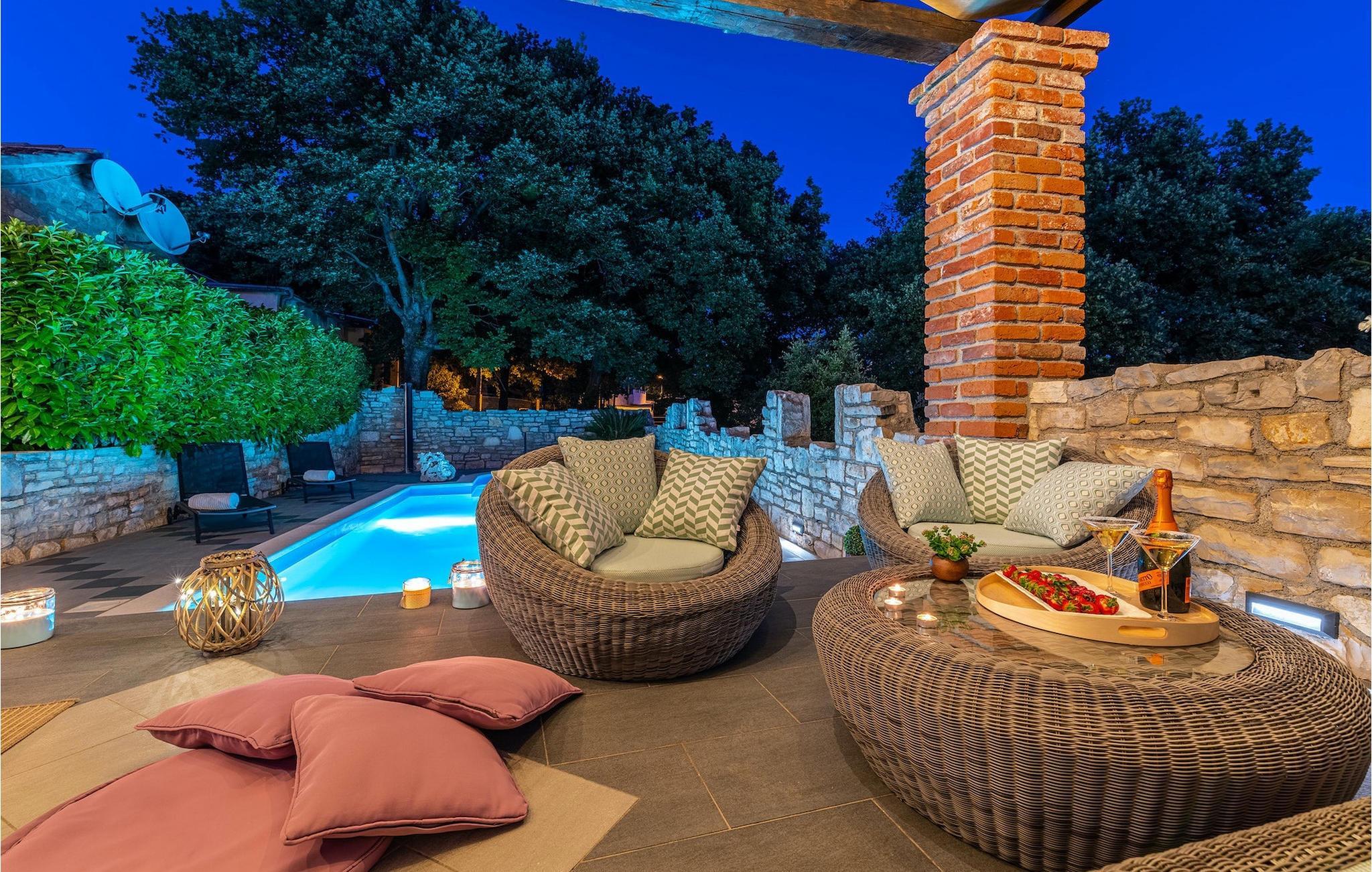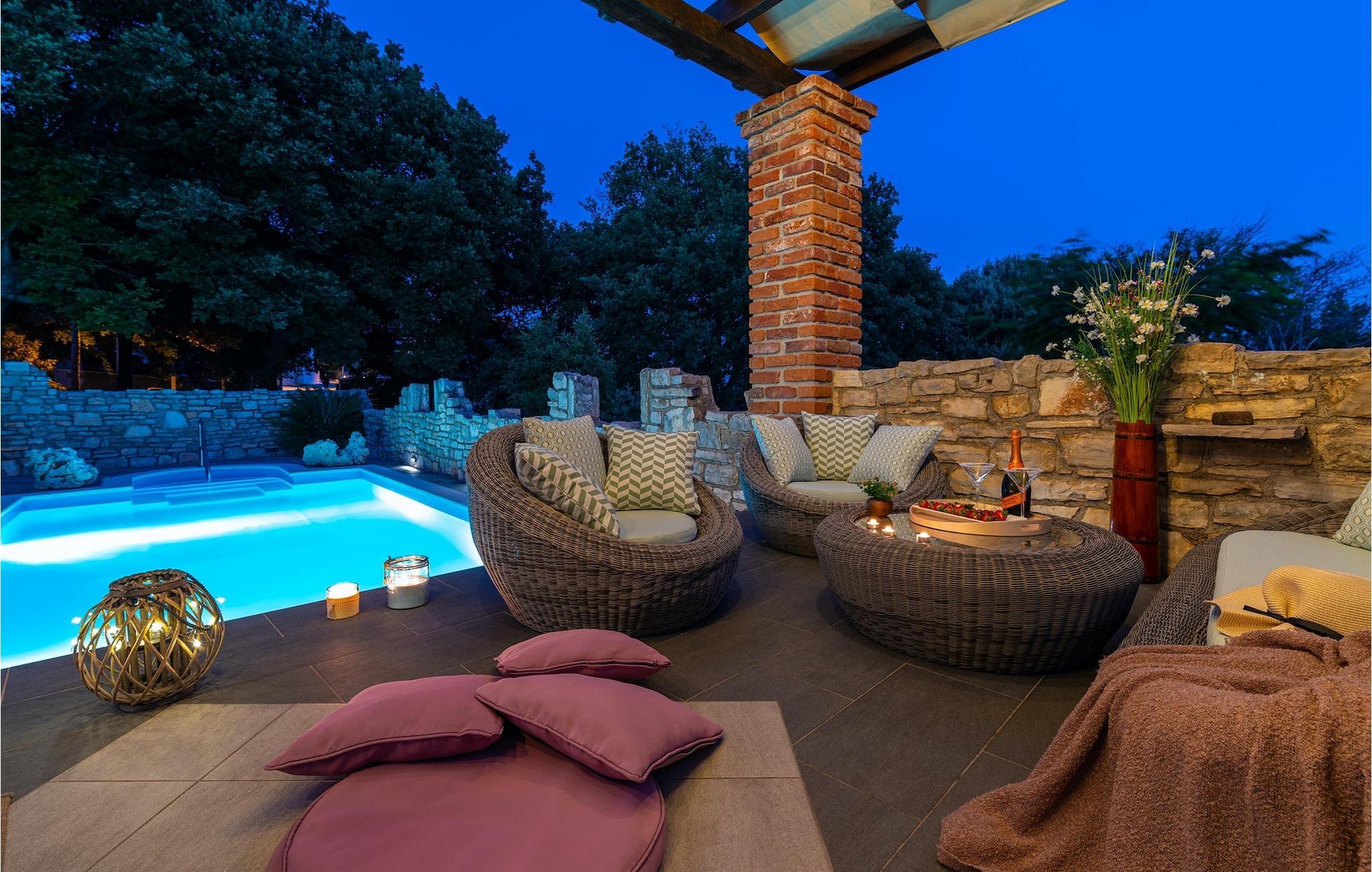 Den dejlige terrasse på Villa Gora har en attraktiv privat pool. Her kan du tage en dukkert og forfriske dig selv efter at have slikket solen på de komfortable liggestole og nydt en kold drink i hånden. Den skyggefulde lounge er det perfekte sted at se bølgerne blidt rulle ind i den fantastiske solnedgang eller nyde din første slurk kaffe om morgenen. På terrassen finder du også en skyggefuld spiseplads samt en kulgrill.