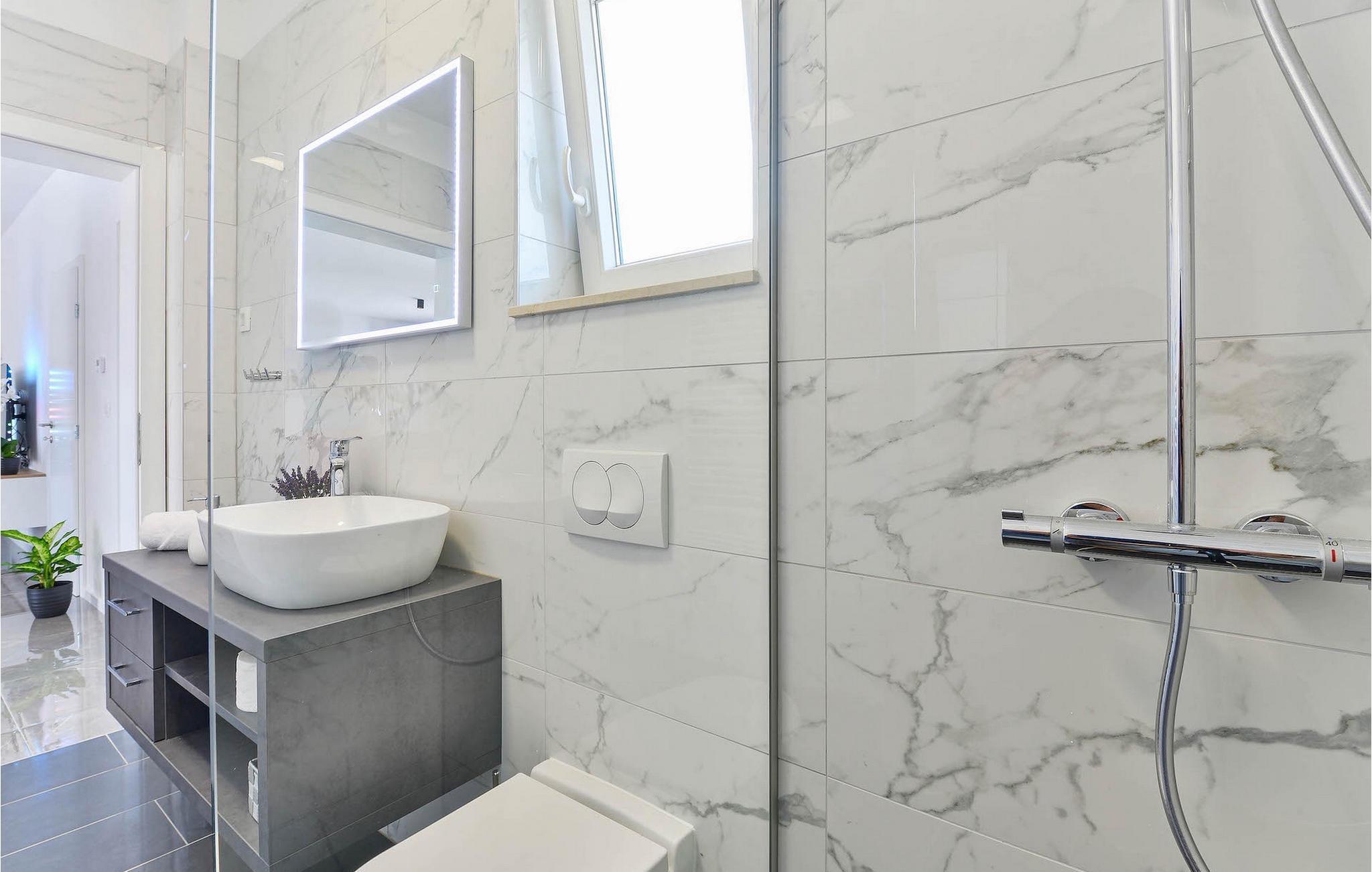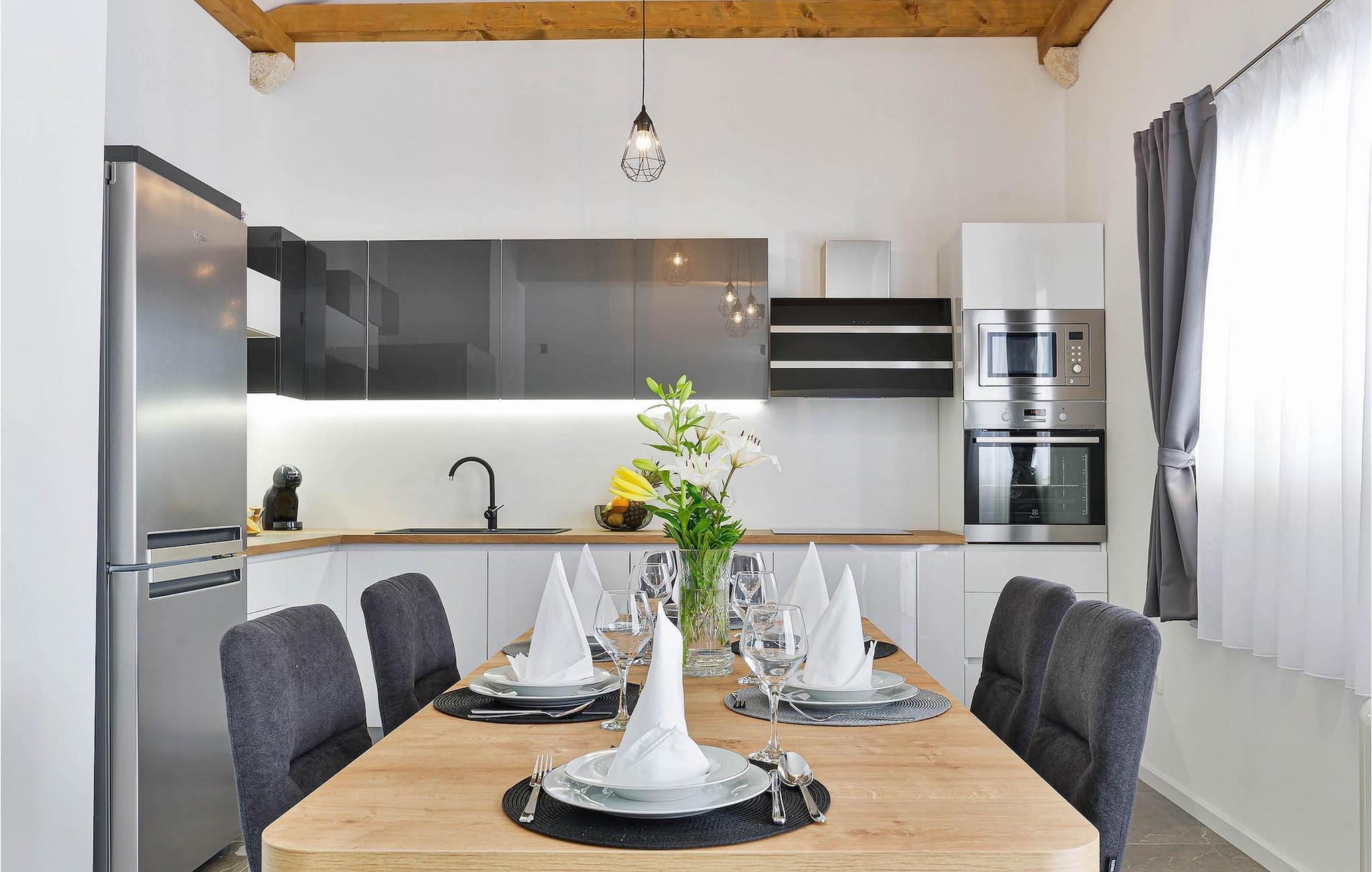 Hvis du leder efter en villa til en fredelig ferie, er Villa Banovi, et stenhus tæt på havet, det ideelle valg for dig. Den charmerende villa byder på tre soveværelser for op til otte gæster. På første sal i villaen er der to soveværelser. Begge værelser er rummelige, lyse og komfortable. Hvert værelse har aircondition, eget badeværelse, dobbeltseng, tv og udgang til balkonen. I stueetagen af villaen finder du et soveværelse med aircondition og eget badeværelse, en dobbeltseng og et tv. Stueetagen byder også på en stue med tv og en sofa, der kan rumme yderligere to personer. Stuen er forbundet med spisestuen og et fuldt udstyret rummeligt køkken i et åbent rum koncept. Hele dette rum har aircondition.
