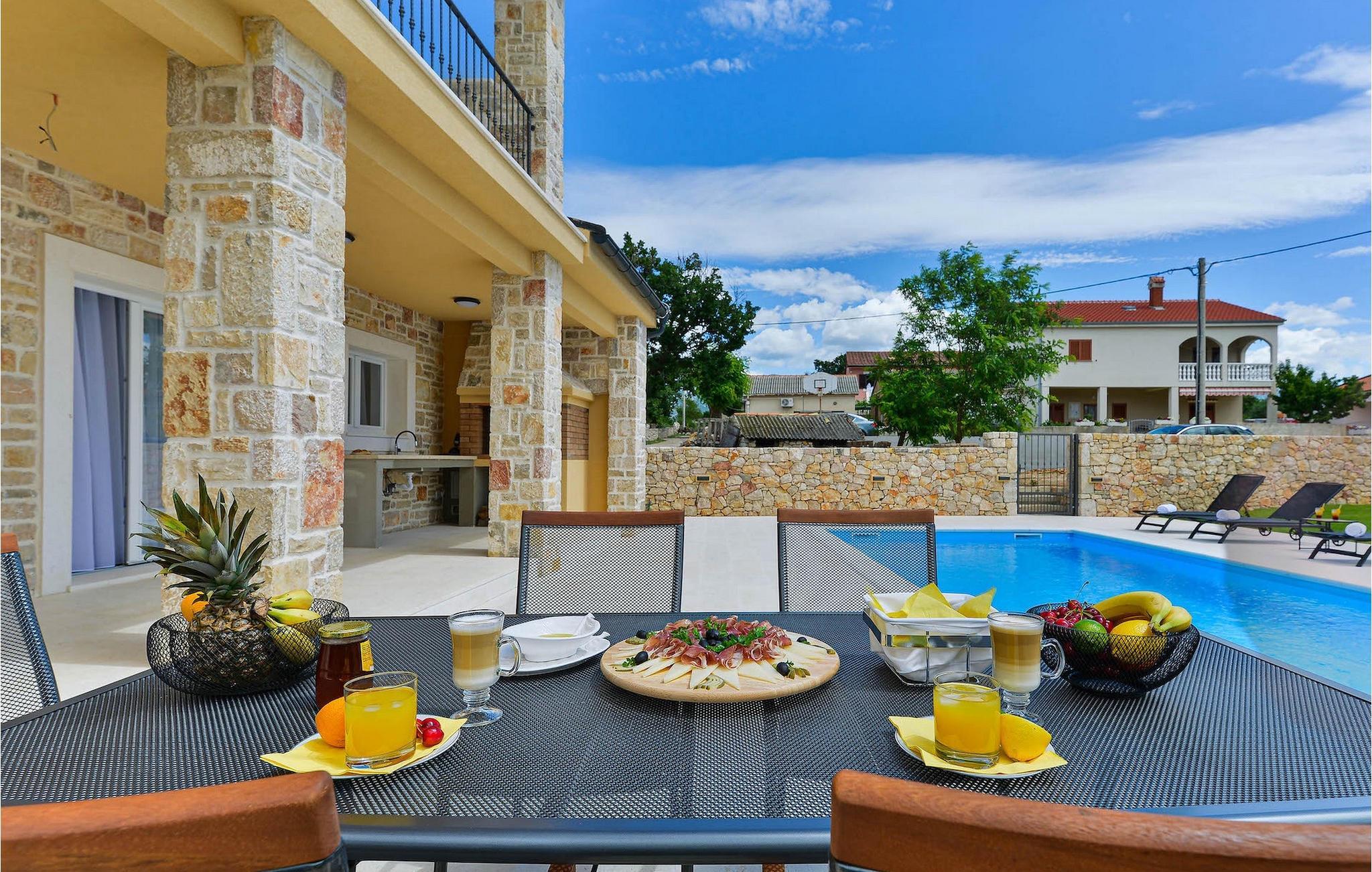 Ved siden af huset er der en overdækket terrasse med grill, hvor du kan tilberede lækre måltider. I villaens have er der swimmingpool og liggestole, hvor du kan slappe af med en bog eller en forfriskende drink, samt et spisebord. Ejendommen er fuldt indhegnet og har privat parkering til 4 biler. Book din bolig i Villa Banovi og tilbring en afslappende ferie med familie og venner.Villa Banovi er beliggende nær Posedarje i Zadars bagland. Udover det kulturelle og historiske tilbud byder Dalmatien på et unikt gastronomisk tilbud, ekstremt berømt i denne del af Europa. Hjemmelavet dalmatisk prosciutto og middelhavsblå muslinger er blot en del af det rige gastronomiske tilbud i denne region. Denne del af Dalmatien er også hjemsted for mange smukke nationalparker og naturparker. I dette område finder du 3 naturparker - Telašcica, Northern Velebit og Vrana Lake, samt 5 nationalparker - Paklenica, Plitvice, Kornati, Krka og Velebit, som gør Zadar til et af de bedste turistmål i Kroatien. Den berømte Alfred Hitchcock sagde engang, at den smukkeste solnedgang i verden er i Zadar. Benyt lejligheden til at besøge denne arkitektoniske perle ved Adriaterhavet og nyd den kulturelle og historiske rigdom i den gamle bydel. Gå ikke glip af Havorgelets naturlige symfoni og lysets spil ved Hilsen til Solen med en slurk af den berømte Zadar Maraschino - en yndlingsdrink for de lokale. I nærheden ligger øen Pag, berømt for sin Pag-ost, blonder og gamle olivenlunde.