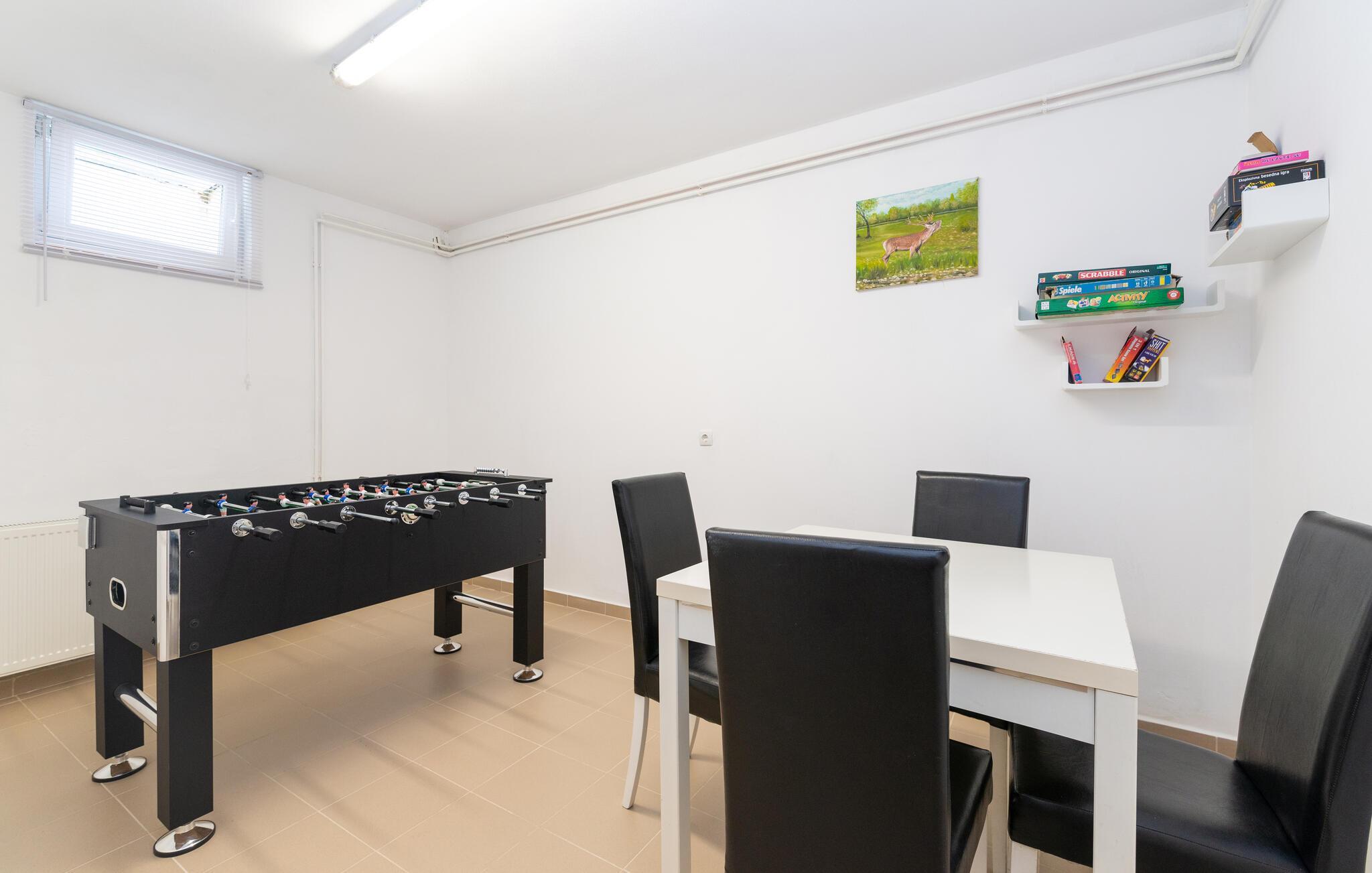 En privat udendørspool er også tilgængelig på den indhegnede grund, som spreder sig over 1200 m², og der er adskillige spil for store og små.