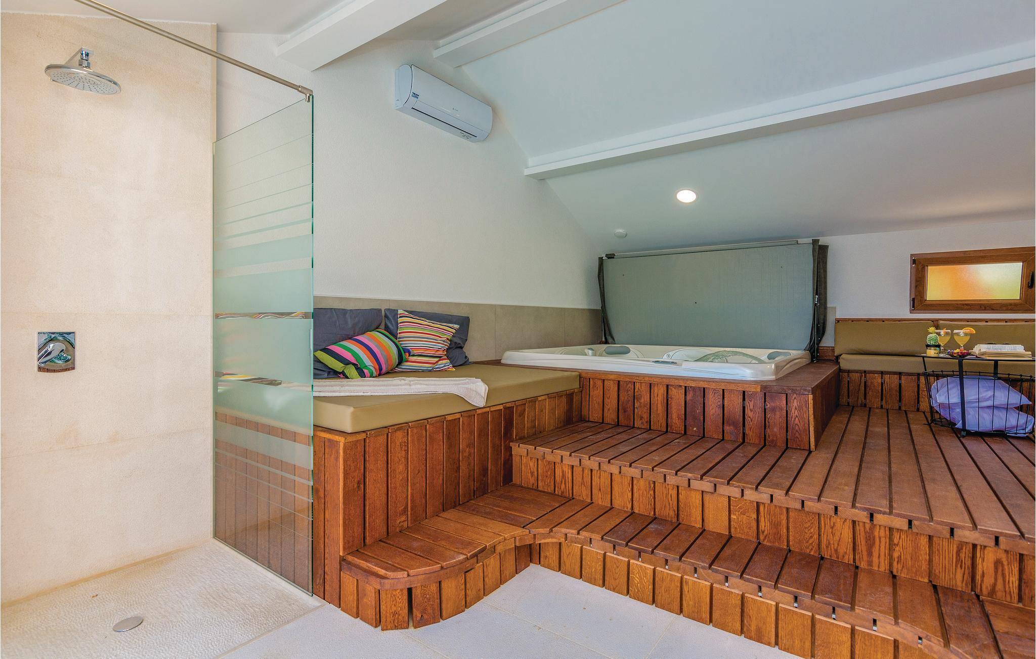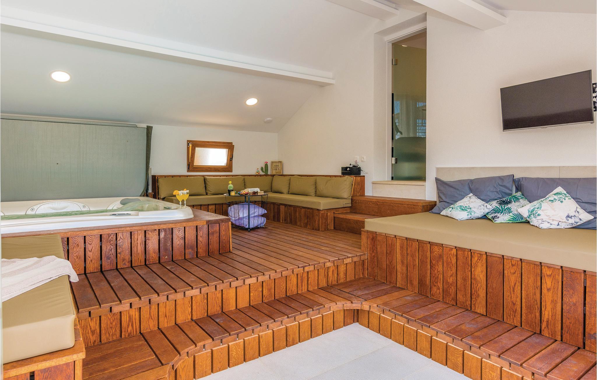 Moderne feriehus med pool og smuk udsigt til det grønne landskab og havet. Et ideelt feriemål for familier eller grupper af venner da huset rummer tre separate lejligheder. I stuen ligger en lejlighed med fire soveværelser, mens der ovenpå ligger to lejligheder med hhv. to soveværelser. Ydertrapper, laveste loftshøjde ca. 180 cm. Fra terrasserne i overetagen har I panoramaudsigt til havet, mens poolen med solsenge, grill og endnu en overdækket terrasse ligger i stuen, samt en konoba, et rum hvor I kan slappe af og hygge jer sammen. I underetagen, med adgang af en udendørs trappe, er der også et rum hvor der er billardbord samt et andet med en whirlpool. Tag også på rafting på floden Zrmanja eller på safari i Velebit-bjergene.