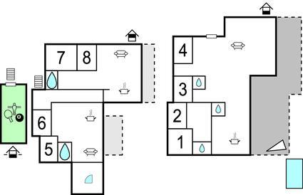 Badeværelse (nr. 5) - WC. Varmt og koldt vand. Bruser