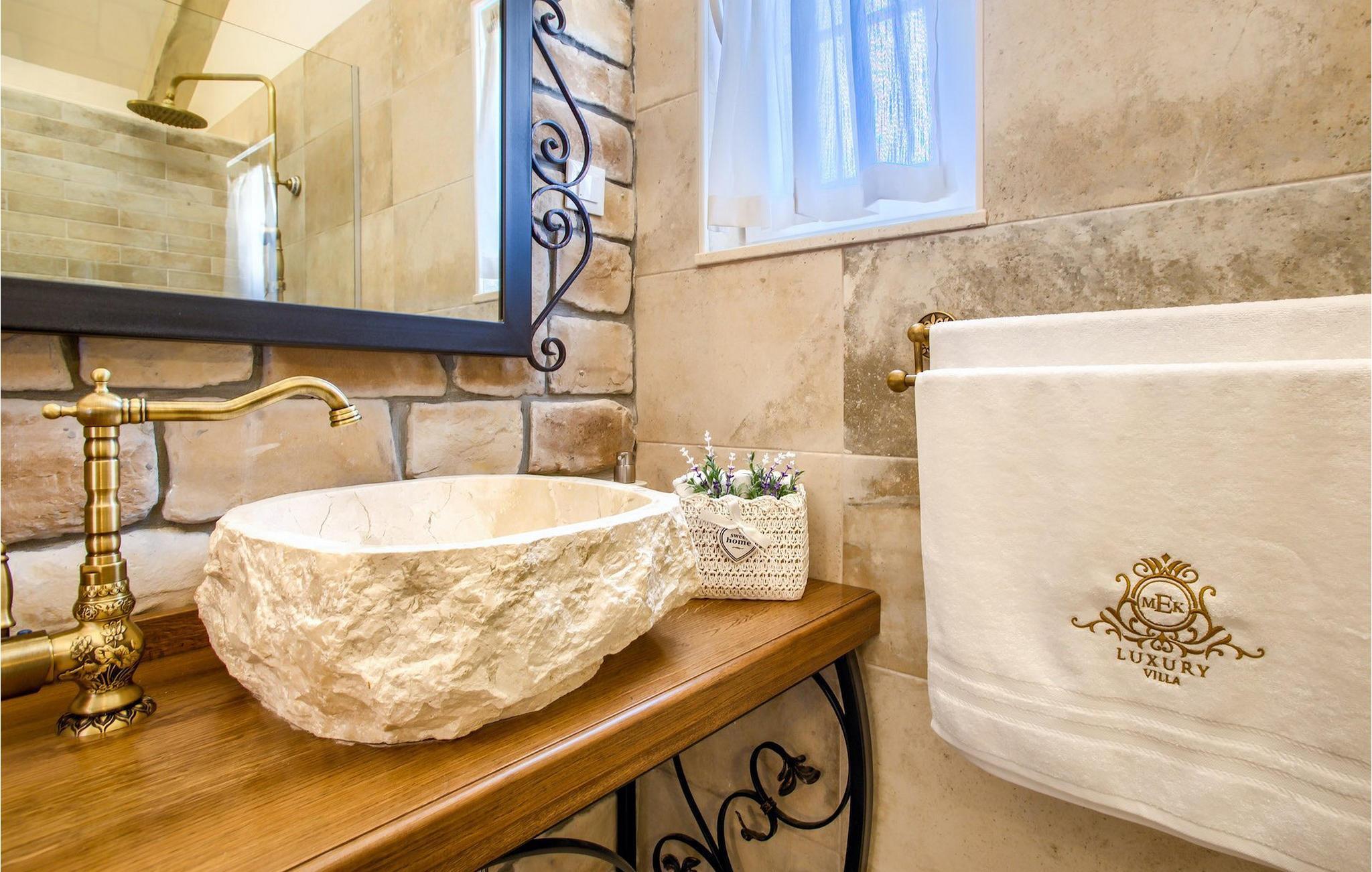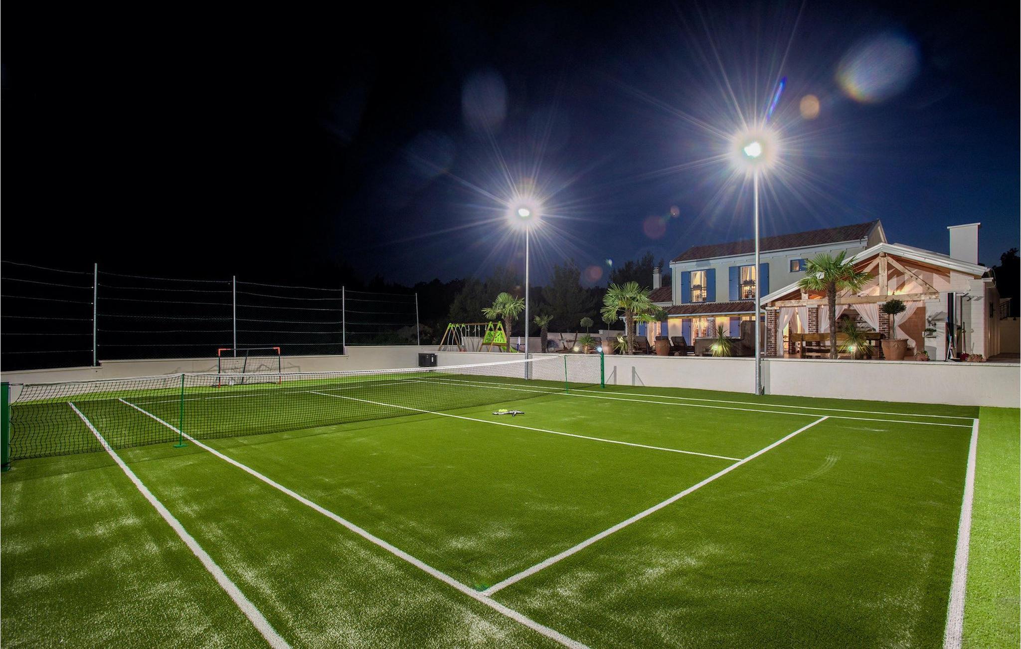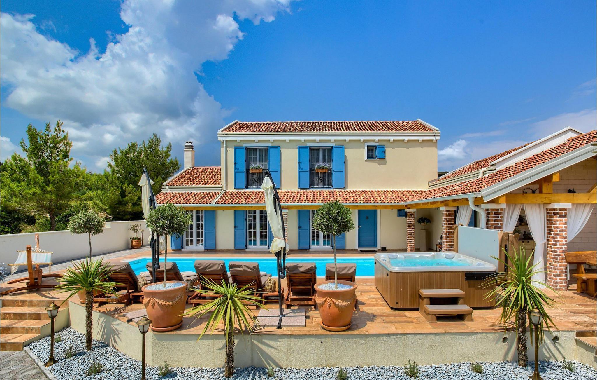 Villa Mek er virkelig en af slagsen! Villaen byder på alt hvad du kan få brug for under din ferie, både inde og ude. I stueetagen i åben plan finder du et fuldt udstyret køkken, en hyggelig stue og en spisestue med plads til 8 gæster. Stueetagen har direkte adgang til terrassen og villaens store have. I alt er der 3 luksusværelser. En af dem ligger i stueetagen, de to andre er ovenpå. For at gøre din ferie endnu mere luksuriøs har hvert af soveværelserne sit eget badeværelse. Allerede ved første øjekast er det tydeligt, at villaen er indrettet med omhu - opmærksomheden på detaljerne er utrolig. Men det er ikke alt! træder du udenfor, er der en indbydende swimmingpool til din rådighed, hvor du kan tilbringe dagene med at slikke solen. For at fuldende din ferie er der også en udendørs jacuzzi til din rådighed samt en sauna, som er placeret i et af badeværelserne. For dem, der kan lide at forblive aktive på deres ferie, har villaen sin egen tennisbane, der kan omdannes til en fodbold- eller basketballbane. For de mindste gæster er der også en legeplads! Hvis du vælger denne villa, er en utrolig ferie garanteret!Bådudlejning og udflugter til rådighed efter anmodning - kontakt os for mere information.