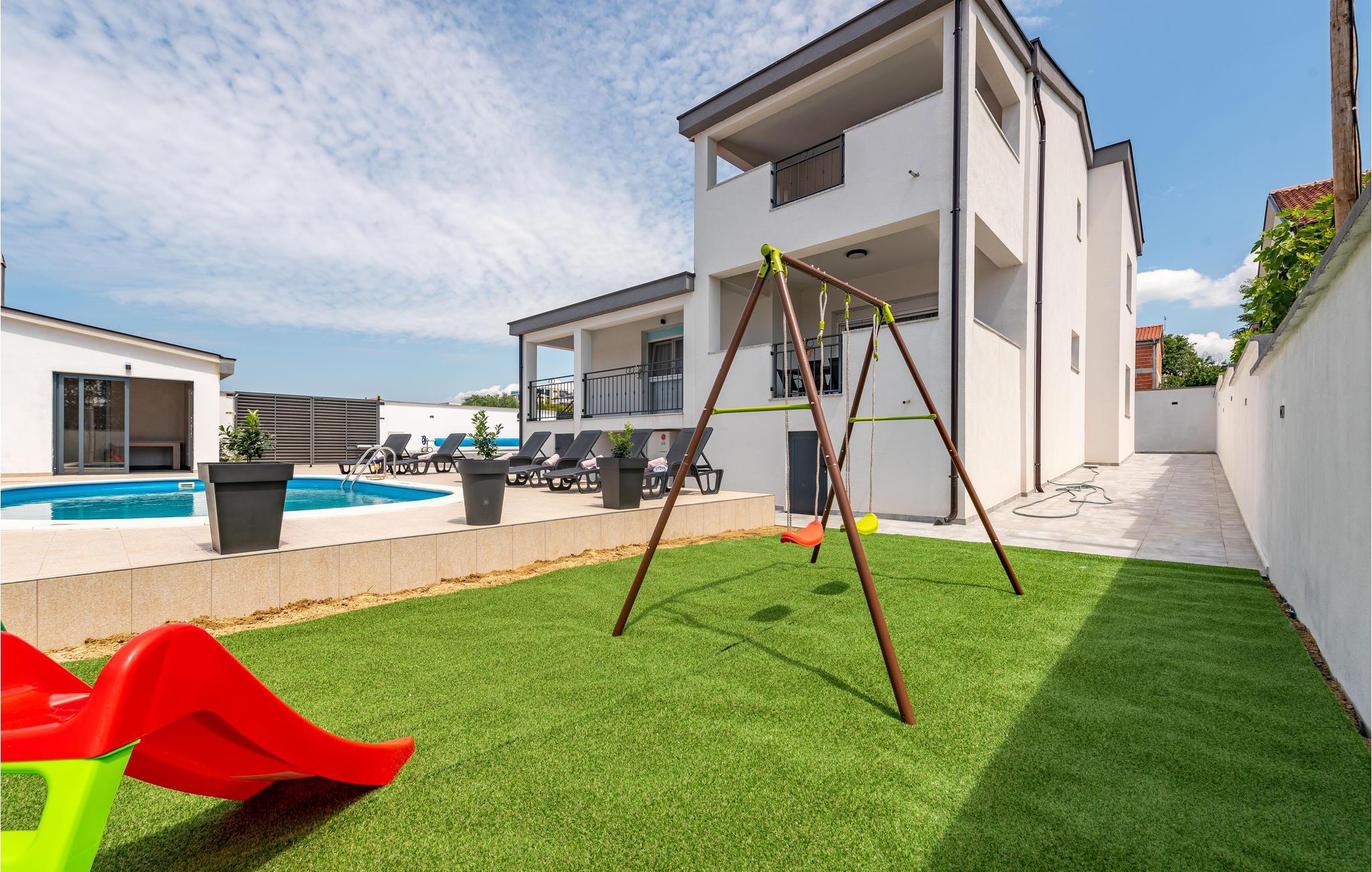 Dette feriehus ligger i et boligområde i den historiske by Zadar. Interiøret af høj kvalitet strækker sig over flere etager og gør et smagfuldt indtryk. For større eller flere familier, der drømmer om en afslappende ferie med komfort og underholdning, er dette sommerhus bare perfekt.