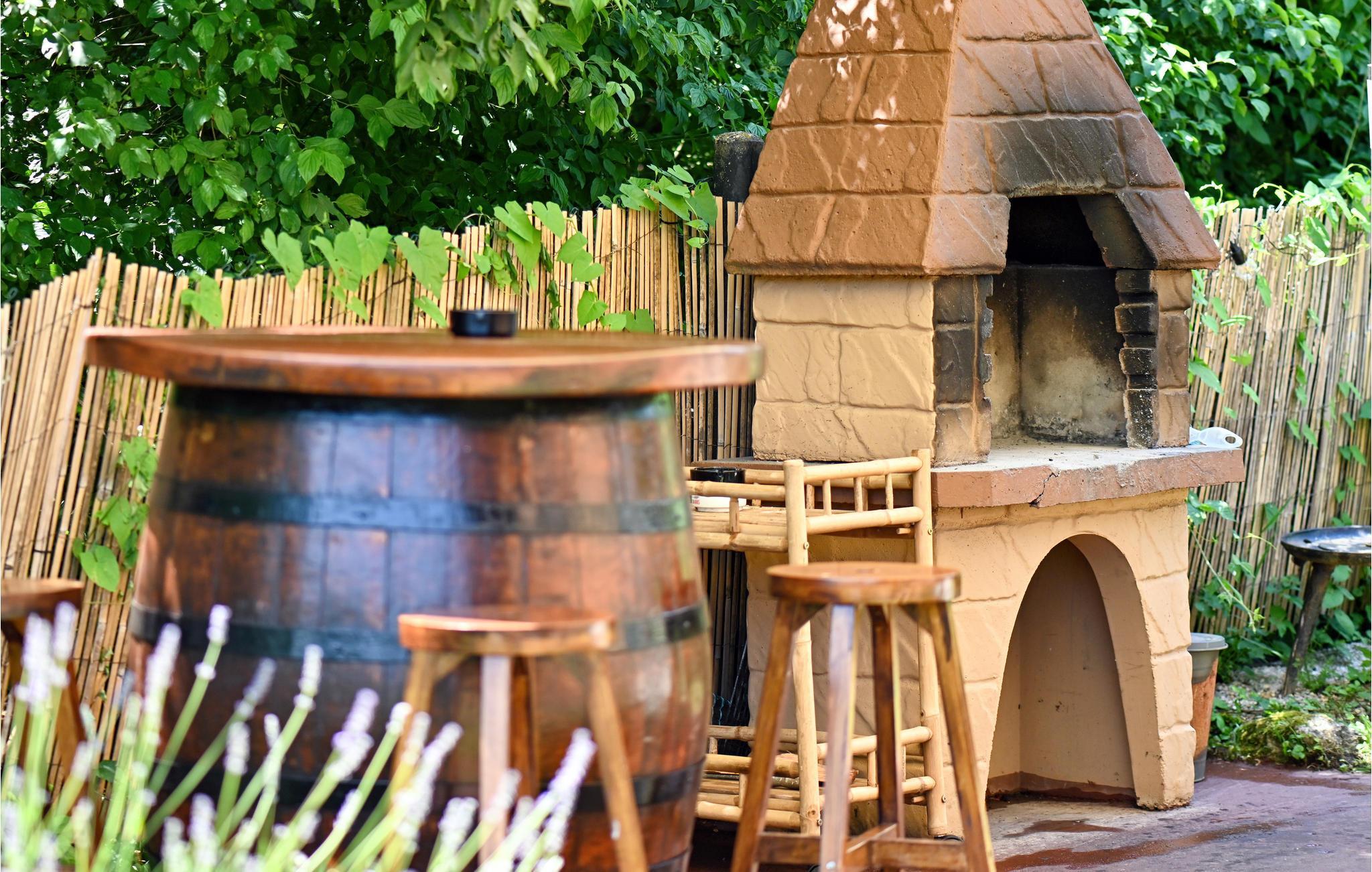 Nyd naturens stilhed til et godt glas vin under de milde sommeraftener. På regnfulde dage kan I sidde på den overdækkede terrasse og lytte til regnen, der trommer på taget, eller varme jer foran pejsen i stuen.