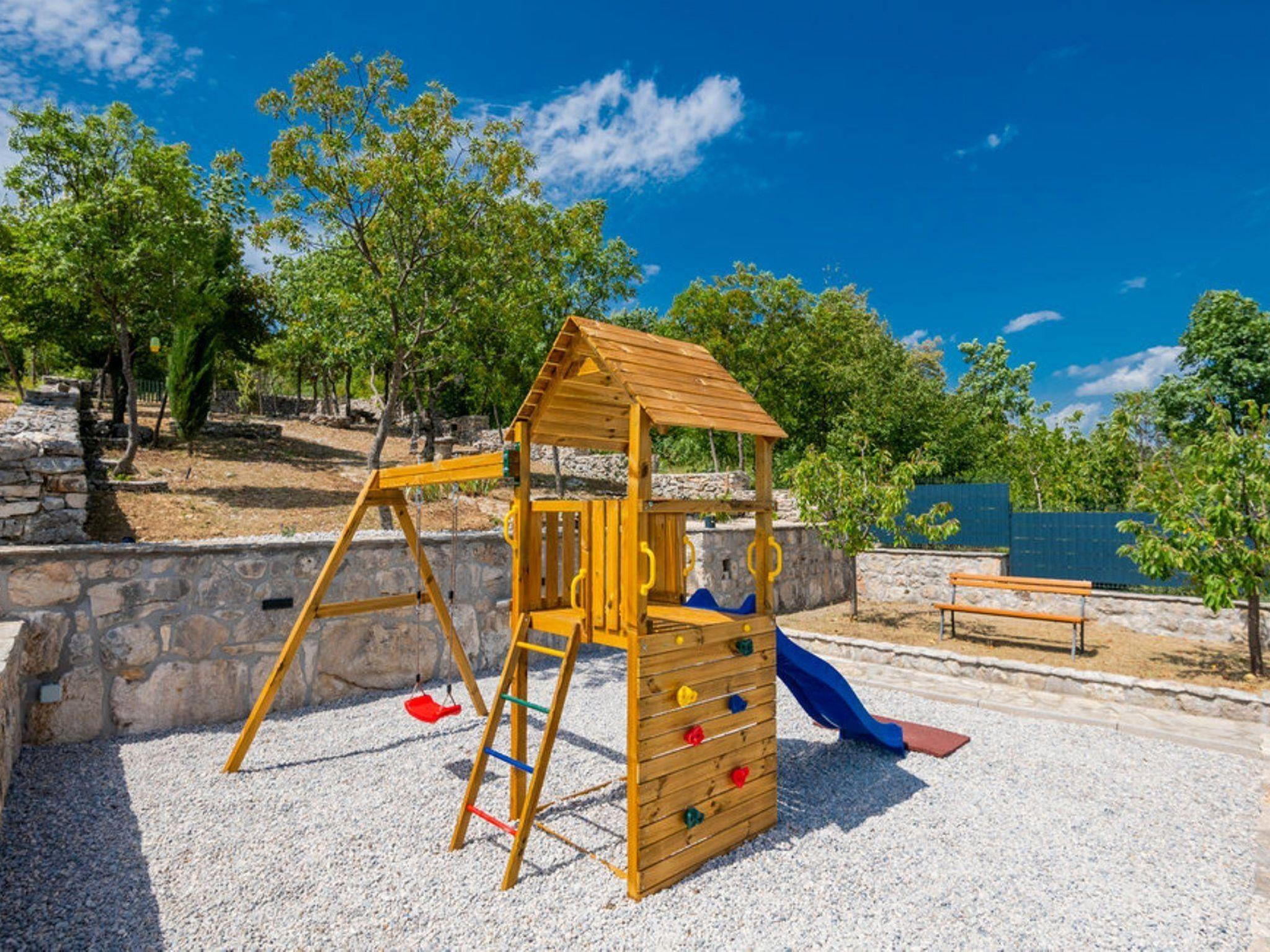 At the back of the house there is a 24 m² swimming pool, a children's playground and a large garden with Dalmatian plants.