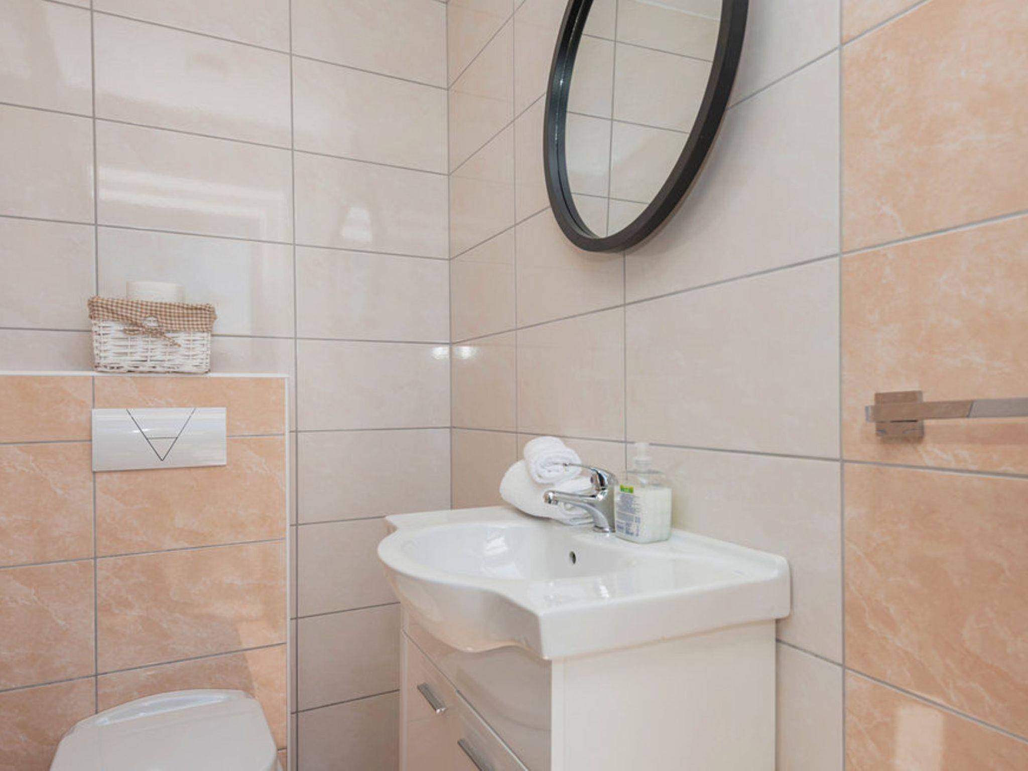 On the ground floor there is a kitchen with dining area and a living room as well as a bathroom. Upstairs there are two rooms, one with two beds and the other with a double bed and a bed for one person.