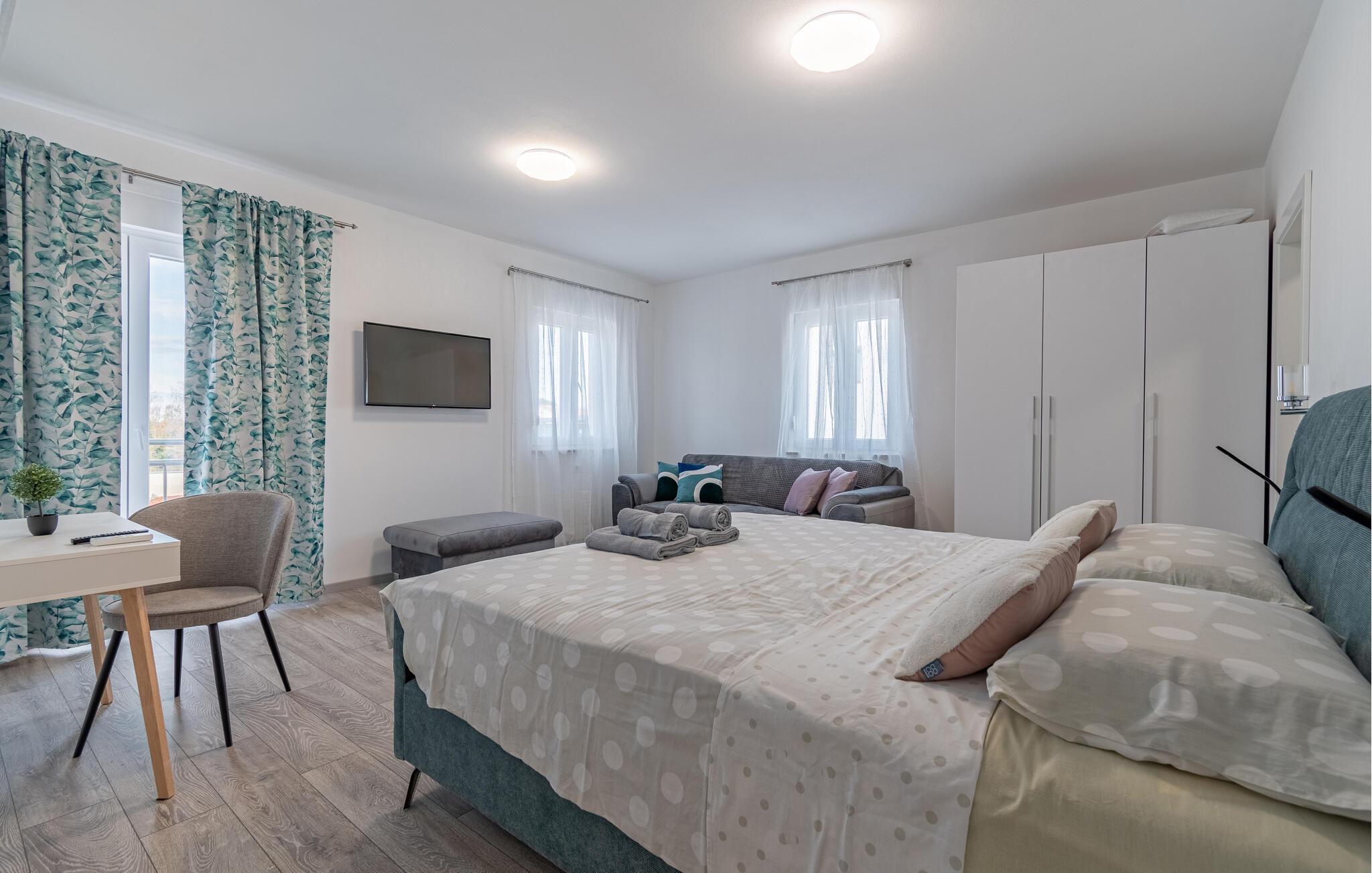 Besøg Vidulini Park med dens særlige solurscirkel og et mikroarboret med lokale urter. Udforsk den nærliggende ruinby Dvigrad, en middelalderlig bosættelse, der tilbyder fascinerende indblik i historien. For familier anbefaler vi en tur til Feštinsko Kraljevstvo drypstenshule, som imponerer med sine underjordiske søer og stalaktitter.
