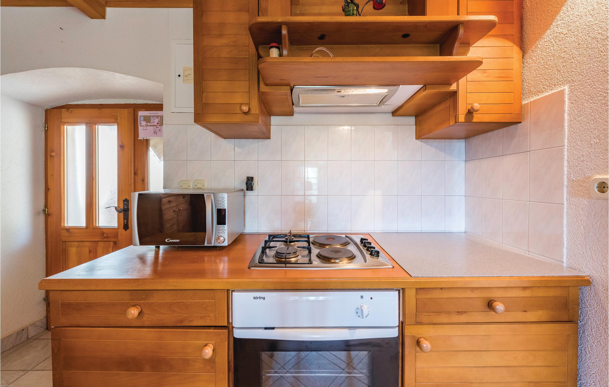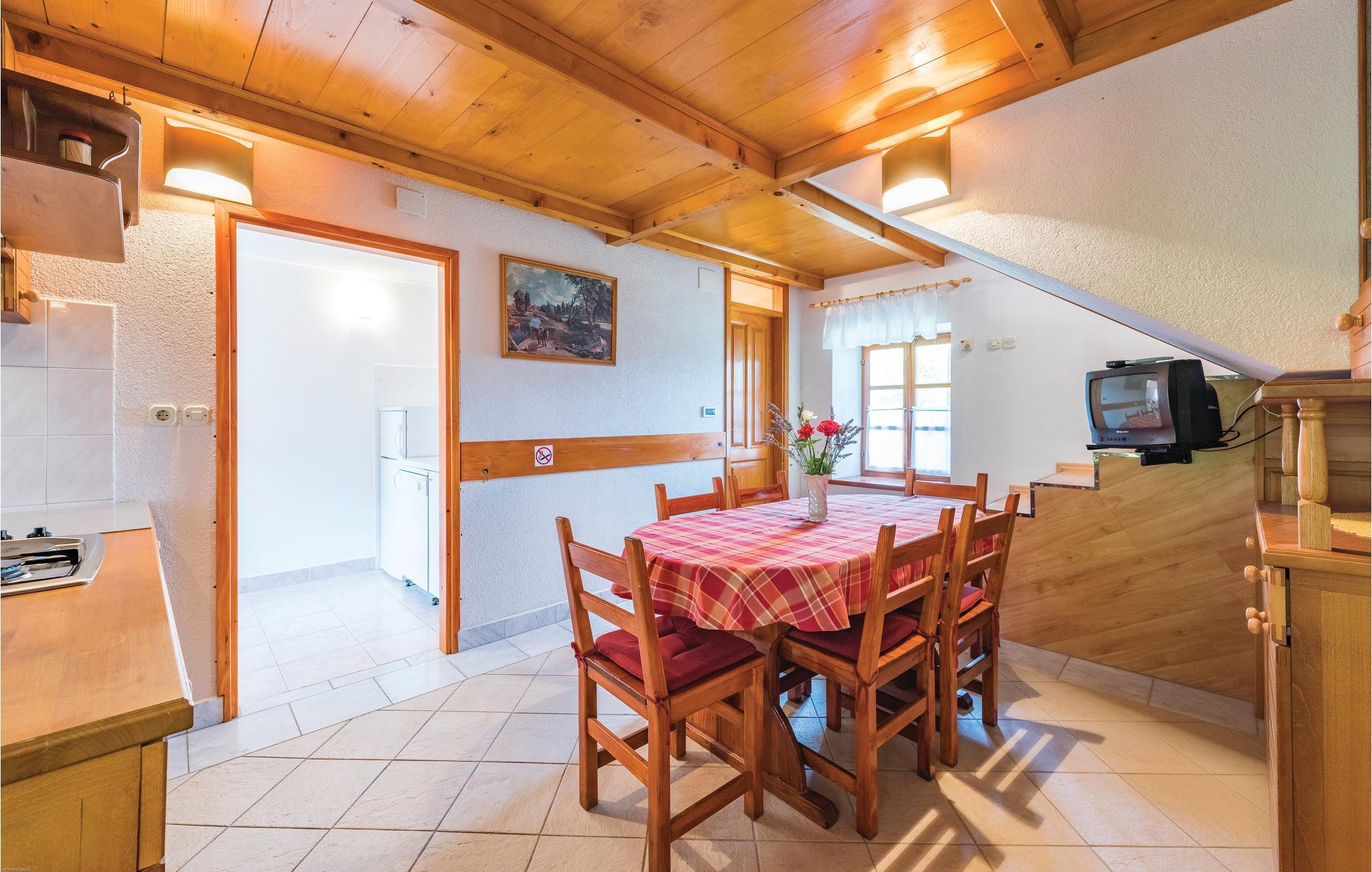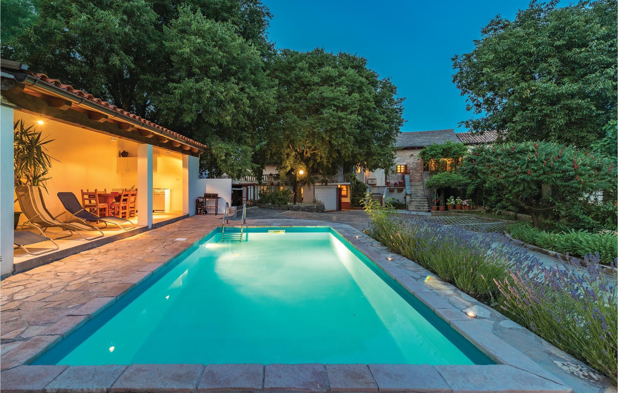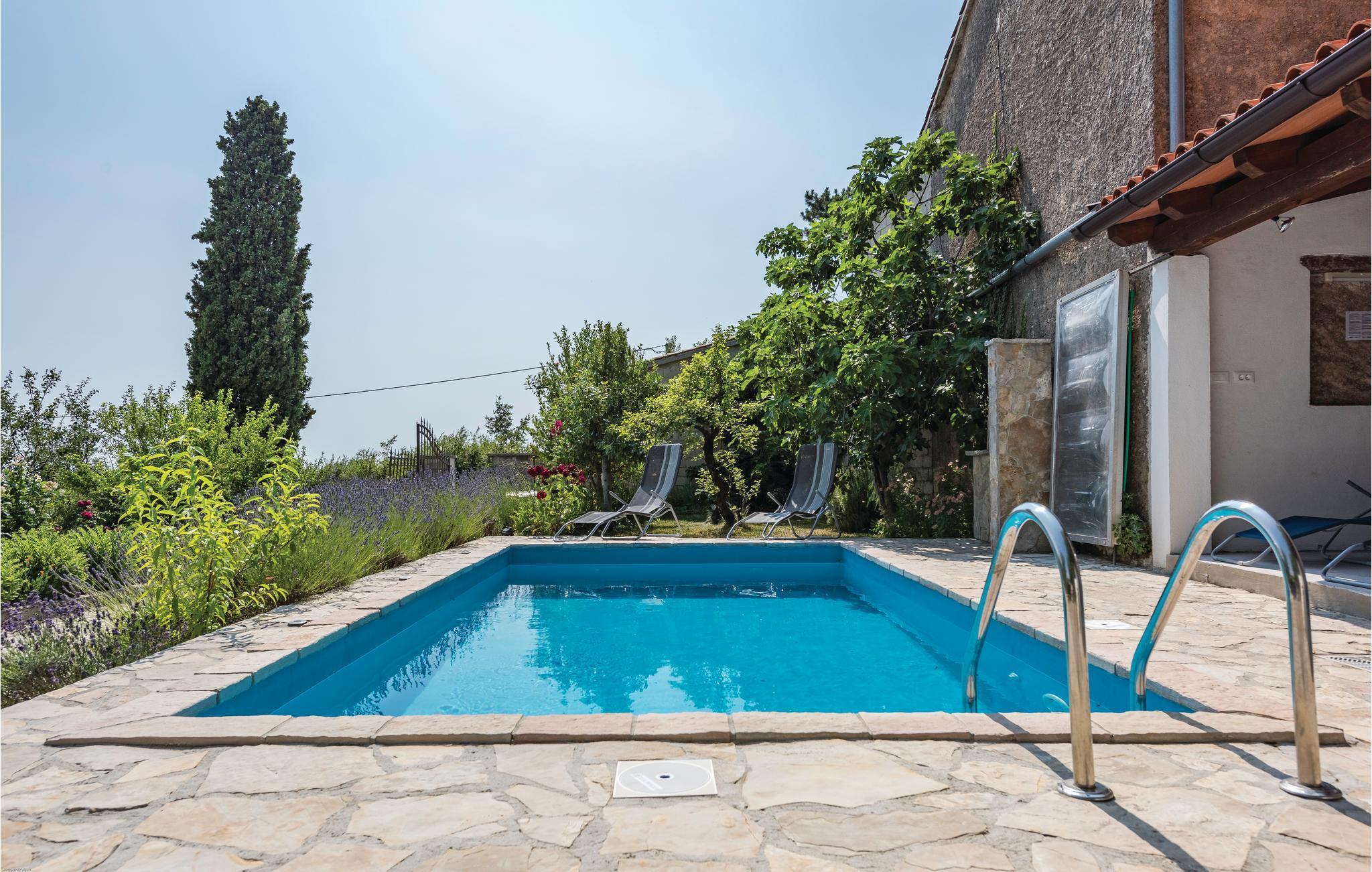 Det er det samme med dette dobbelthus ikke langt fra Zminj. Feriehuset ligger i centrum af landsbyen og har et typisk tag lavet af stenplader. Den lille udendørs pool og sommerkøkkenet giver dig en afslappet atmosfære og behagelig afkøling på varme sommerdage, hvor de badeglade kan få den ene time efter den anden til at gå med leg og plasken rundt i vandet.