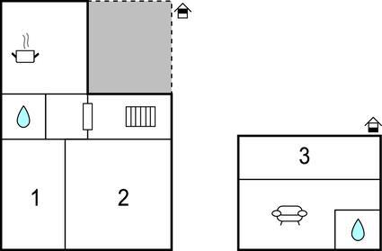 Badeværelse 4m2 (nr. 1) - WC. Varmt og koldt vand. Bruser