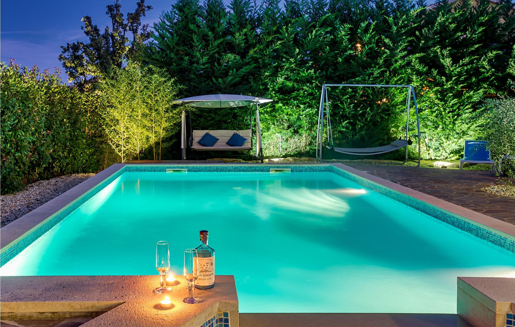 Poolen vil især glæde elskere af solskin og badesjov. Og selvom man foretrækker at være tør, er der mange muligheder i sommerhusets udendørs områder: Slap af på komfortable liggestole eller tilbered lækre retter på grillen og spis dem på den overdækkede veranda med rustikke loftbjælker.