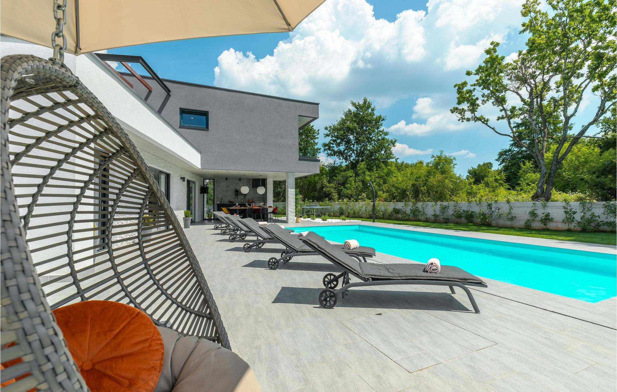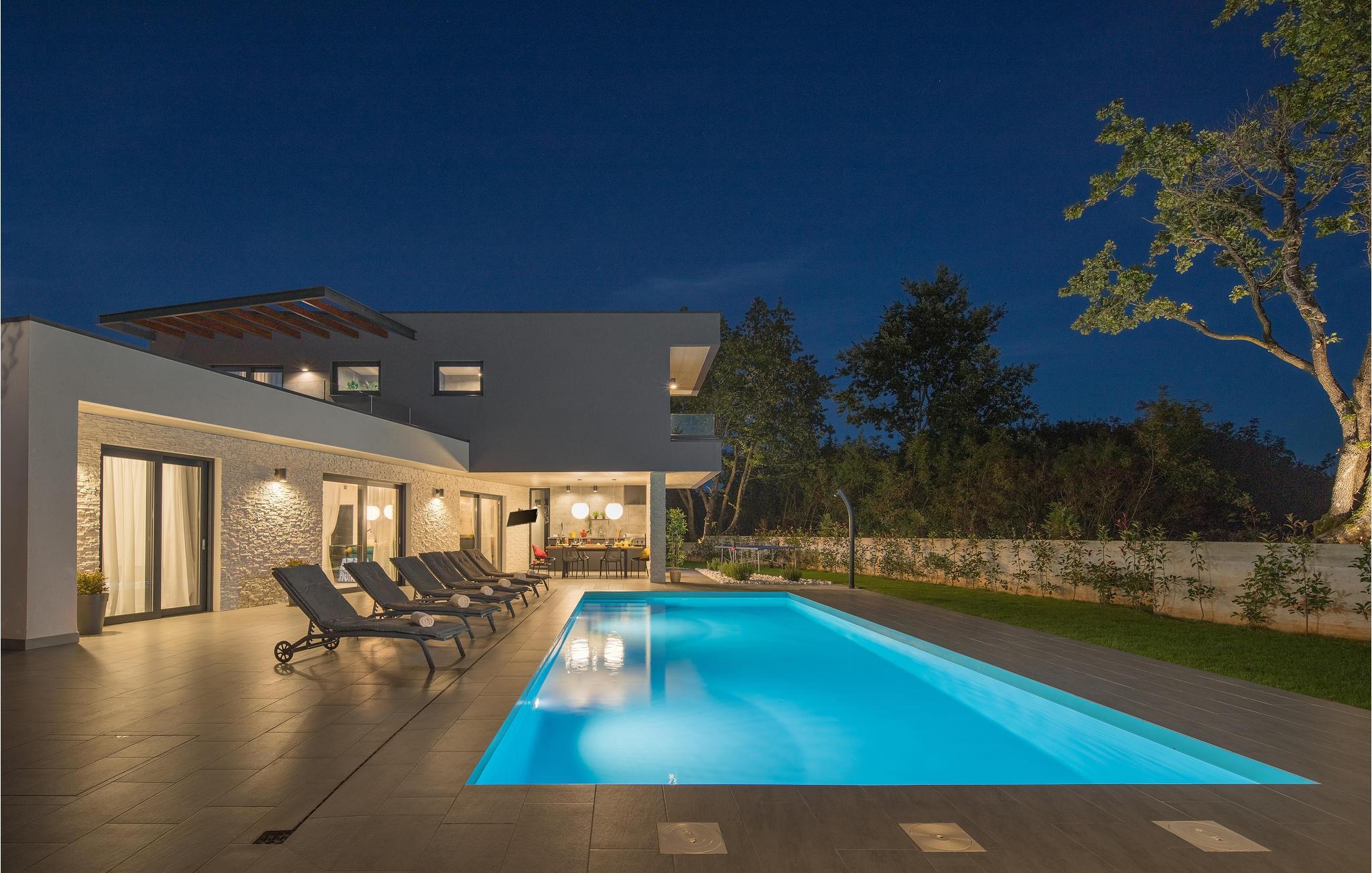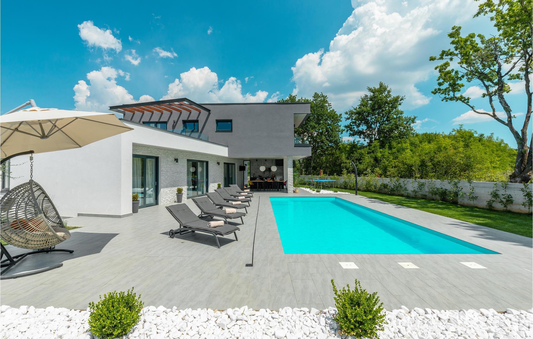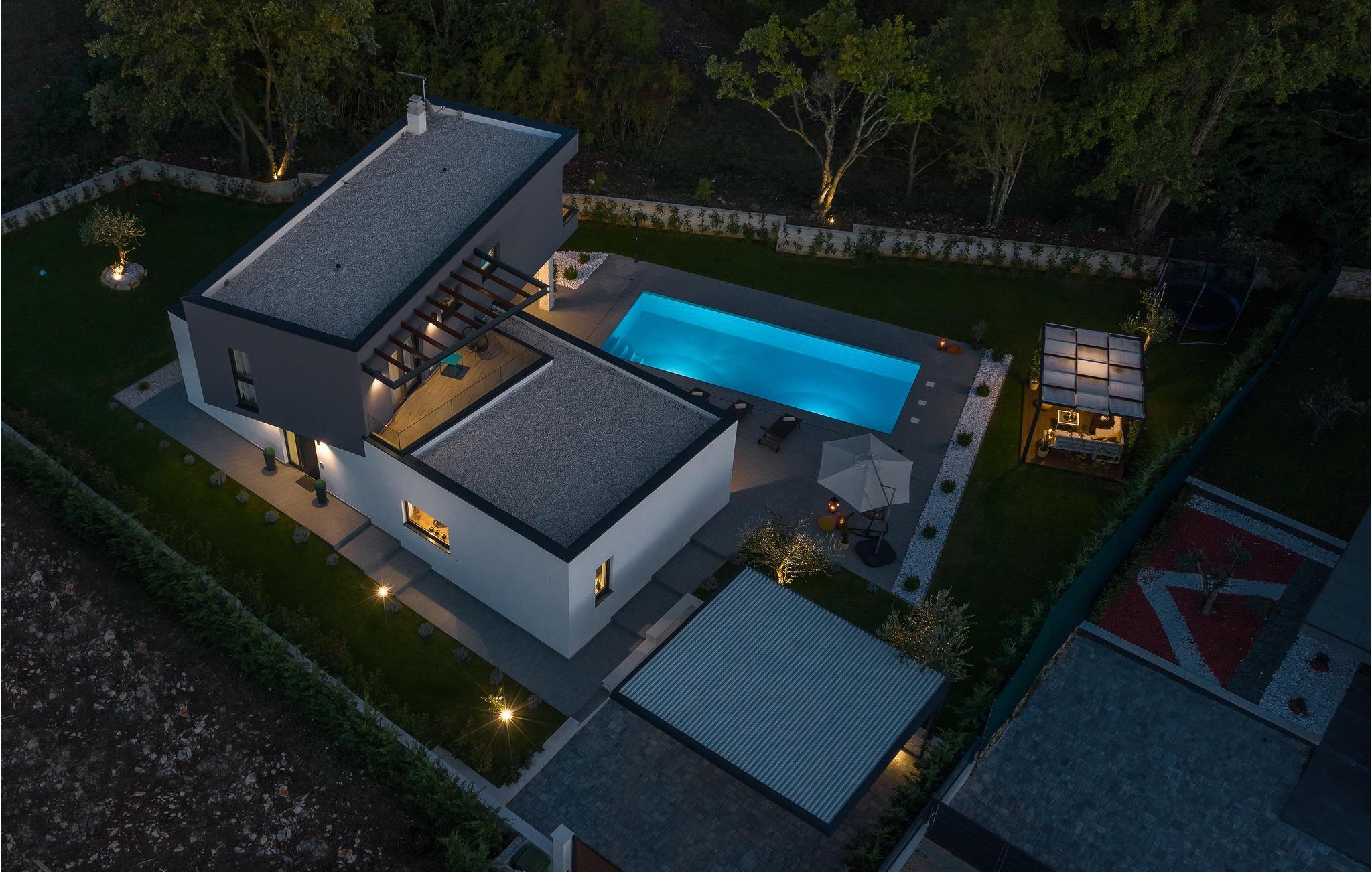 Huset vil fortrylle jer med sin kvalitet og funktionalitet og med sit særlige ekstra som sætter prikken over i'et. Beliggenheden er i det centrale Istrien, huset ligger på en ca. 1.000 m² stor indhegnet grund med masser af ro og privatsfære. Huset fordeler sig over stueplan og første sal. Den store stue er i åbent plan med køkken og spiseafdeling, hvilet afspejler den moderne indretning. Til hvert soveværelse hører eget badeværelse, samt klimaanlæg og tv.