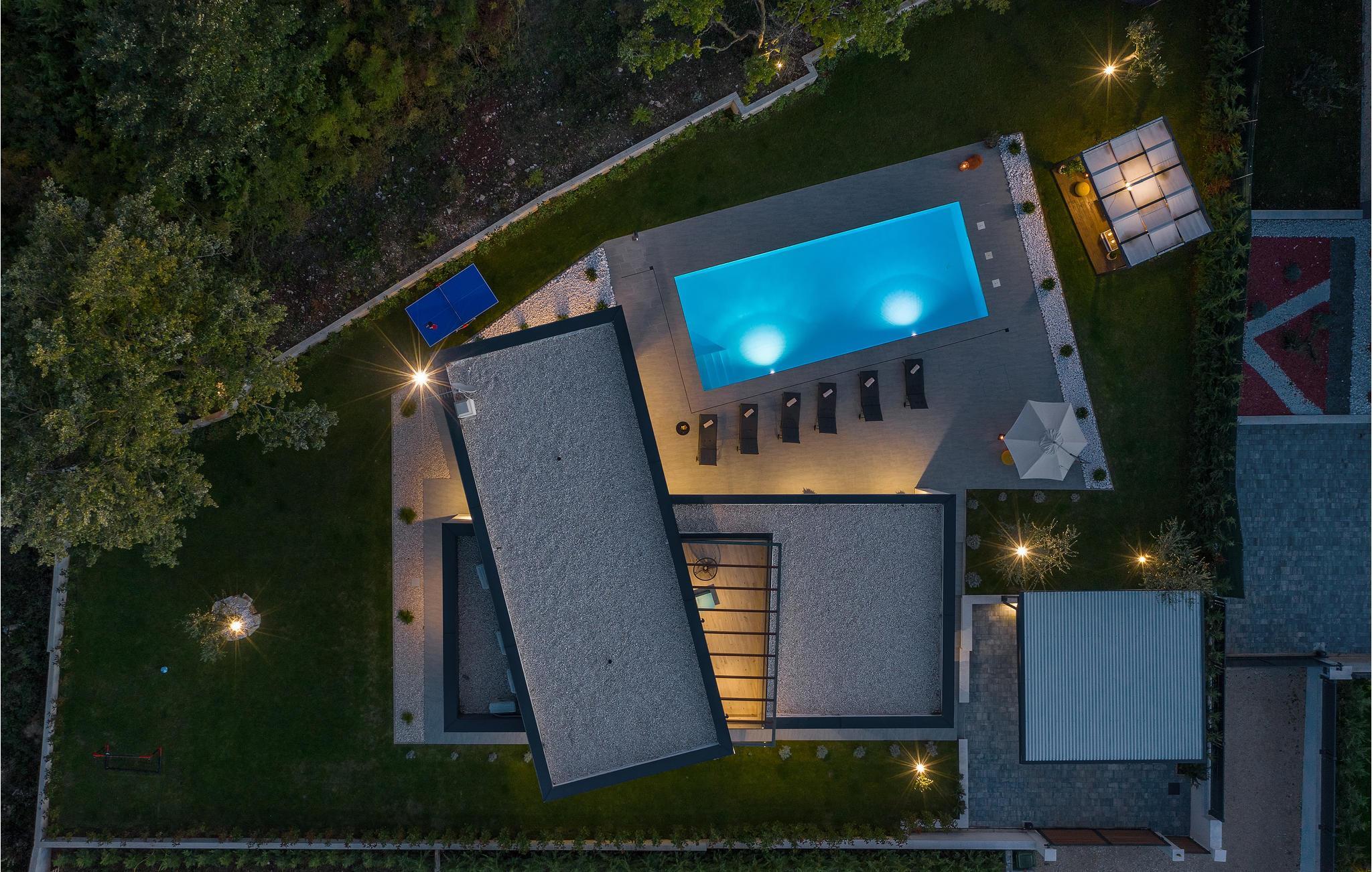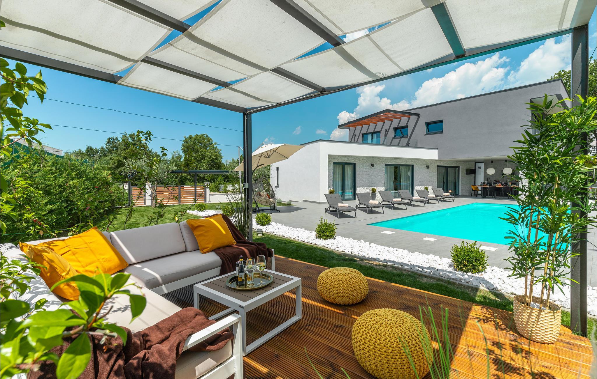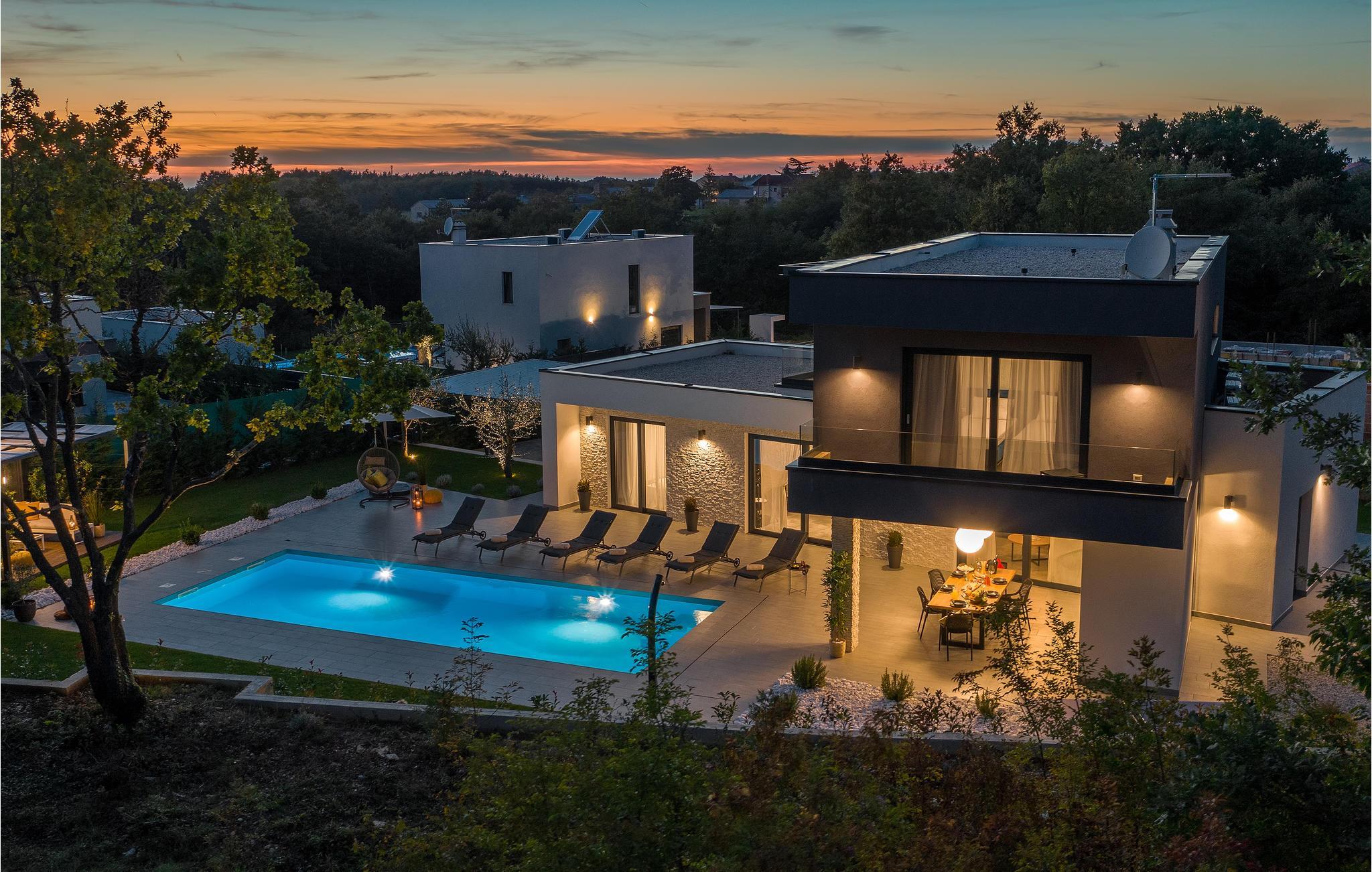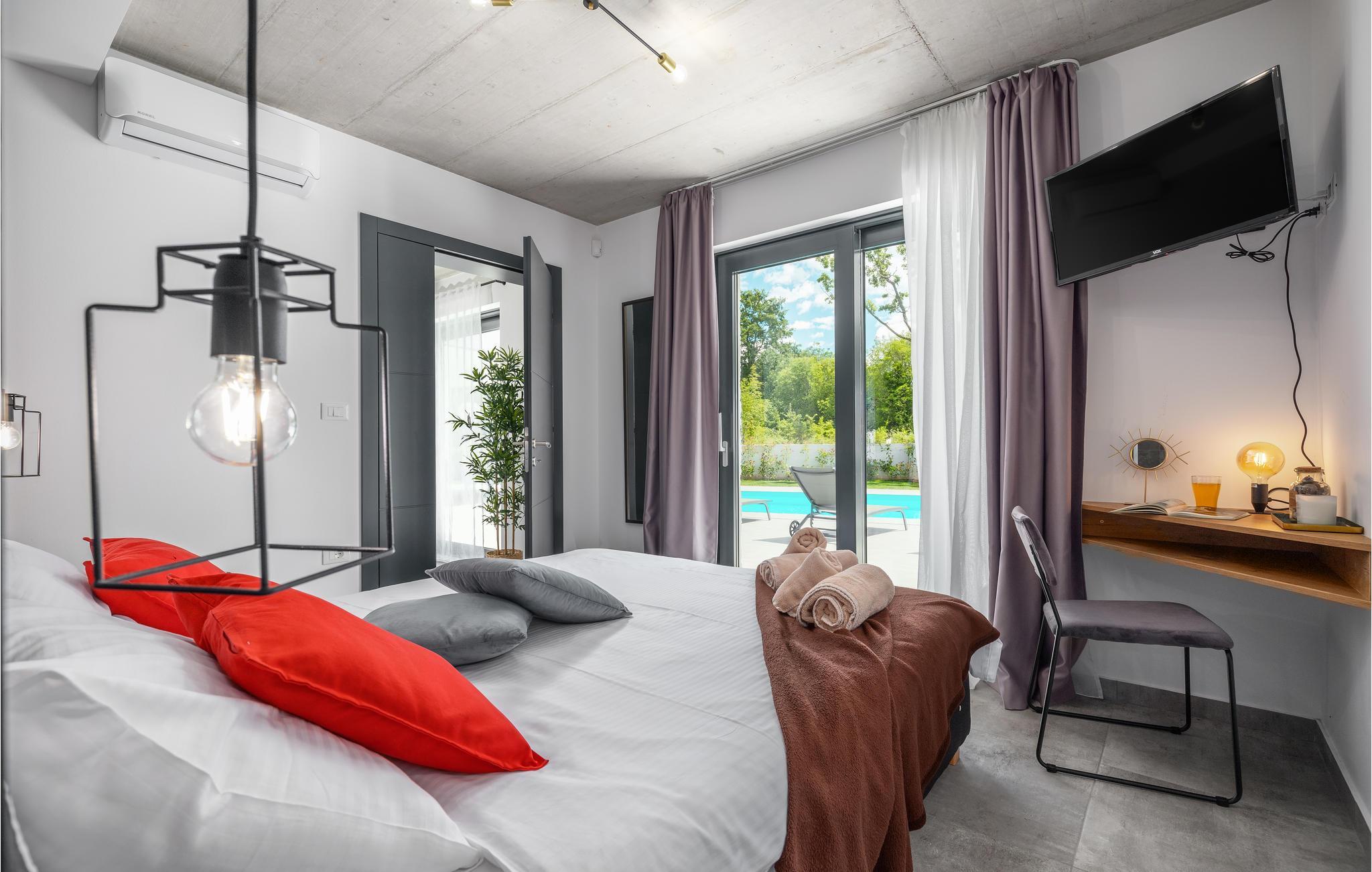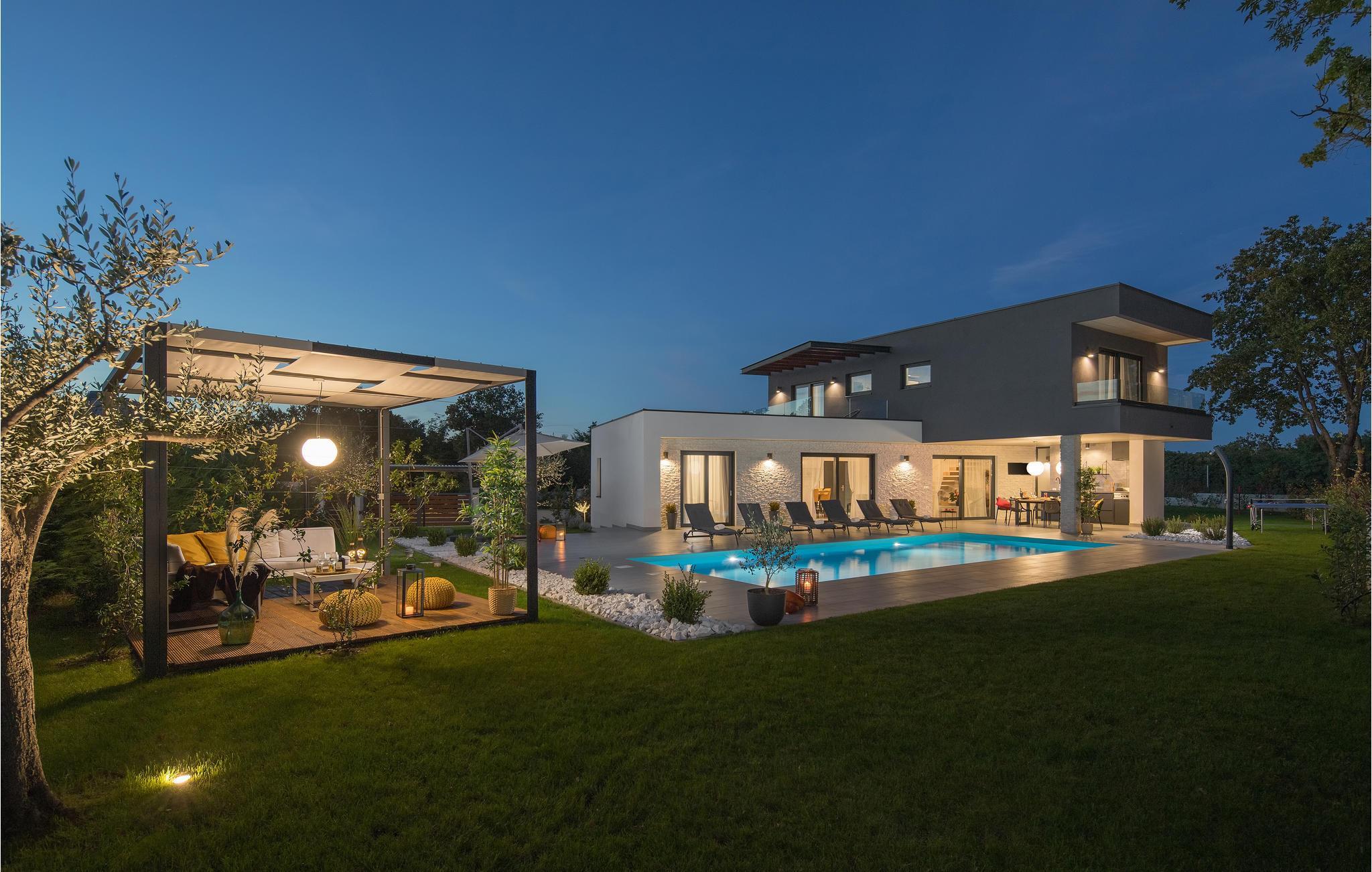 Huset vil fortrylle jer med sin kvalitet og funktionalitet og med sit særlige ekstra som sætter prikken over i'et. Beliggenheden er i det centrale Istrien, huset ligger på en ca. 1.000 m² stor indhegnet grund med masser af ro og privatsfære. Huset fordeler sig over stueplan og første sal. Den store stue er i åbent plan med køkken og spiseafdeling, hvilet afspejler den moderne indretning. Til hvert soveværelse hører eget badeværelse, samt klimaanlæg og tv.