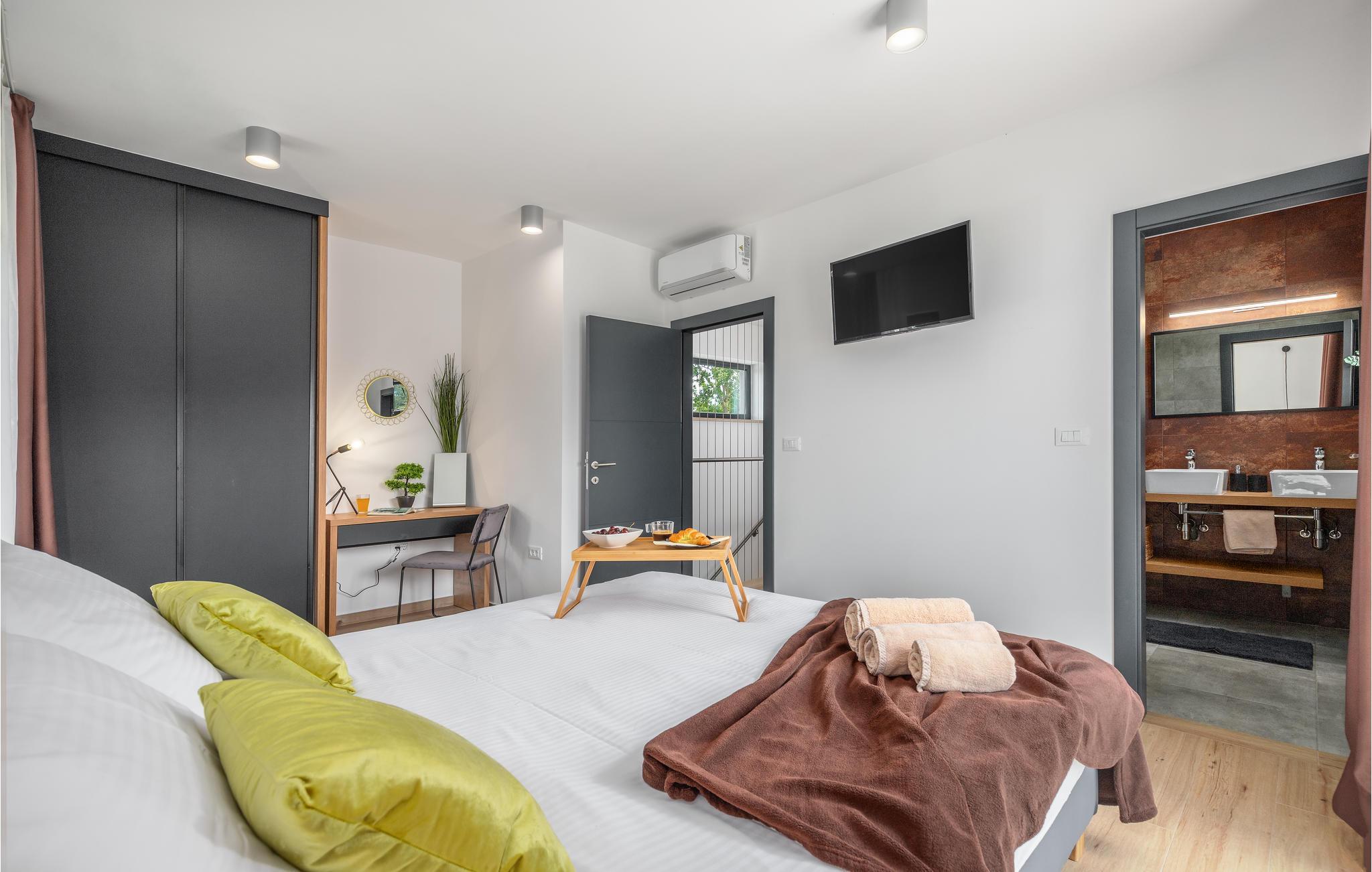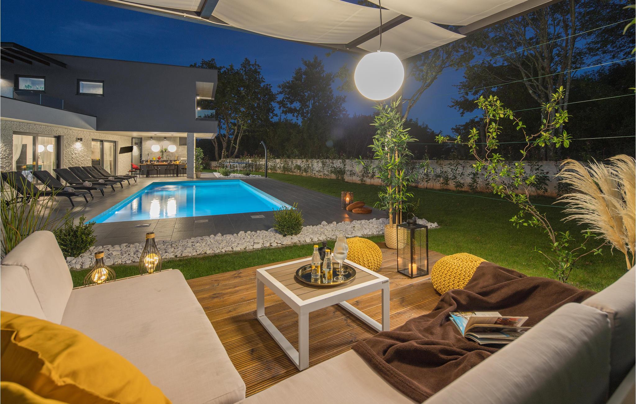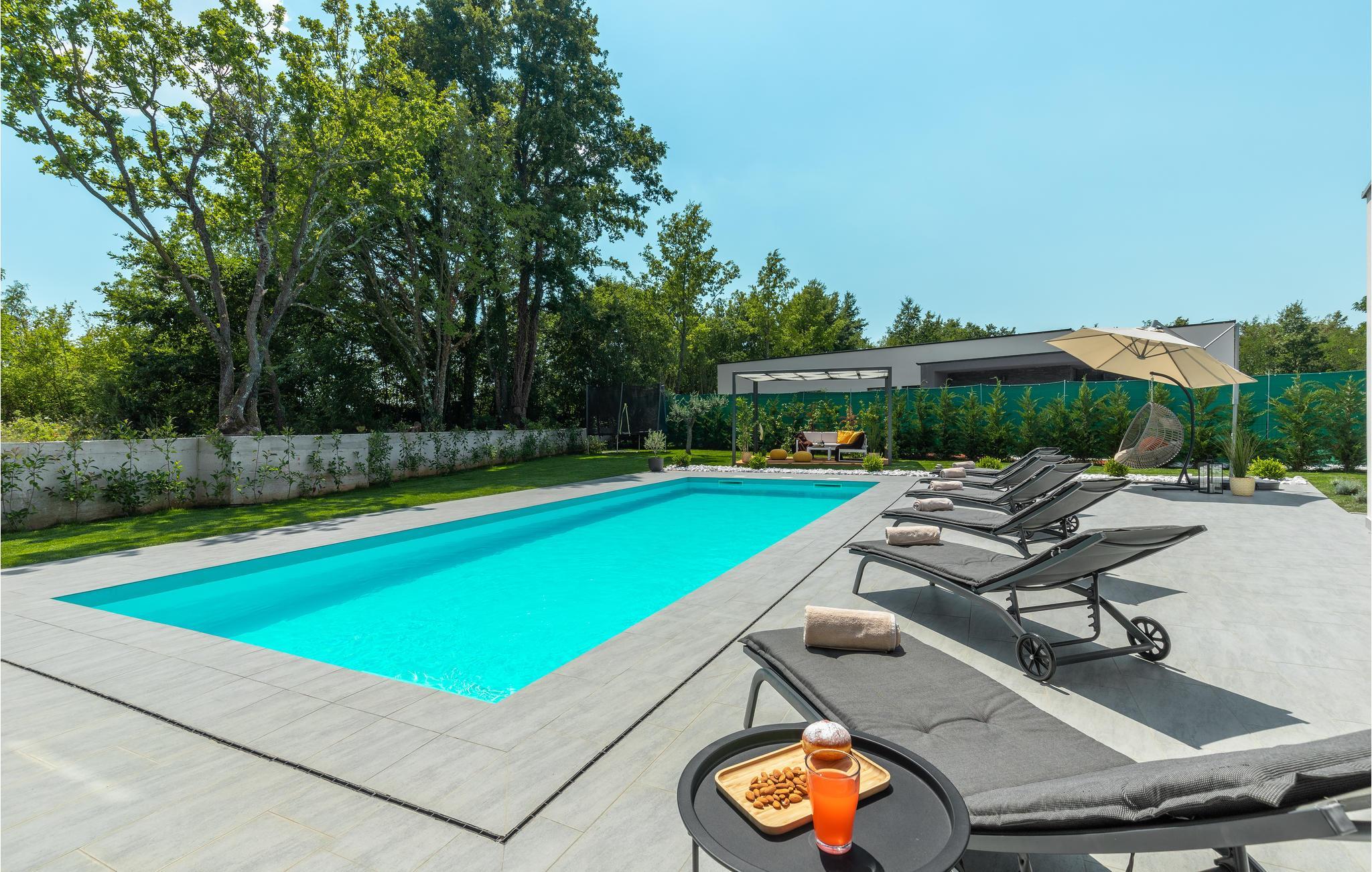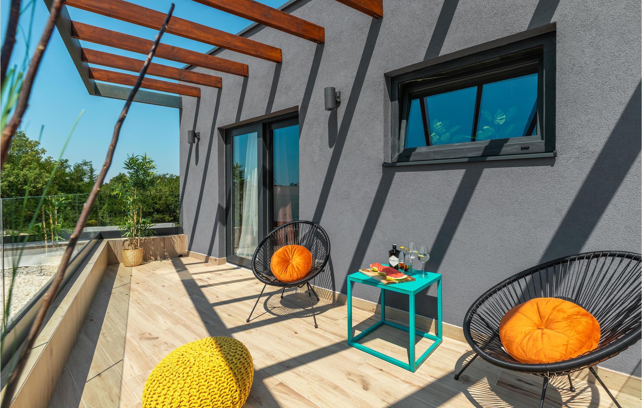 Huset vil fortrylle jer med sin kvalitet og funktionalitet og med sit særlige ekstra som sætter prikken over i'et. Beliggenheden er i det centrale Istrien, huset ligger på en ca. 1.000 m² stor indhegnet grund med masser af ro og privatsfære. Huset fordeler sig over stueplan og første sal. Den store stue er i åbent plan med køkken og spiseafdeling, hvilet afspejler den moderne indretning. Til hvert soveværelse hører eget badeværelse, samt klimaanlæg og tv.