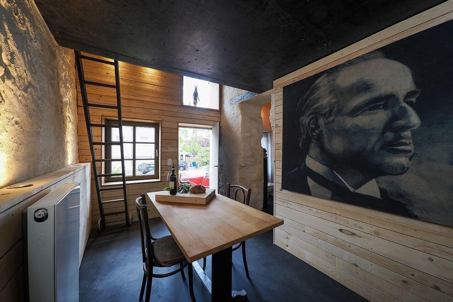 Der Raum 'Op der Gänn' bezieht sich auf die oberen Räume der regionalen Scheunen. Die eklektische Einrichtung entspricht nicht einem traditionellen Hotel: