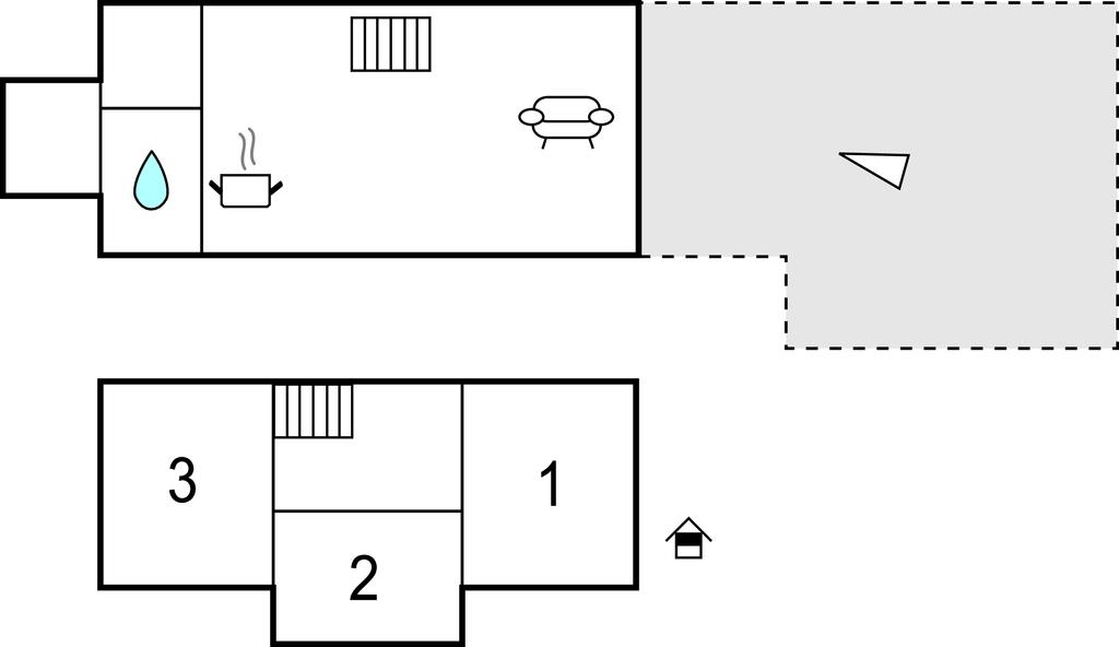 Soveværelse 8m2 (nr. 3) - 1 Soveplads. (Enkeltseng(e)). 2 Sovepladser. (Dobbeltseng(e)).