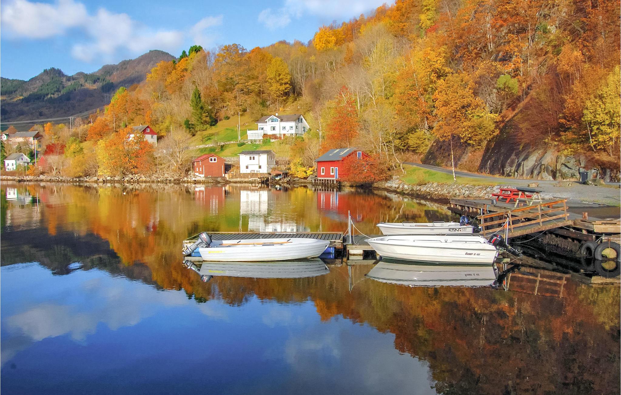 Selvstændig og uforstyrret del af et hus til to familier ved Åkrafjorden. Egen bro og gode fiskemuligheder i den fiskerige fjord. Huset ligger i et skønt naturområde med gode turmuligheder i nærheden. Kort afstand til Folgefonna Nasjonalpark i Sundal, hvor Norges tredjestørste gletsjer ender. Oplev Åkrafjorden med bådture til Langfossen. Området byder også på aktiviteter som bordtennis, udendørs skak, legeplads og mulighed for ridetimer. Vi kan anbefaler at tage på dagsture ved Hardangerfjorden på de nationale turistveje ved Folgefonna- og Hardangervidda-nationalparkerne. En barneseng kan lånes hos ejeren. N18318 ligger i samme hus.