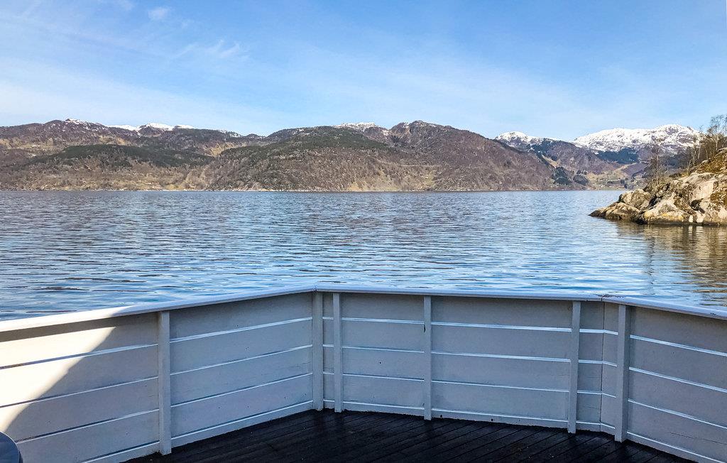 Huset ligger i fredelige ugenerte omgivelser midt i Åkrafjorden, med en betagende udsigt både inde fra huset og fra terrassen. En bedre måde at nyde Norge på, skal man lede længe efter.