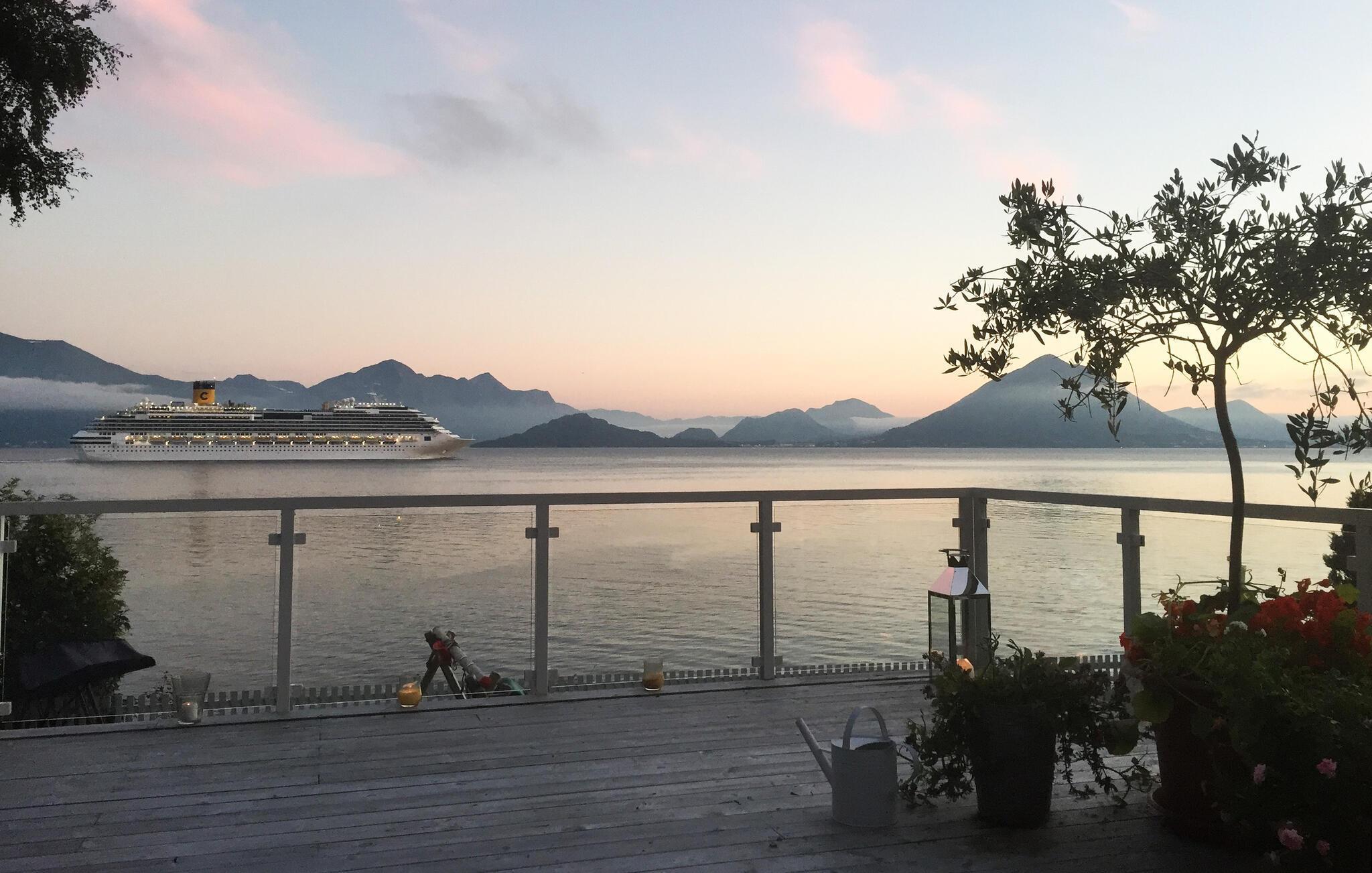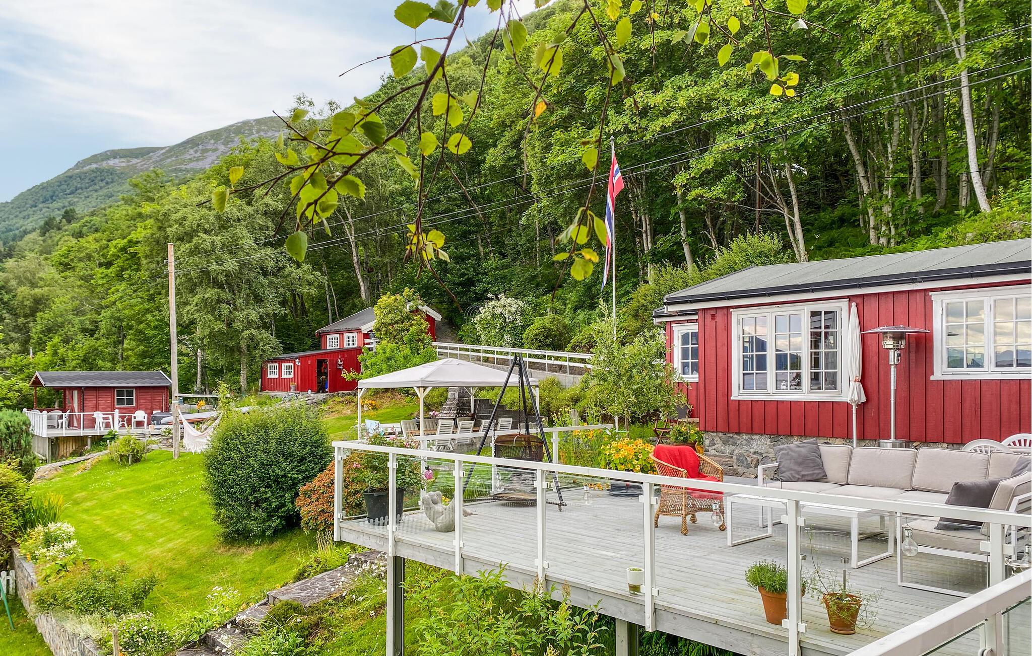 Med en fantastisk beliggenhed ved fjorden ligger dette store og charmerende feriehus med skøn panoramaterrasse, jacuzzi og have.