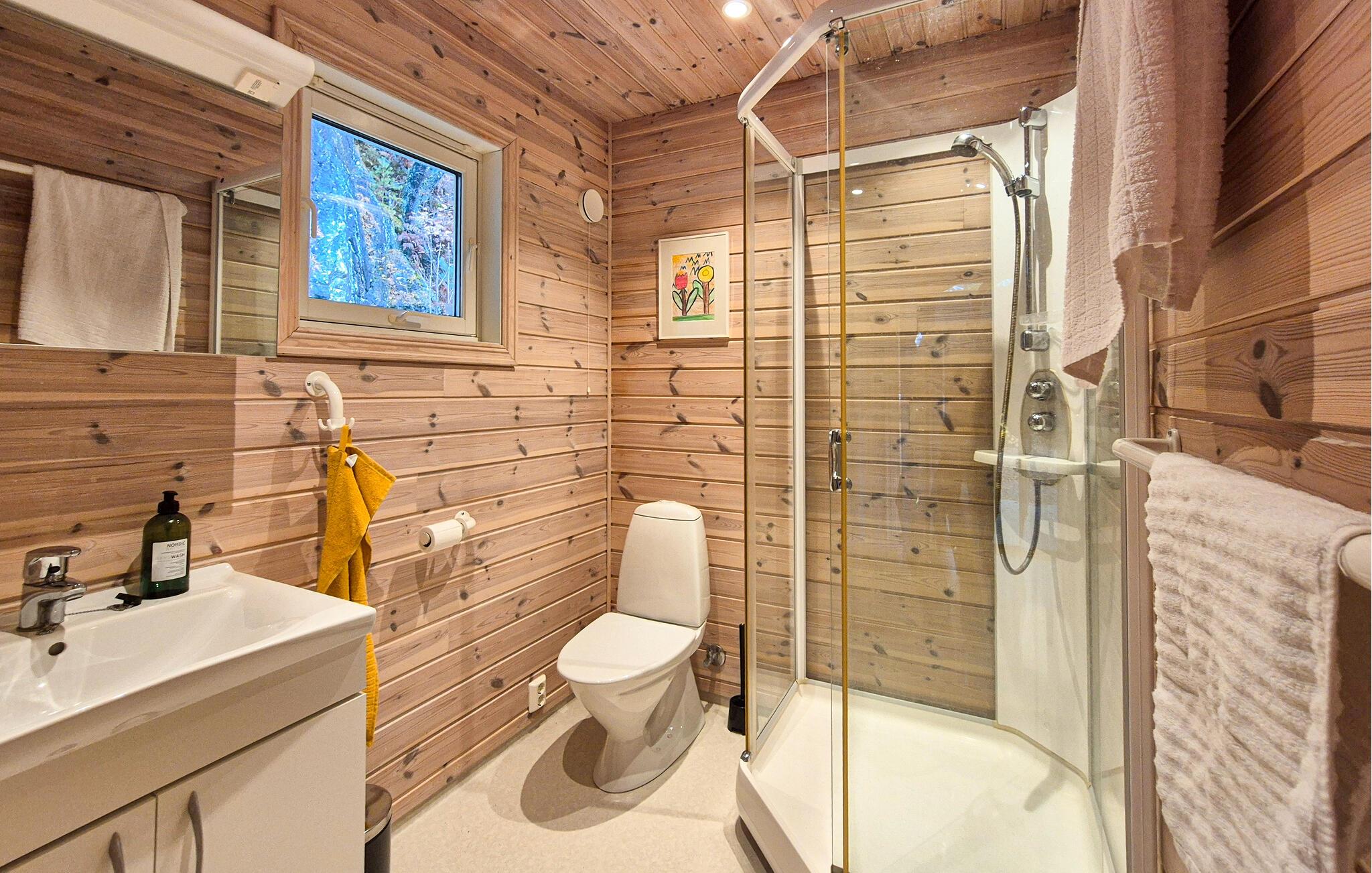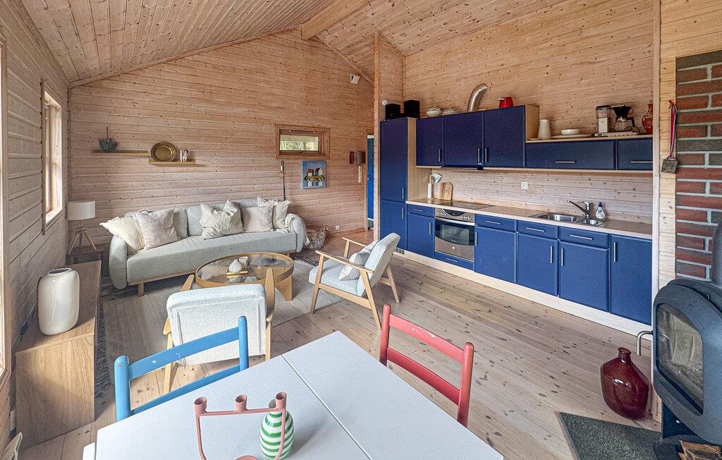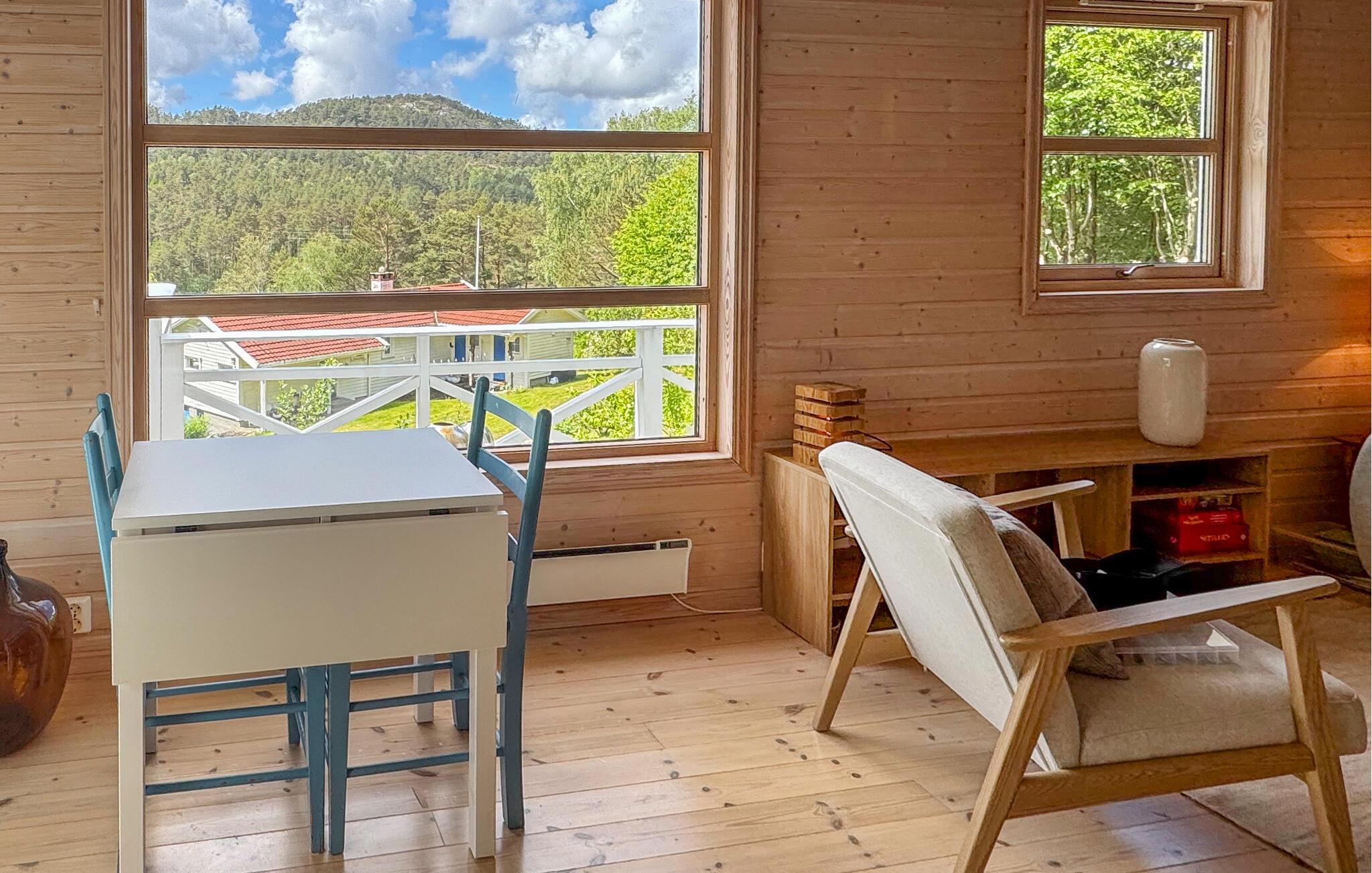 Læg hverdagen bag jer og tag en forfriskende pause i dette charmerende feriehus ved den idylliske Ålfjord. Oplev ro, frisk luft og den unikke udsigt over de omkringliggende skove og bakker. Træd indenfor og føl jer hjemme med det samme. Det lyse træinteriør, de store vinduer og de omhyggeligt udvalgte møbler skaber en varm, skandinavisk atmosfære. Slap af på sofaen i den komfortable stue og læs en bog ved brændeovnen. Tilbered måltider sammen i det rummelige køkken.