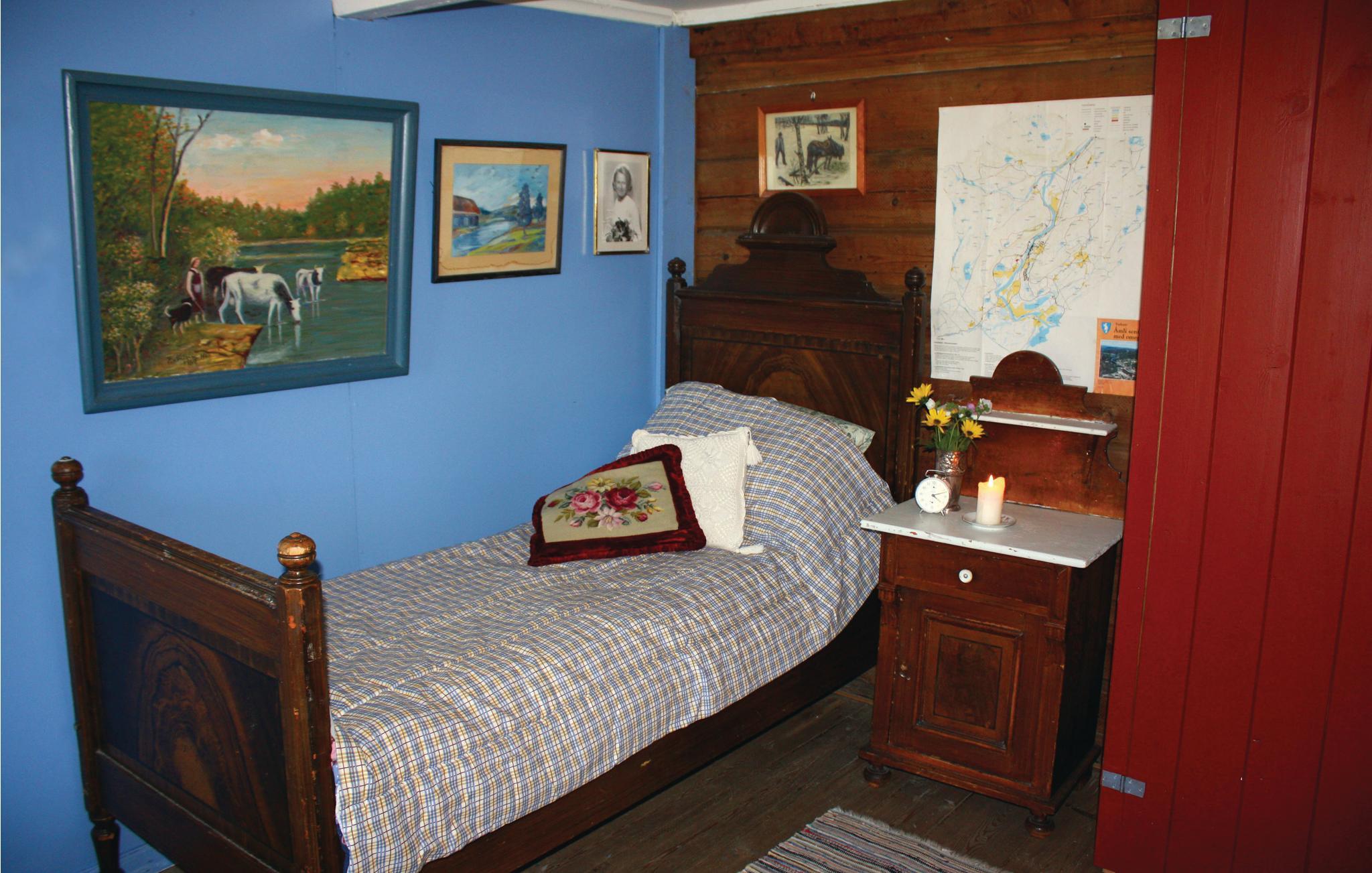 Dette feriehus ligger på en tidligere gård omgivet af en pragtfuld natur. Huset er flot møbleret, delvis i almuestil, delvis i herregårdsstil. Der er et rigt dyreliv i området, så der er gode chancer for at se både elg, bævere og rådyr. I elven blot 100 M derfra kan der fiskes. På fjellet er der afmærkede turstier. Dette er det perfekte sted for den, der ønsker fredelige og ugenerte omgivelser. Der er 13 Km til Åmli med bl.a. et skovbrugsmuseum. Ved N34688.