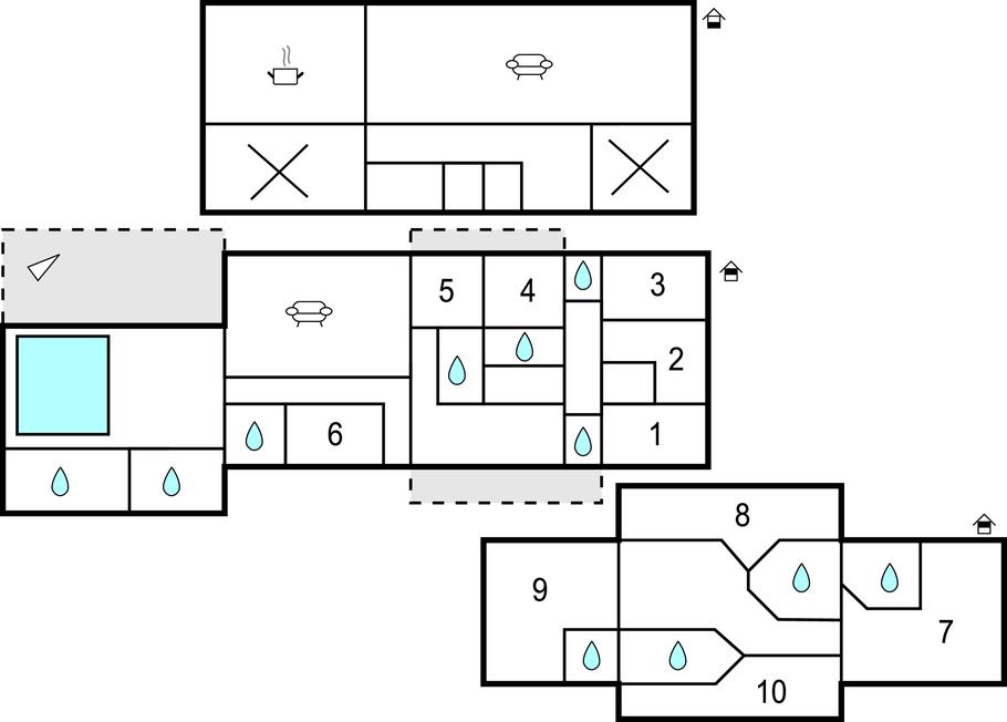 Soveværelse (nr. 8) - 1 Soveplads. (Enkeltseng(e)). 2 Sovepladser. (Dobbeltseng(e)).