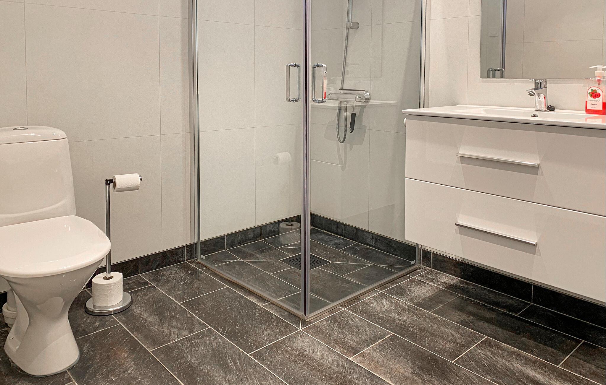Badeværelse (nr. 1) - WC. Varmt og koldt vand. Bruser