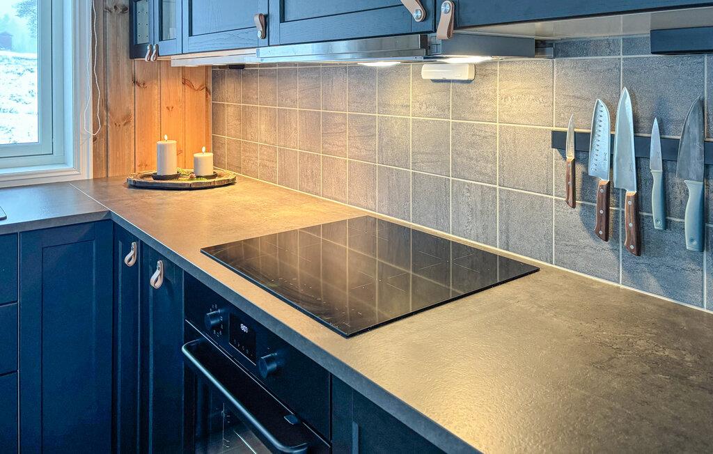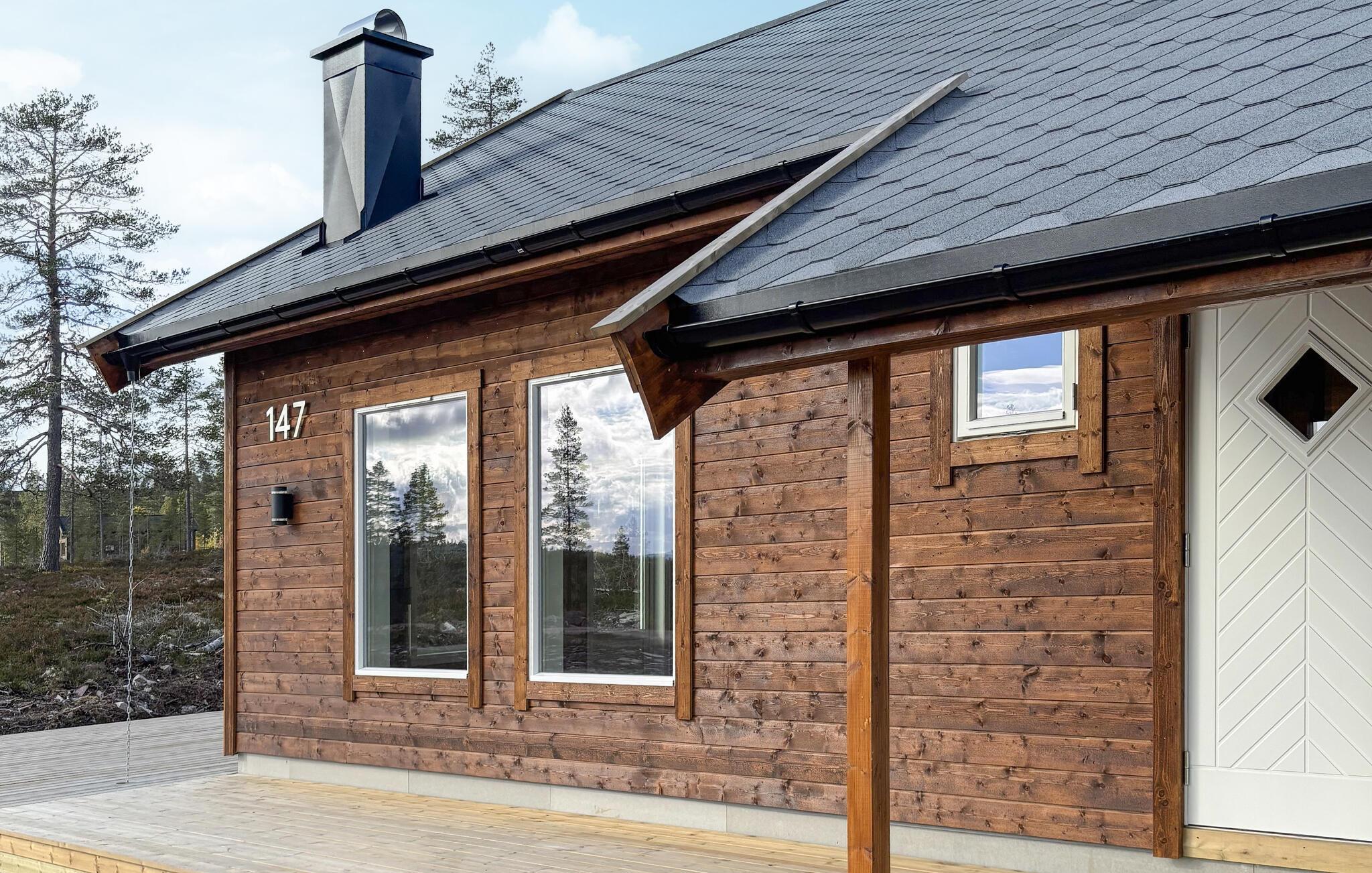 Dette charmerende hus tilbyder en helt exceptionel ferie. De store vinduer oversvømmer interiøret med varmt naturligt lys, mens I nyder den smukke udsigt over den omkringliggende natur. Slap af med en varm drik i den komfortable sofa og tænd op i brændeovnen for hyggelig varme på kølige aftener. Tilbered lækre måltider i det moderne køkken og dæk op til dem med et glas vin.