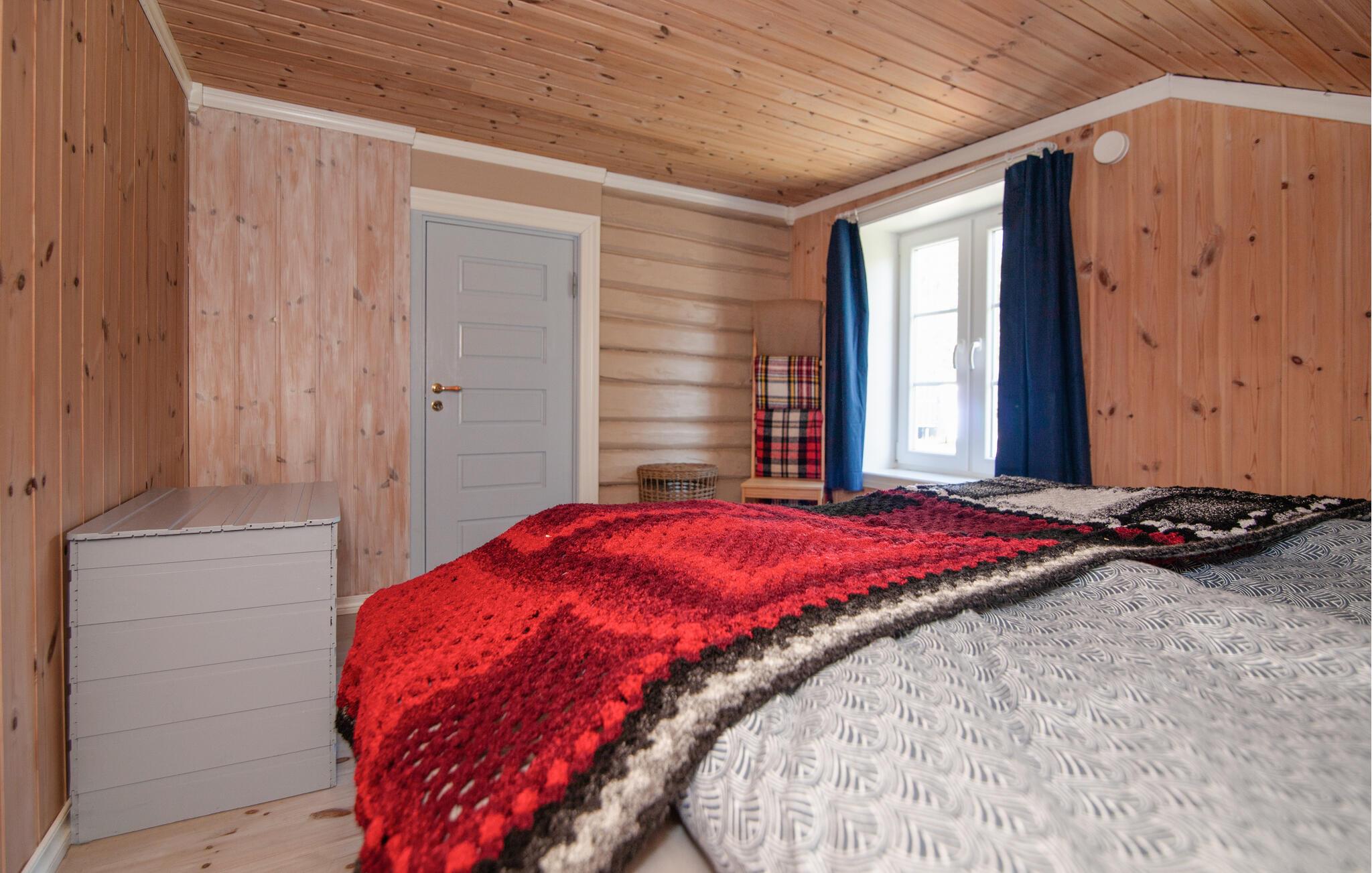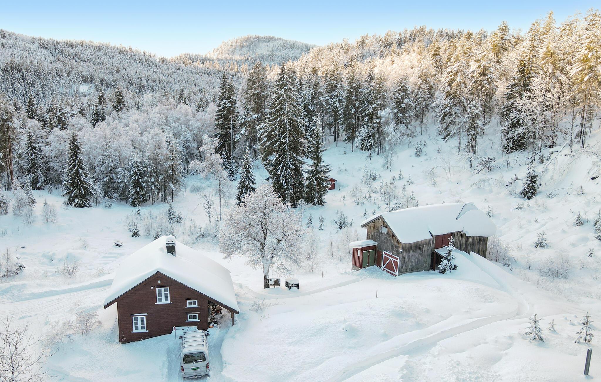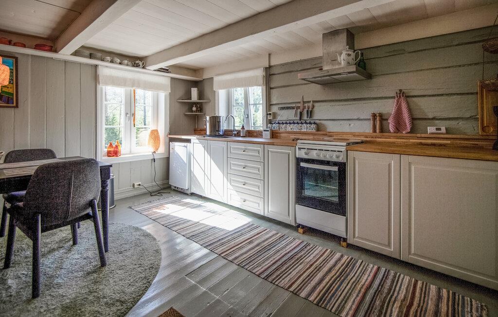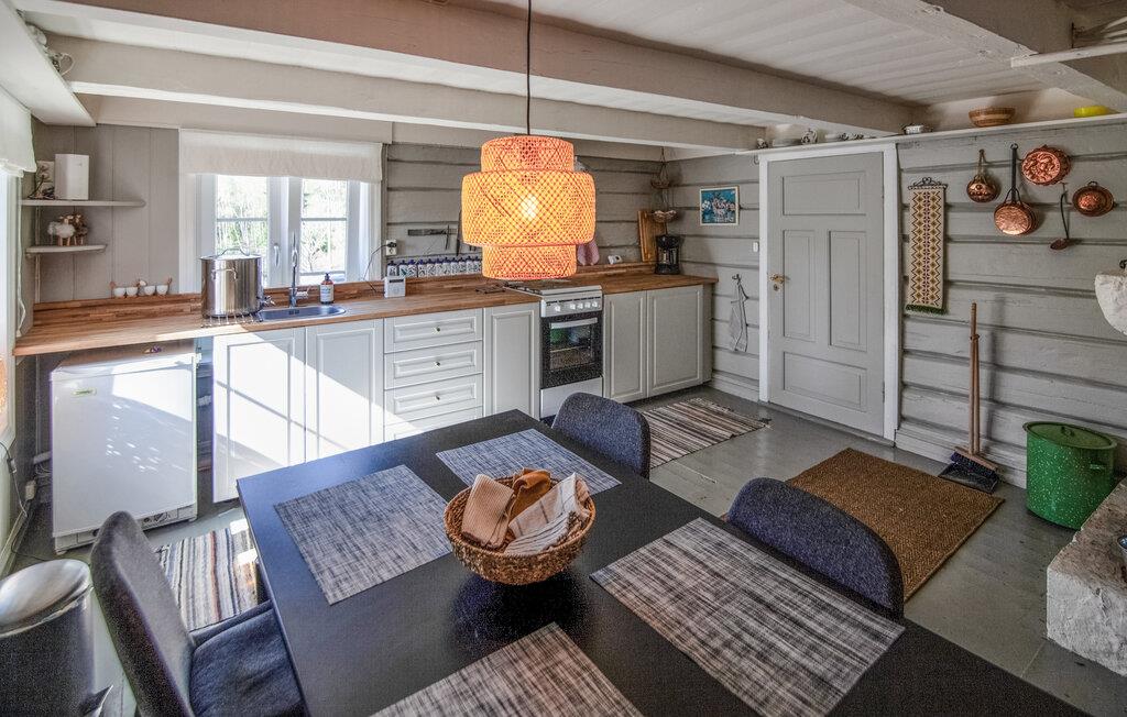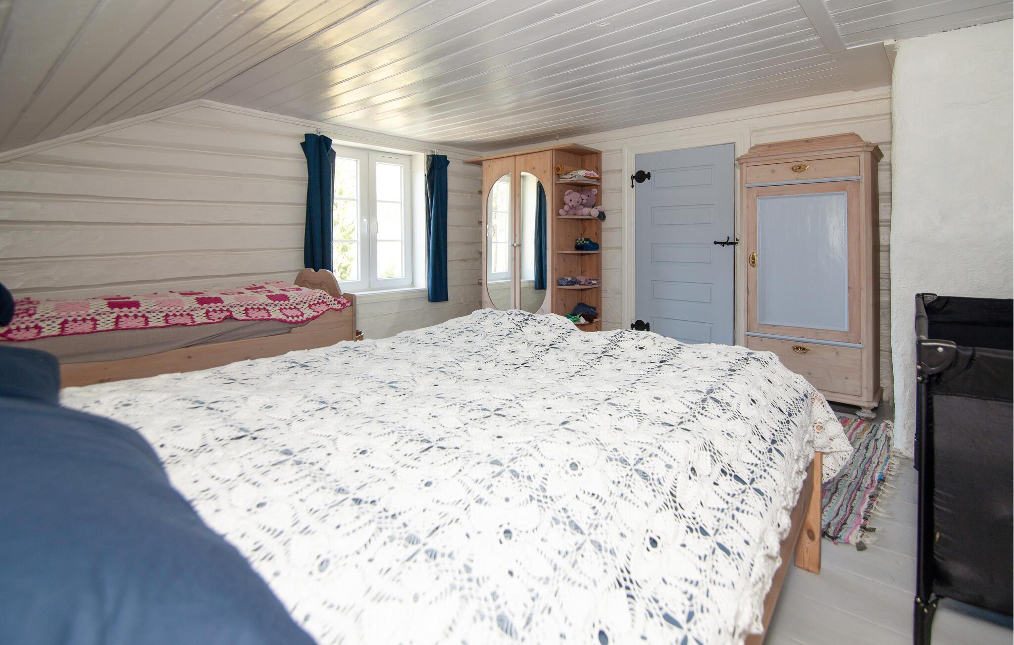 Jeres nænsomt renoverede bjælkehytte fra 1800-tallet byder på en lys og indbydende atmosfære. Her kan I nyde en afslappet pause fra hverdagen sammen med dem, I holder af, og samtidig udforske den betagende natur omkring jer. Tænd op i brændeovnen, og glæd jer til hyggelige måltider og spil i den smagfuldt indrettede stue.