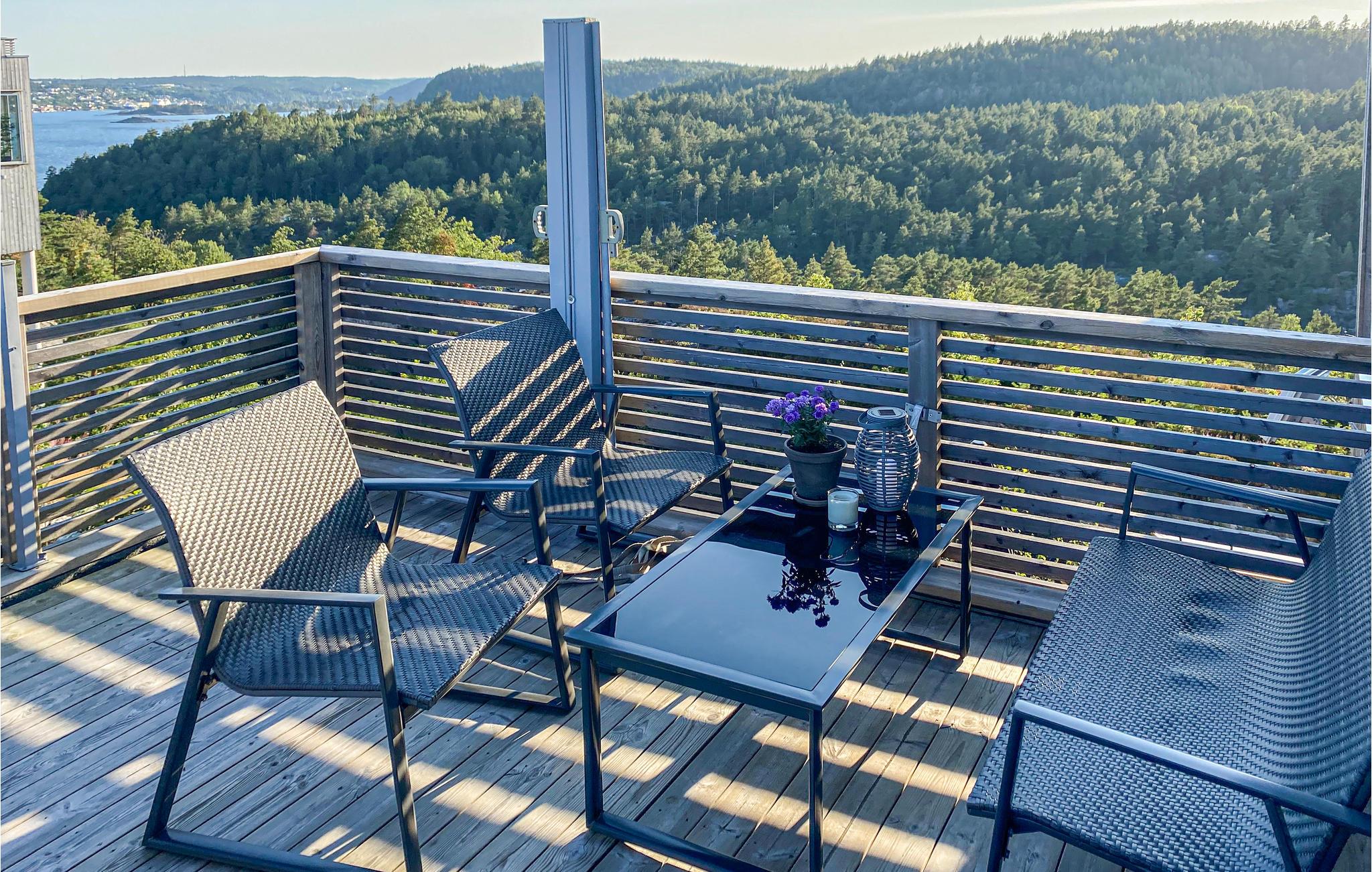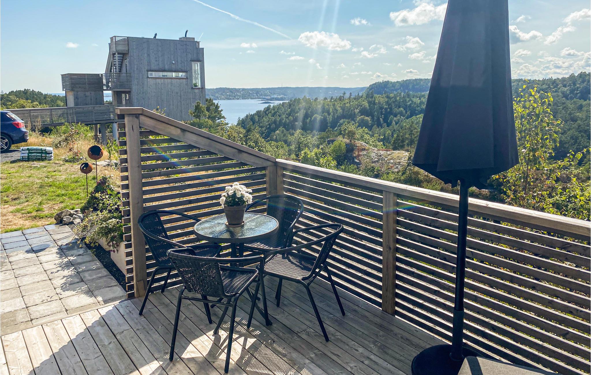 Huset har også solrige terrasser, perfekt til lange dage udenfor. I har 360-graders panoramaudsigt fra tagterrassen. Kan I forestille jer en bedre ramme for en bid brød med forsyninger fra den nærliggende gårdbutik? Om aftenen kan I grille eller bare slappe af og nyde udsigten.