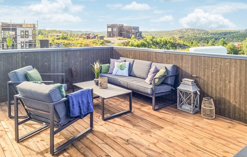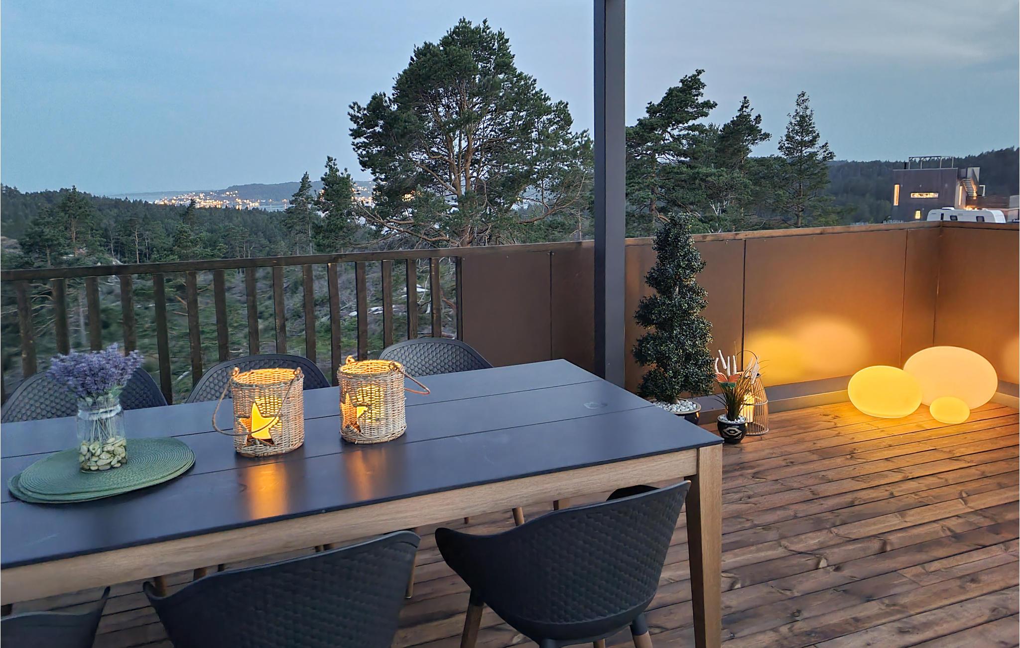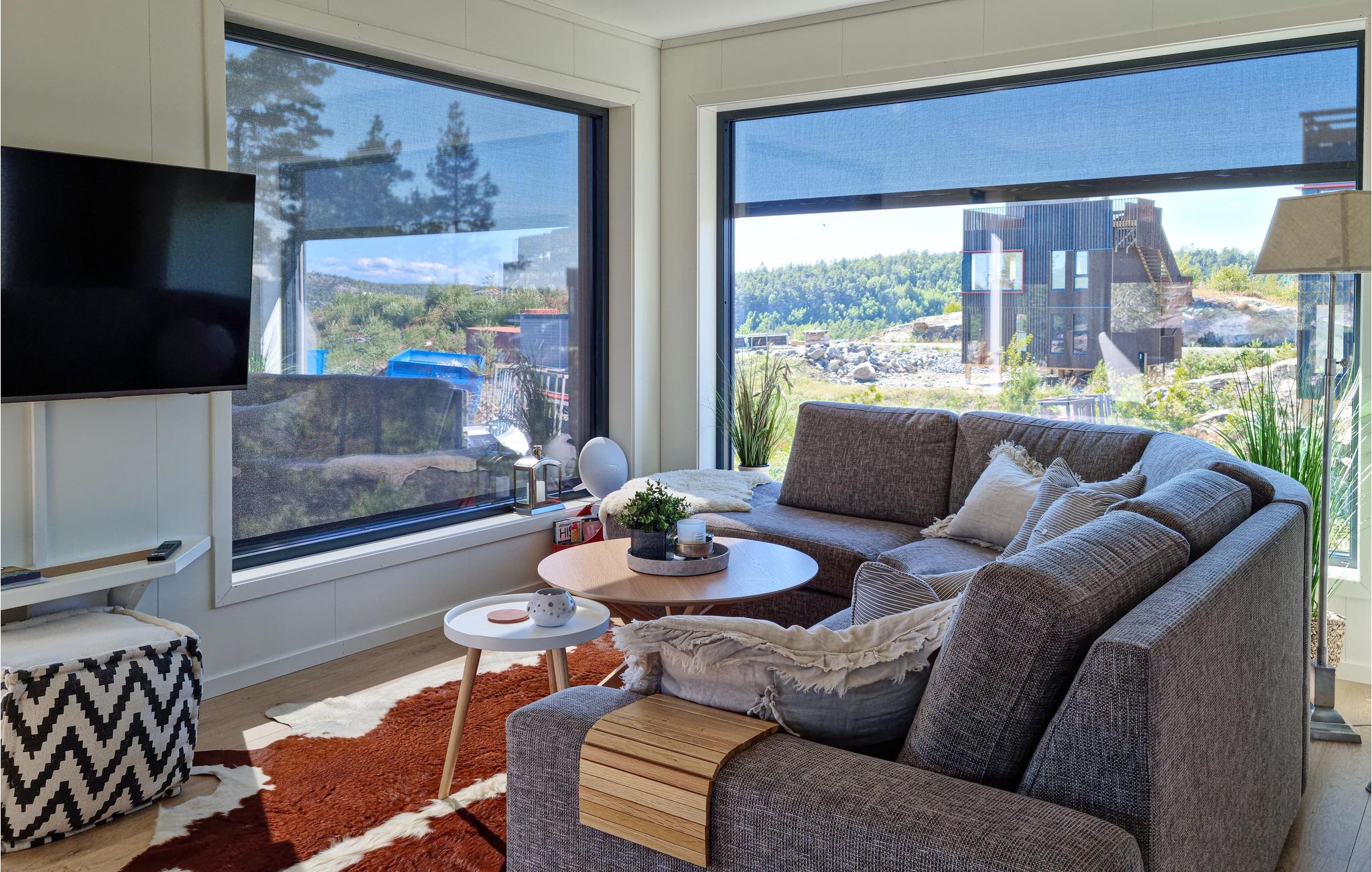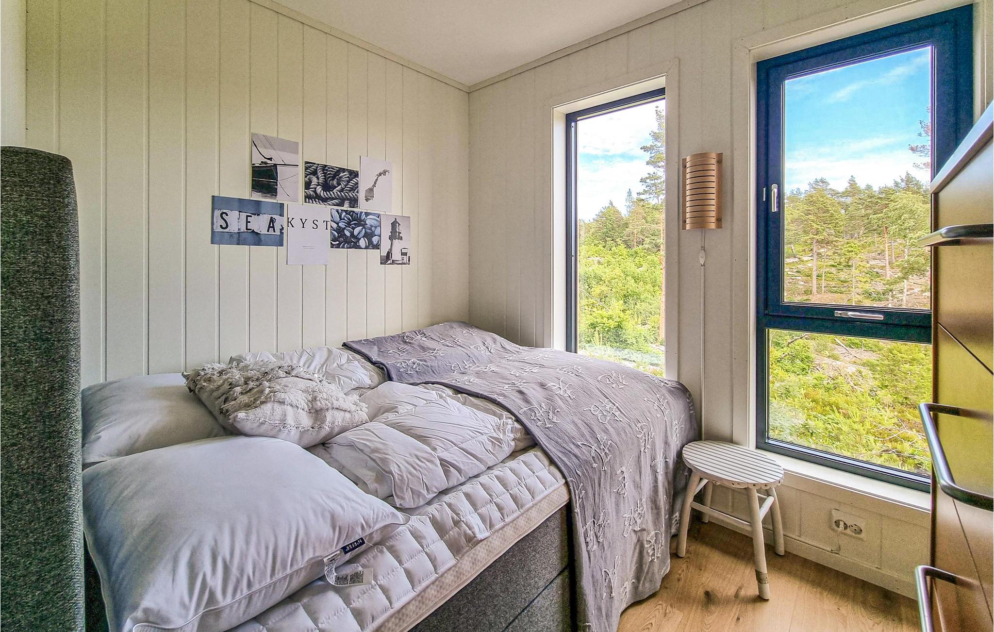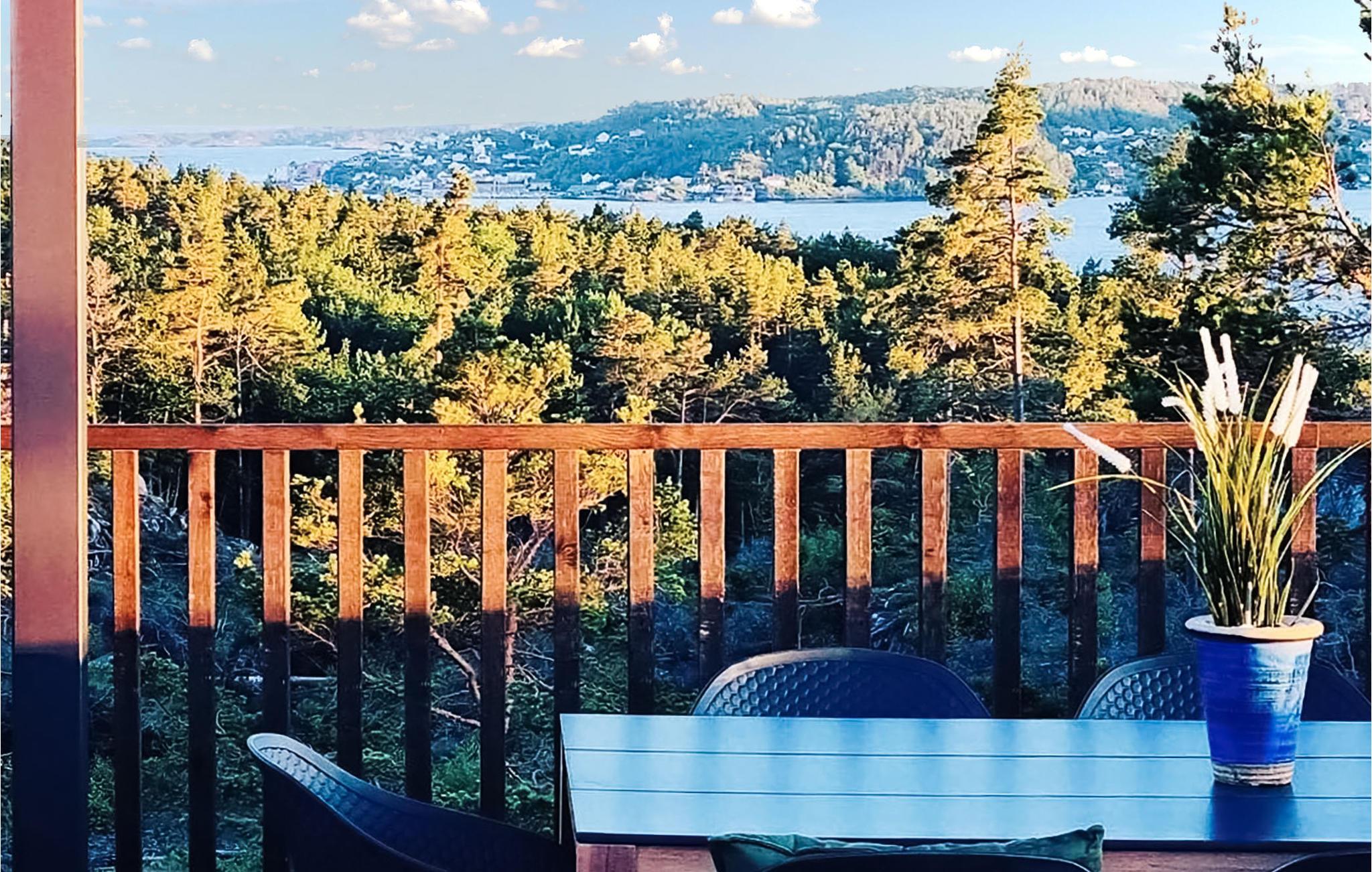 Velkommen til Øysang på Sørlandet. Dette moderne feriehus er veludstyret med alt, du behøver, til en fantastisk ferie med familie eller venner. Tag en kop kaffe med op på tagterrassen og nyd en fortryllende solopgang og delvis udsigt over fjorden. Stuen har åbent køkken og byder desuden på et vidunderligt udsyn til de skovrige omgivelser. Start dagen med en forfriskende dukkert i fjorden efterfulgt af lækker morgenmad i huset. Har I børn, vil de elske at løbe rundt og lege på den store naturgrund.
