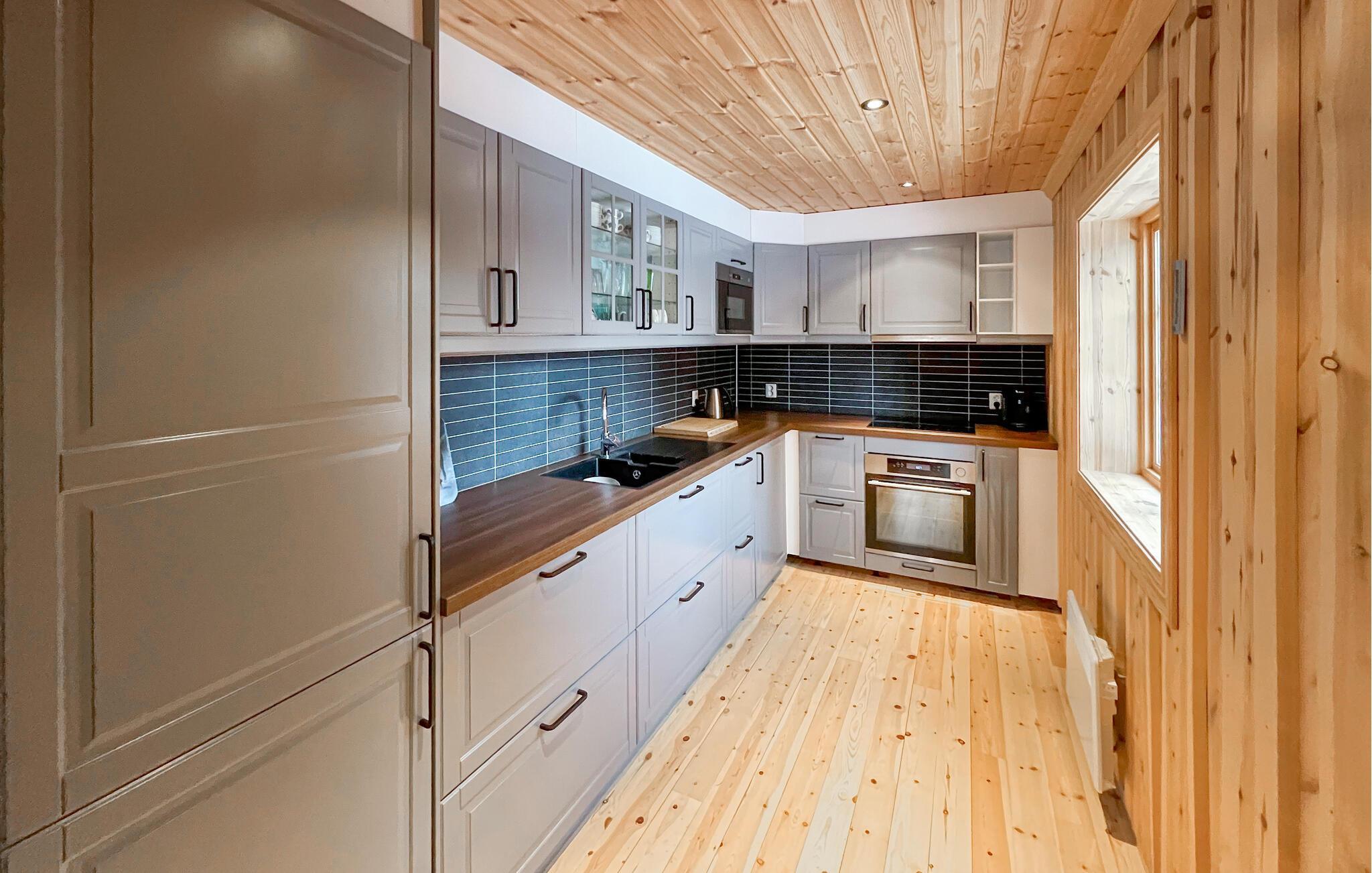Dette praktiske feriehus er ideelt for alle, der nyder at tilbringe tid i naturen. Huset ligger i idylliske omgivelser og byder på enkel indretning. Nyd omgængelige aftener i den hyggelige opholdsstue eller tilbered lækre måltider i det praktiske køkken. Føl jer godt tilpas på det rummelige opholdsområde og se en god film. Eller slap af foran brændeovnen efter en aktiv dag. Huset er noget særligt med sit enkle, men indbydende design med masser af træ, som skaber en varm atmosfære.