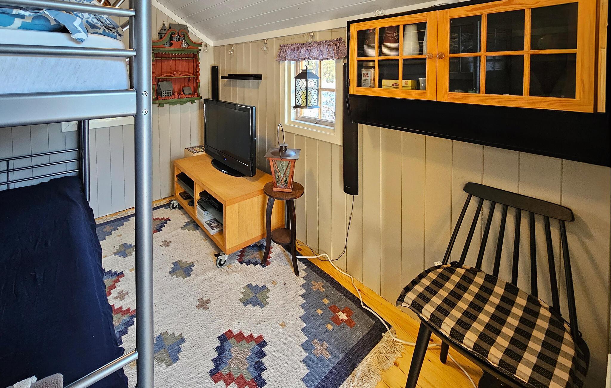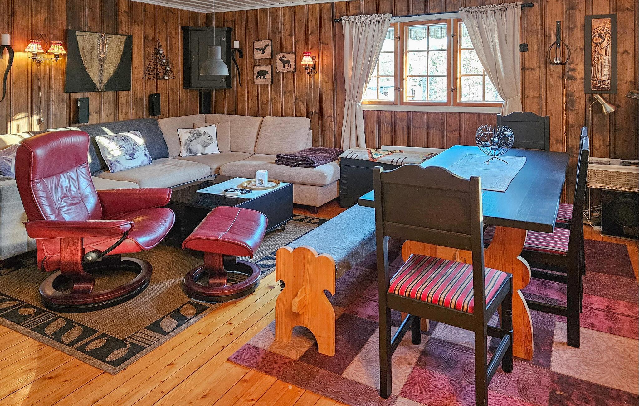 Velkommen til dette hyggelige sommerhus i Blefjell, som er noget særligt med sin varme atmosfære og sin beliggenhed i hjertet af naturen. Den rummelige opholdsstue med pejs lægger op til at slappe af efter en aktiv dag. Nyd hyggelige timer, mens I laver mad i det veludstyrede køkken eller spiser sammen i spiseområdet. De rustikke detaljer i indretningen skaber en hjemlig atmosfære, og terrassen byder på en vidunderlig udsigt over det omkringliggende landskab.
