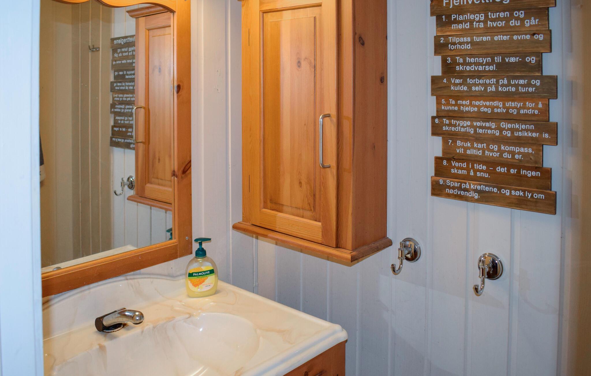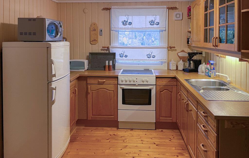 Tilbring hyggelige timer i den indbydende stue, der er udstyret med komfortable siddepladser. Træbeklædningen og de kærligt udvalgte detaljer giver rummet en autentisk norsk atmosfære. Benyt spiseområdet til at nyde lækre måltider og den fortryllende udsigt sammen med familien eller vennerne. Det praktisk indrettede køkken har alt, hvad I har brug for til at tilberede jeres yndlingsretter.
