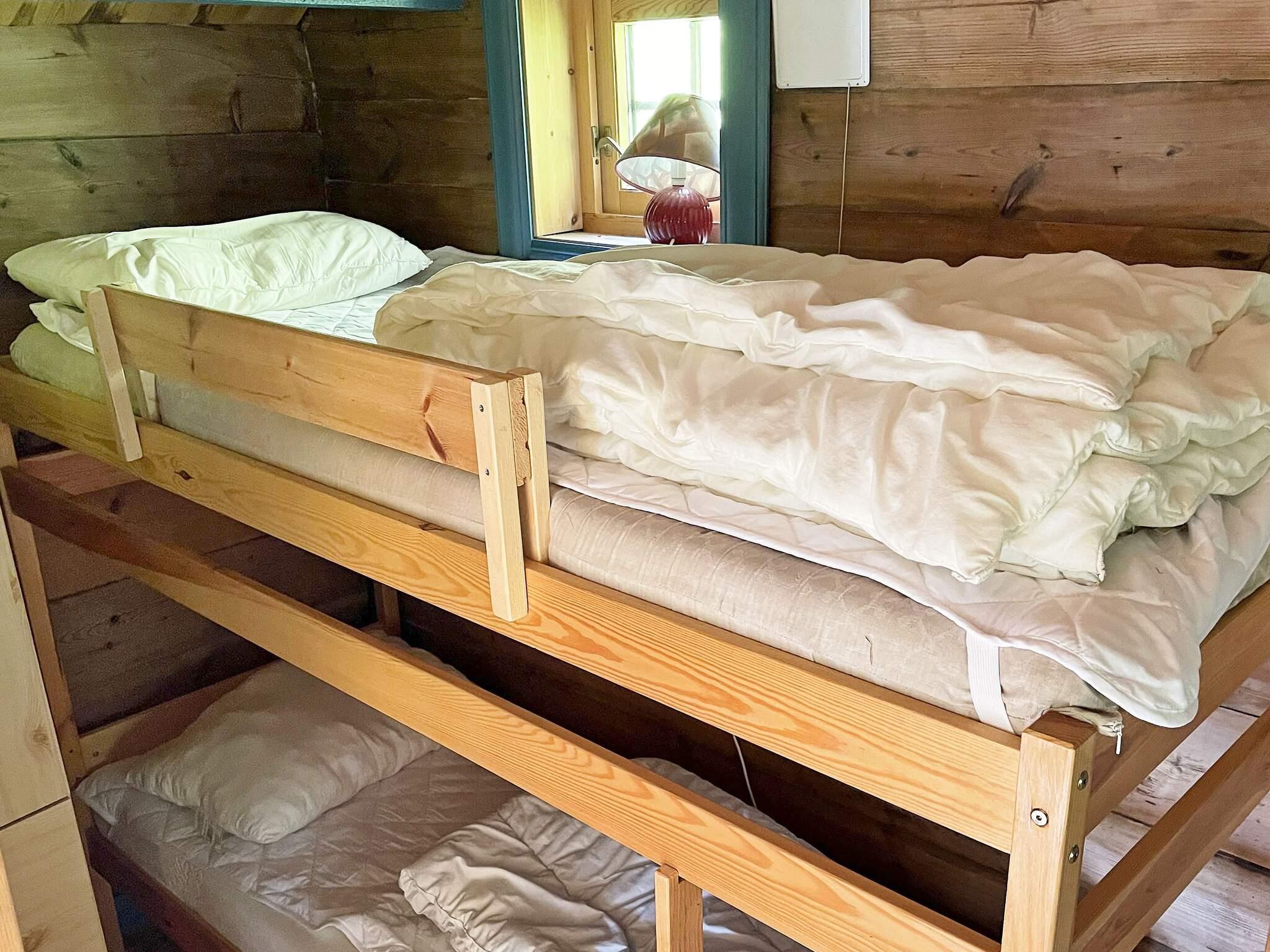 Feriehuset har kombinert stue og kjøkken. Ett soverom med dobbeltseng og køyeseng til 2 personer.
