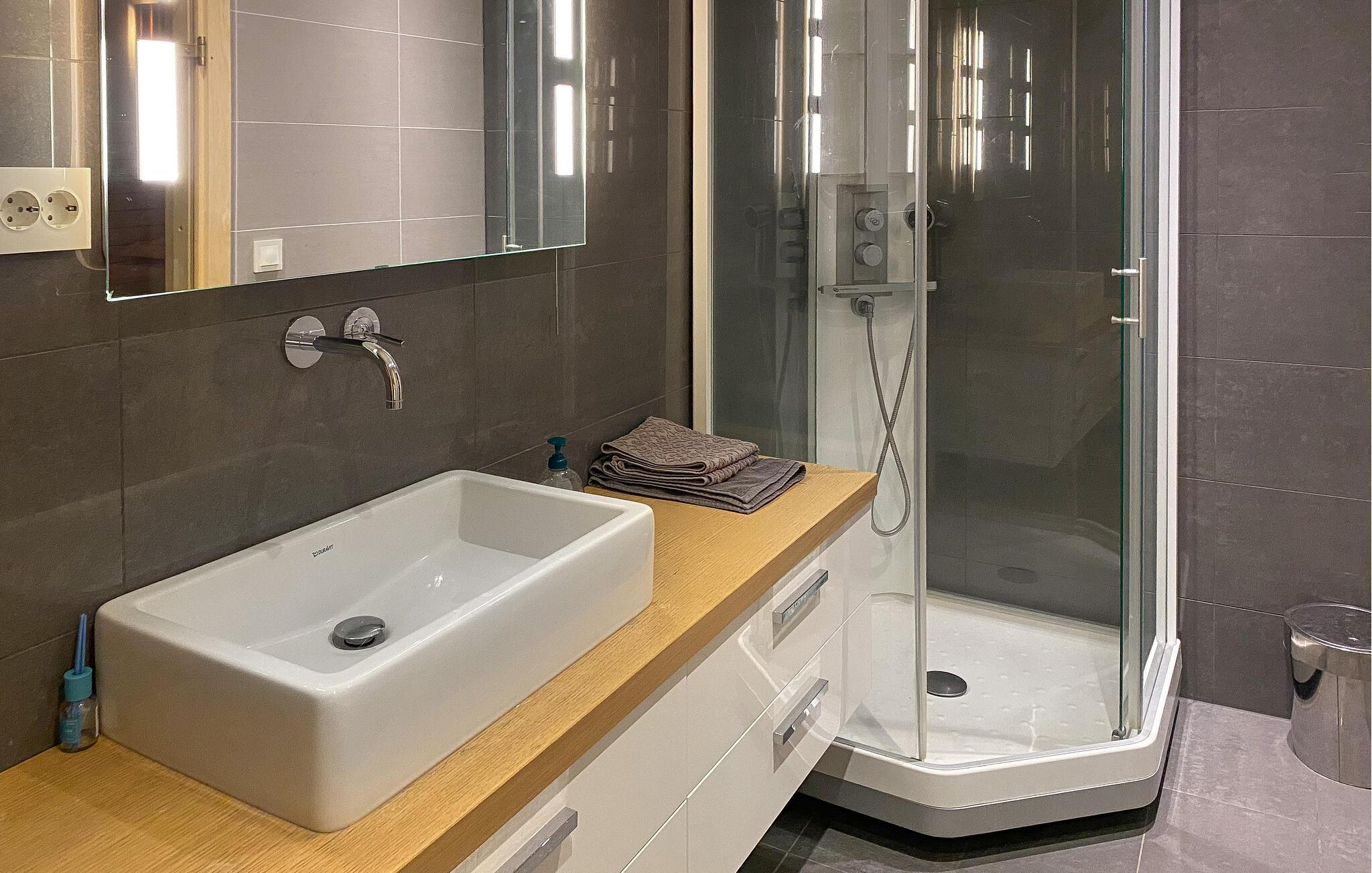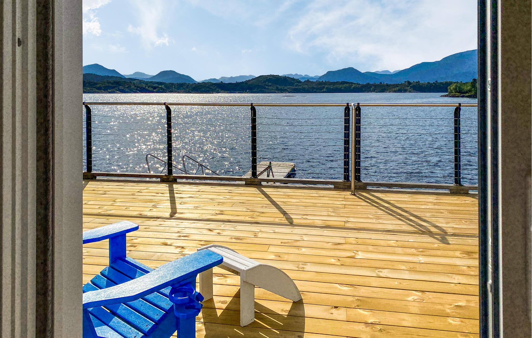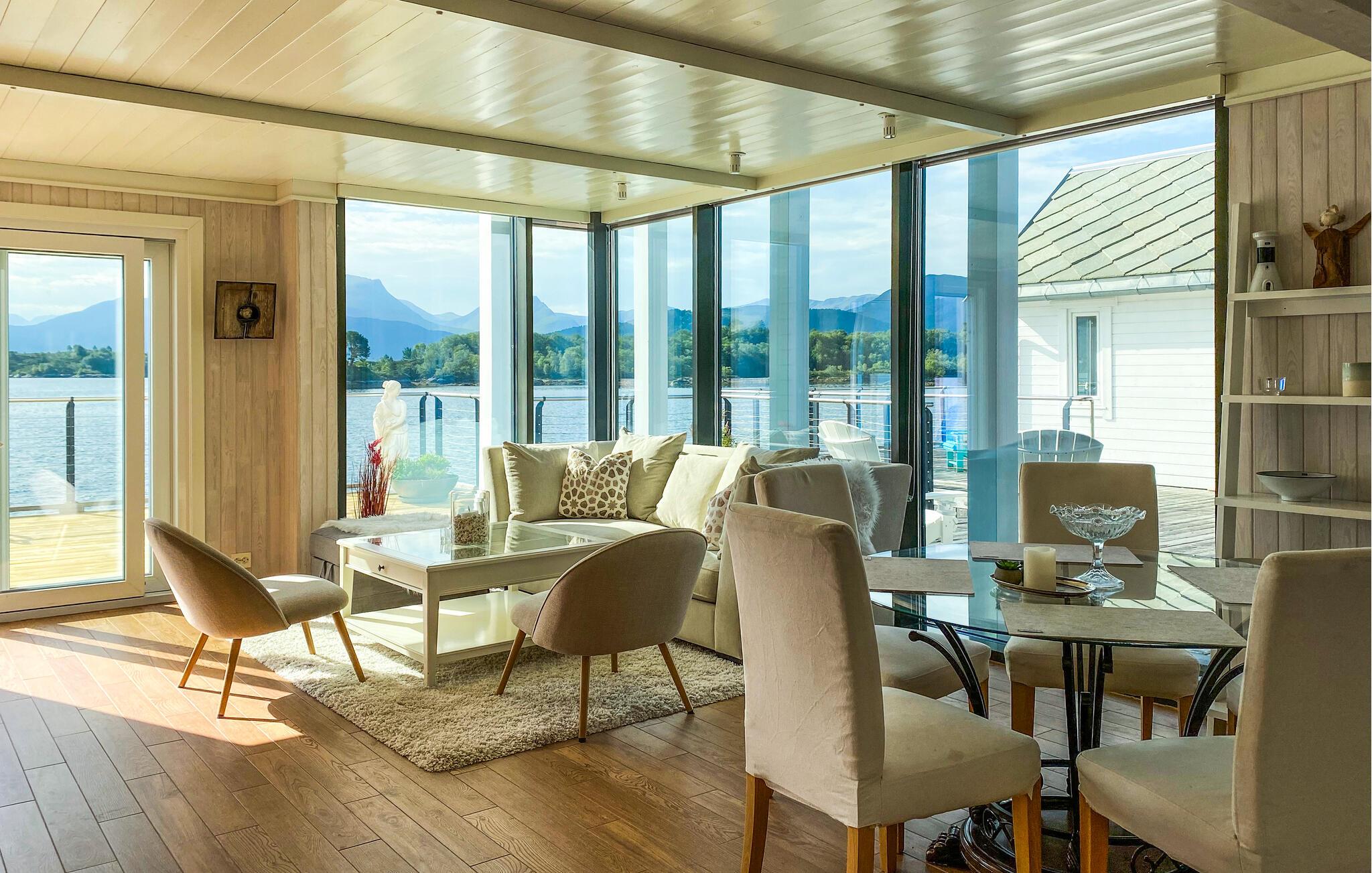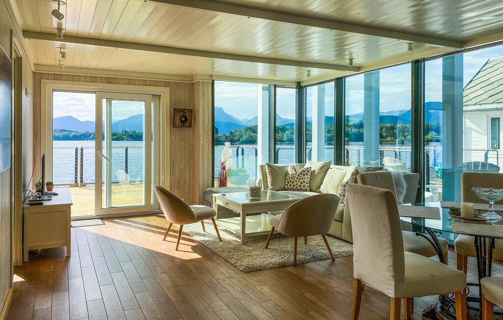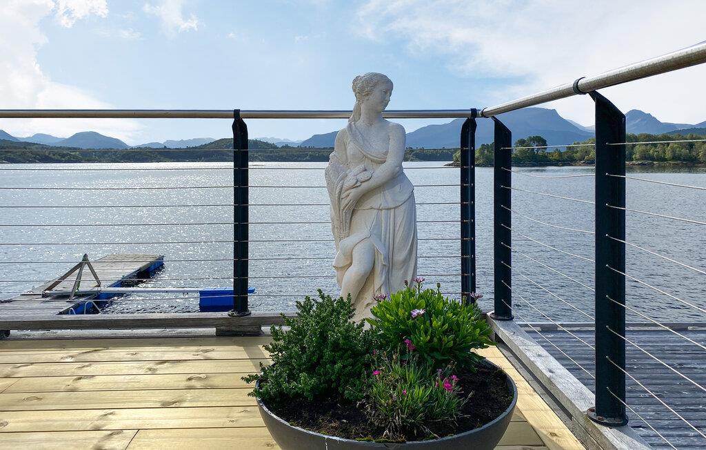 Forkæl jer selv med uforglemmelige dage i denne komfortable ferielejlighed med sauna og fortryllende udsigt over fjorden. Store glasfacader i denne rummelige og stilfuldt møblerede lejlighed tilbyder en sensationel udsigt over det glitrende vand uden for jeres hoveddør og sørger for behagelig belysning i den hyggelige opholdsstue. Fremtryl kulinariske lækkerier i det åbne køkken og nyd afslappede måltider ved det indbydende spisebord. Afslut en lang dag med en saunatur eller stream en god film på sofaen. Genopliv jeres sanser med en morgendukkert i fjorden, og server jer derefter en lækker morgenmad på jeres terrasse. Lej en båd og prøv lykken med fiskeri. Om aftenen kan I nyde den fredelige atmosfære med lækker grillmad. Ro kajak langs kysten og led efter idylliske steder til en picnic. Beundre jugendarkitekturen i Ålesund og besøg den fascinerende Atlanterhavspark. Forkæl jer selv med kulinariske lækkerier i Ulsteinvik, tag en tur til øen Runde, og oplev Ørsta og Volda på en afslappende udforskning.