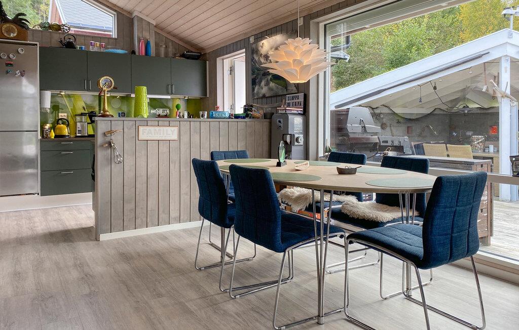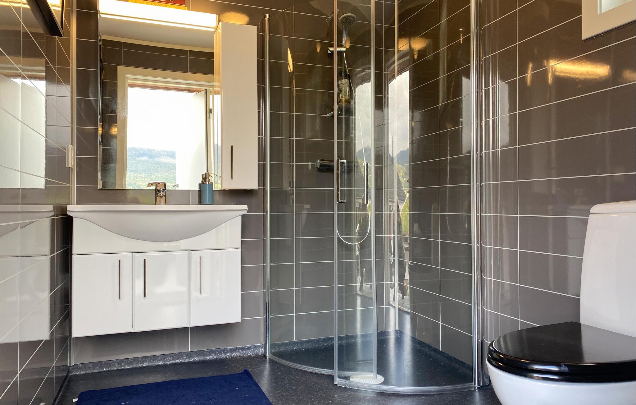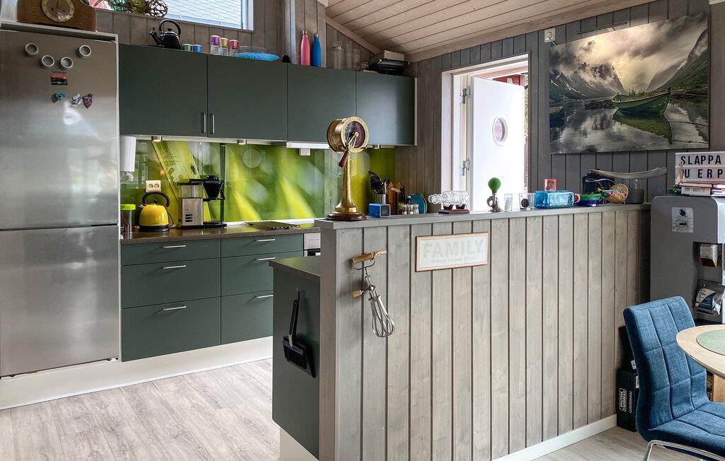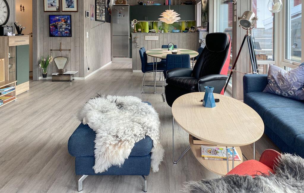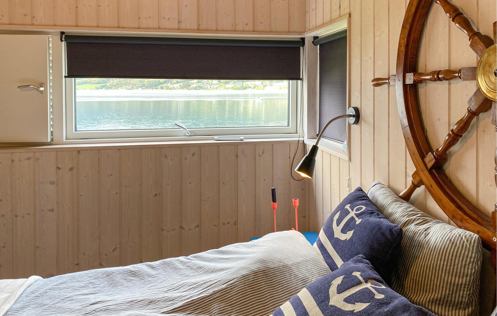 Den idylliske beliggenhed af jeres feriehus i Eidsvåg byder på en smuk udsigt over Langfjorden lige uden for døren og adgang til talrige aktiviteter. Her kan I opleve uforglemmelige dage i naturen. Begynd dagen med en hyggelig morgenmad ved det smukke spisebord ved siden af det veludstyrede køkken, mens I planlægger dagens aktiviteter. Den indbydende sofakrog med brændeovnen indbyder til afslappende timer, hvad enten det er til et spil kort med familien eller en hyggelig filmaften. Eller nyd blot den betagende udsigt over fjorden herfra. Feriehuset er smagfuldt indrettet, og de kærlige detaljer skaber en atmosfære, hvor I straks vil føle jer hjemme.
