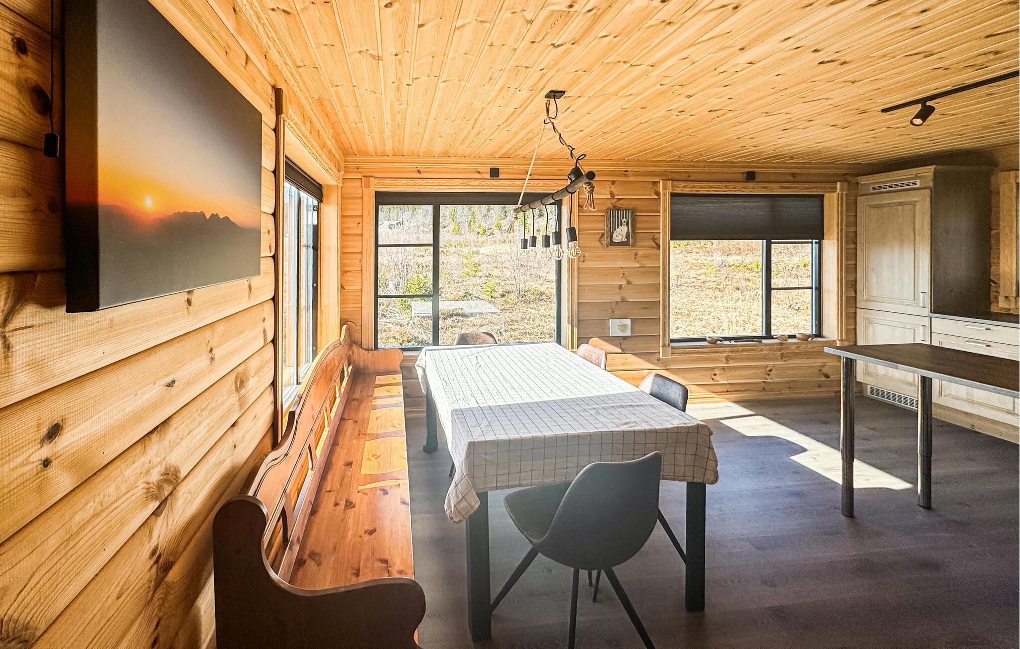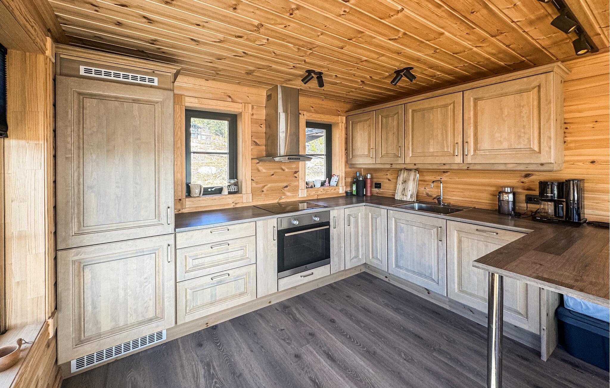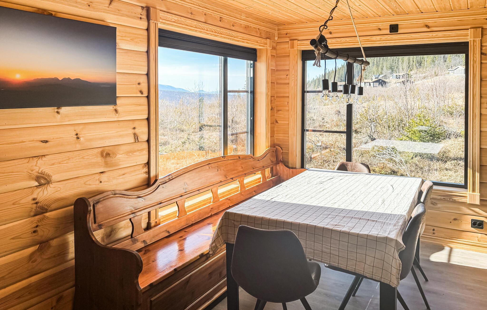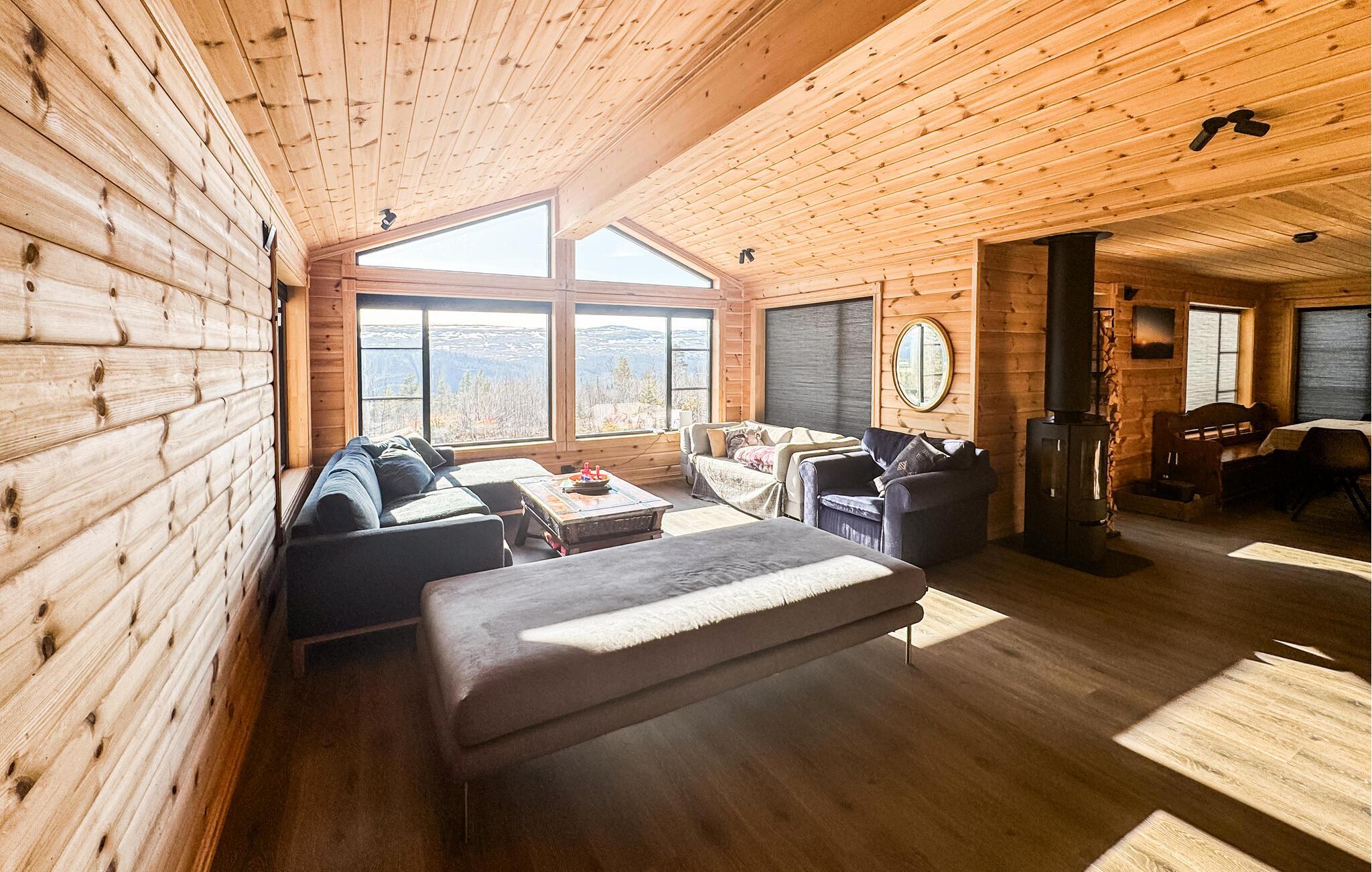 Huset fortryller med en vidunderlig udsigt, som I kan nyde under aktiviteterne takket være store panoramavinduer. Det være sig mens man spiser sammen på træbænken eller slapper af i sofaen og de behagelige lænestole efter en aktiv dag i naturen, mens en ild knitrer i brændeovnen.