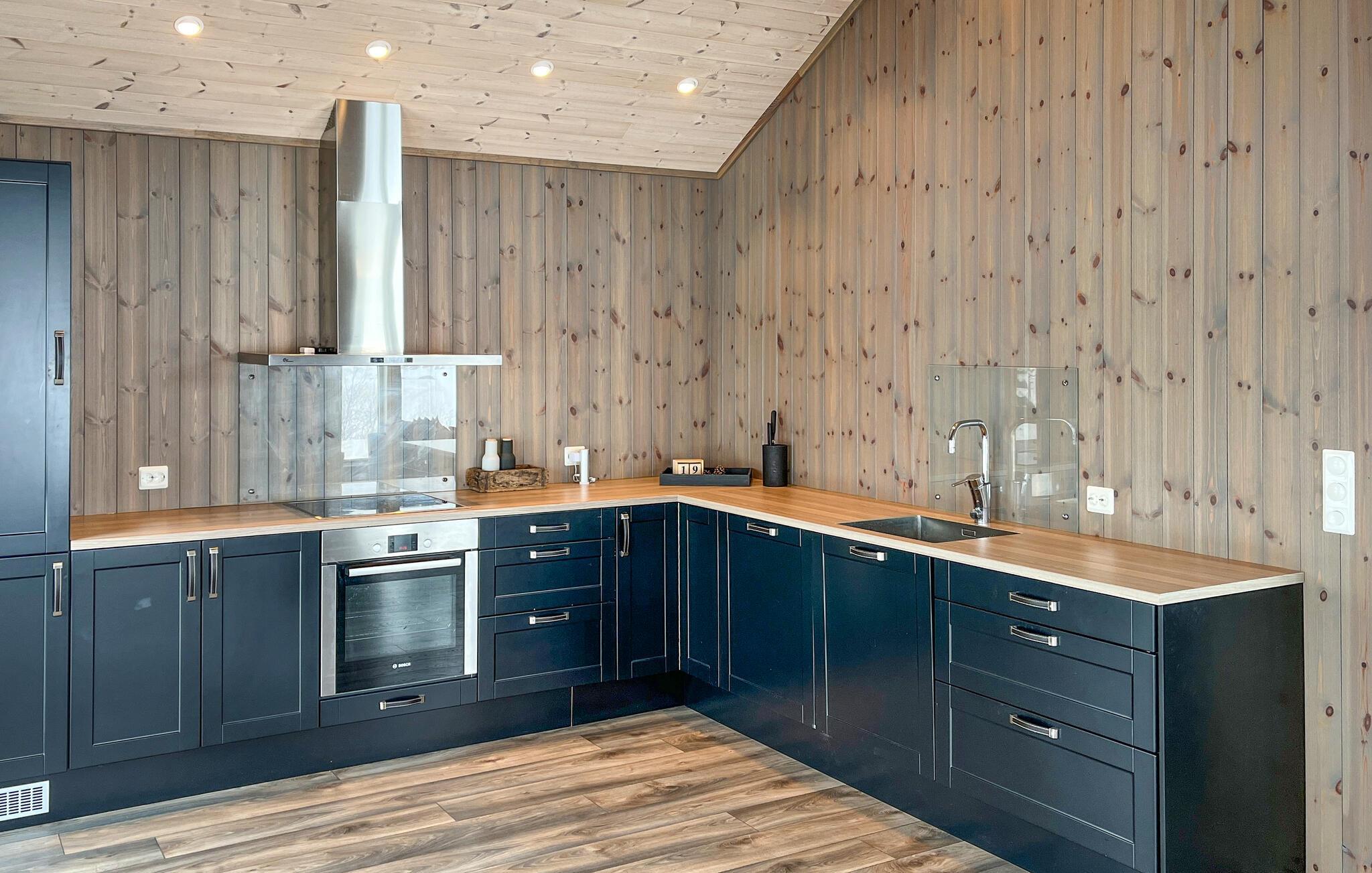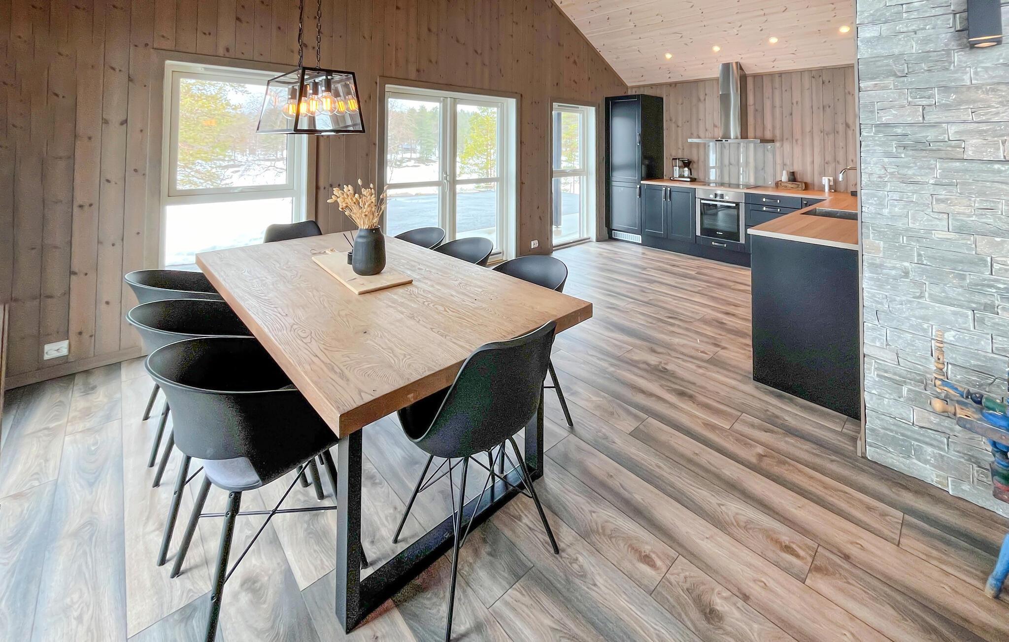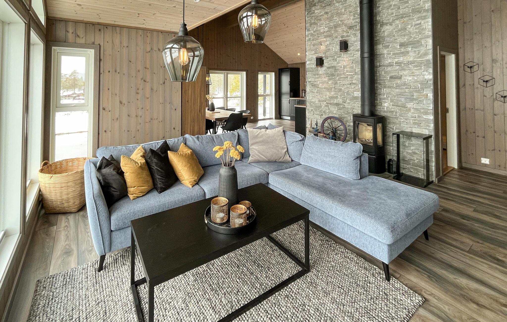 Velkommen til dette luksushus, der ligger højt oppe på et lille plateau og danner rammen om et fantastisk ophold med familien. Interiøret er virkelig flot og udført i kvalitetsmaterialer og varme farveskalaer, der med det samme får skuldrene til at sænke sig. Det emmer simpelthen af kvalitet over hele linjen med højt til loftet og store vinduespartier, der lader dagslyset sive ind og samtidig giver en flot udsigt over omgivelserne. Nyd godt af de moderne faciliteter og gør madlavningen til et ambitiøst fællesprojekt, mens andre tænder op i brændeovnen og dækker op til den store festmiddag ved spisebordet. Efter aftensmaden kan I trække over i de behagelige sofaer og runde dagen af med brætspil eller en god film, mens I lægger planer for de kommende dage.