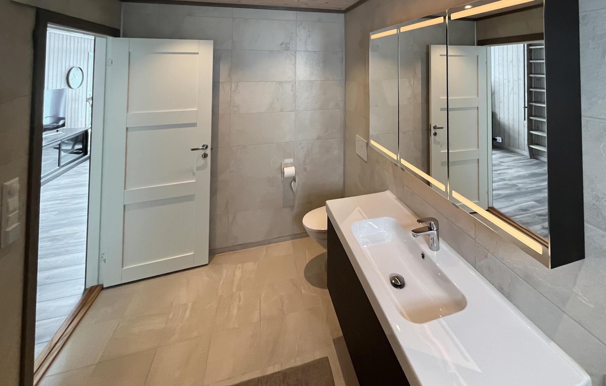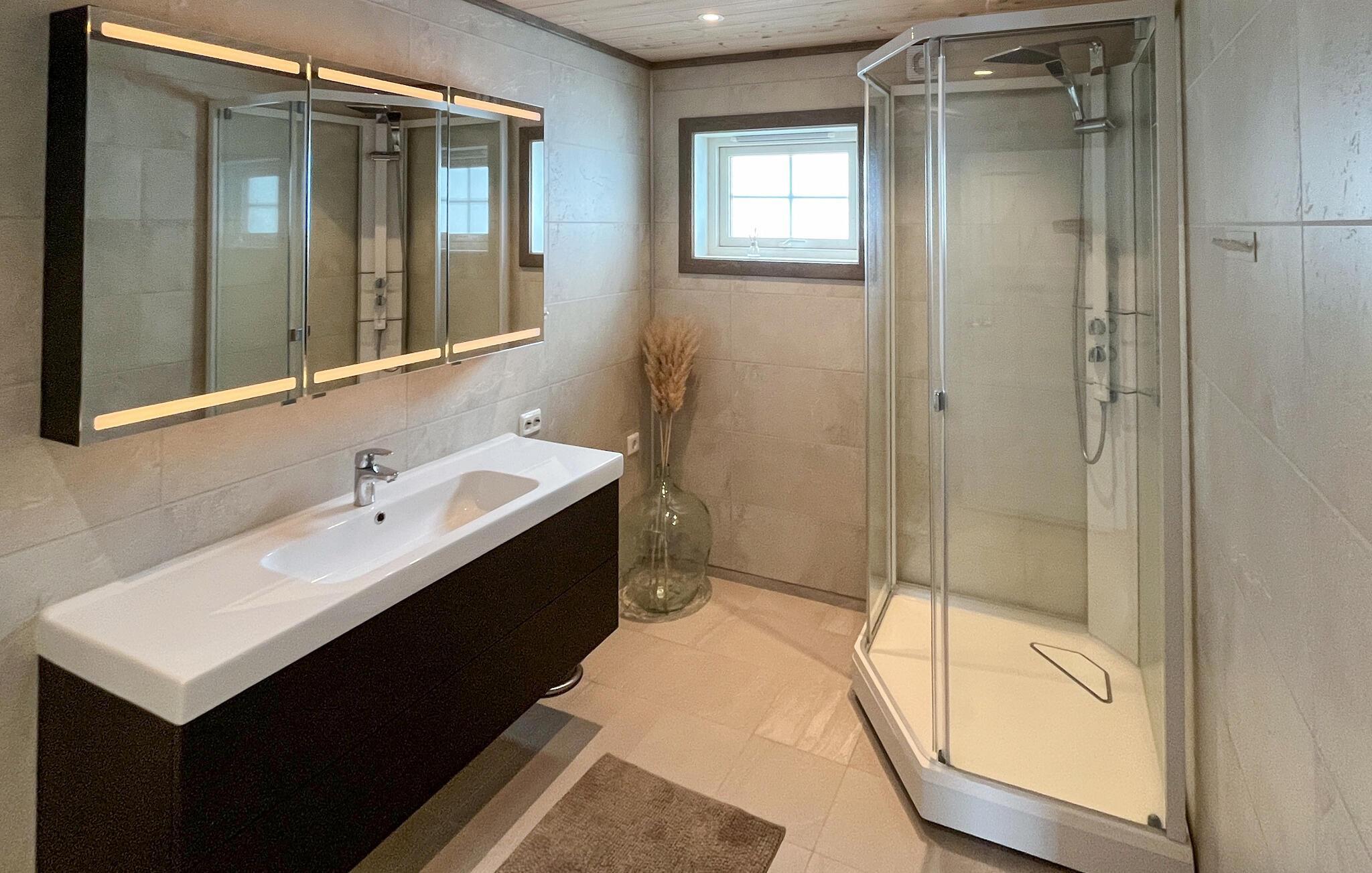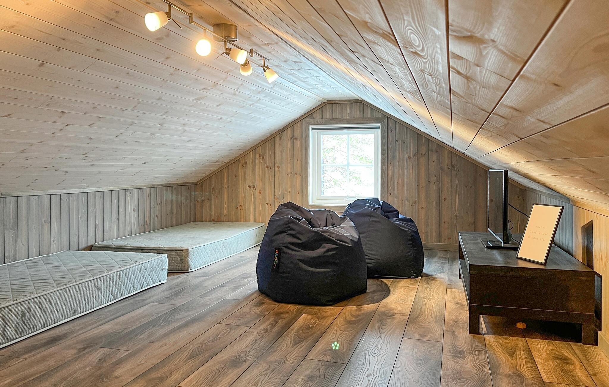 Velkommen til dette luksushus, der ligger højt oppe på et lille plateau og danner rammen om et fantastisk ophold med familien. Interiøret er virkelig flot og udført i kvalitetsmaterialer og varme farveskalaer, der med det samme får skuldrene til at sænke sig. Det emmer simpelthen af kvalitet over hele linjen med højt til loftet og store vinduespartier, der lader dagslyset sive ind og samtidig giver en flot udsigt over omgivelserne. Nyd godt af de moderne faciliteter og gør madlavningen til et ambitiøst fællesprojekt, mens andre tænder op i brændeovnen og dækker op til den store festmiddag ved spisebordet. Efter aftensmaden kan I trække over i de behagelige sofaer og runde dagen af med brætspil eller en god film, mens I lægger planer for de kommende dage.