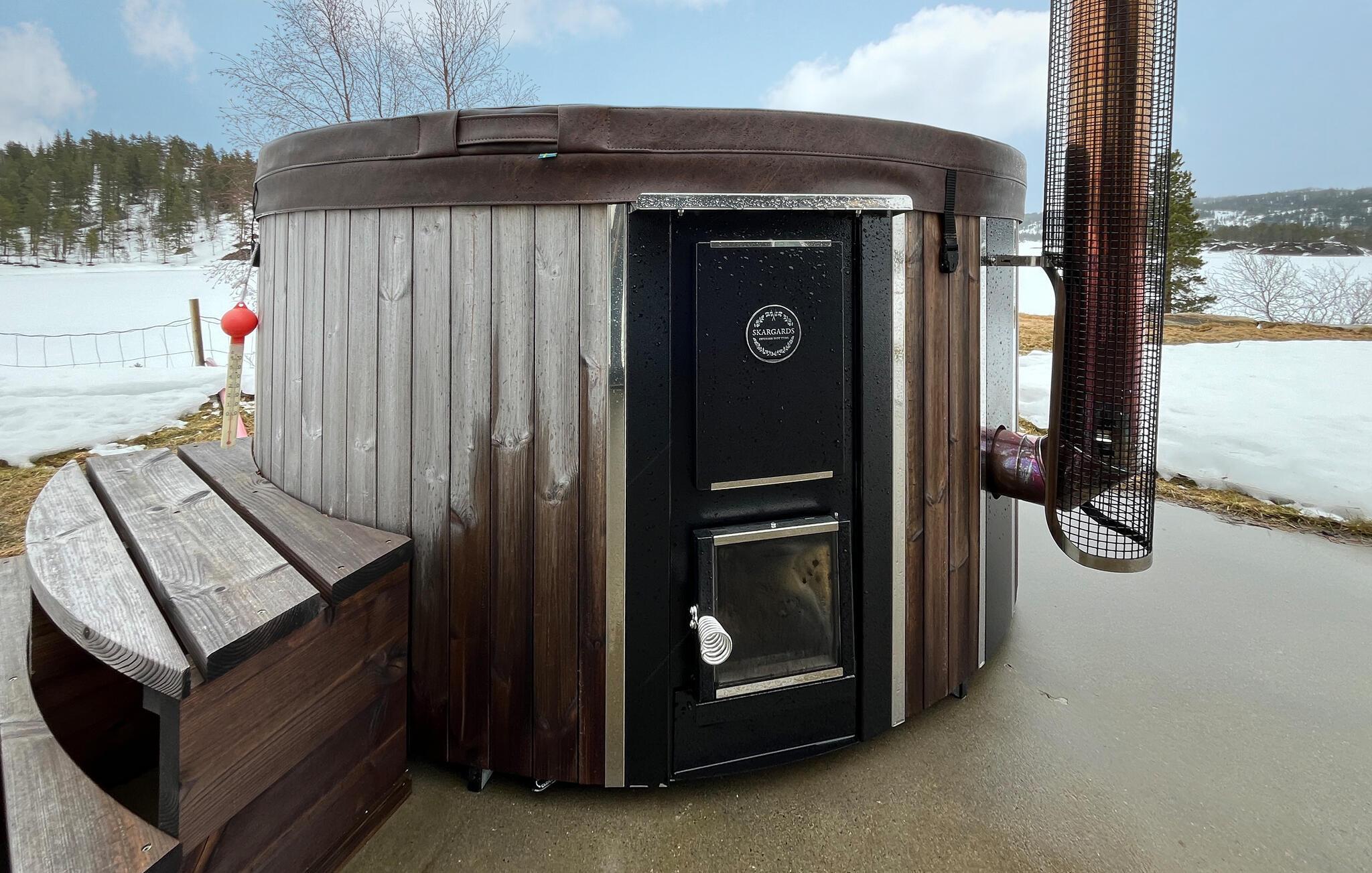 Udeområdet er tilsvarende dejligt. Her kan I slappe af på den rummelige terrasse og gøre det ekstra godt for jer selv i vildmarksbadet, der nydes bedst under den stjerneklare himmel.