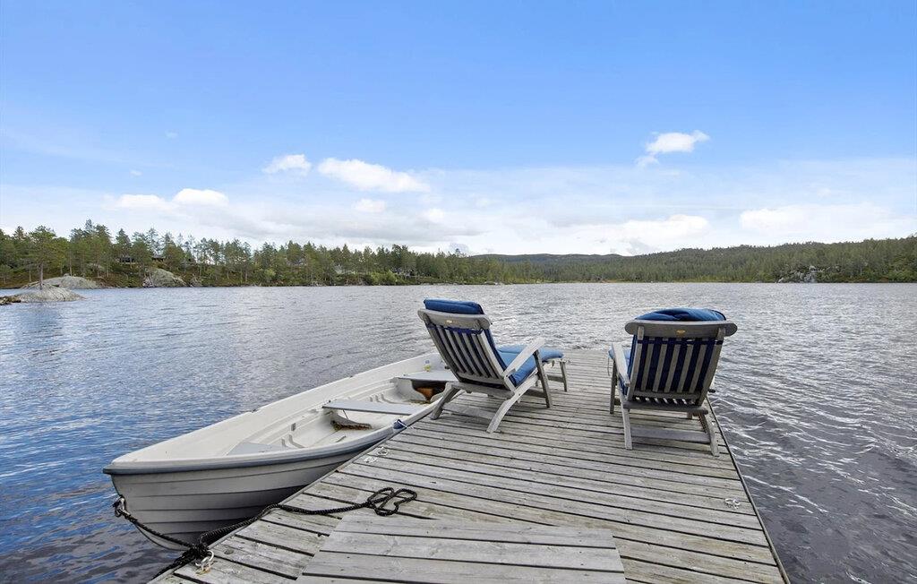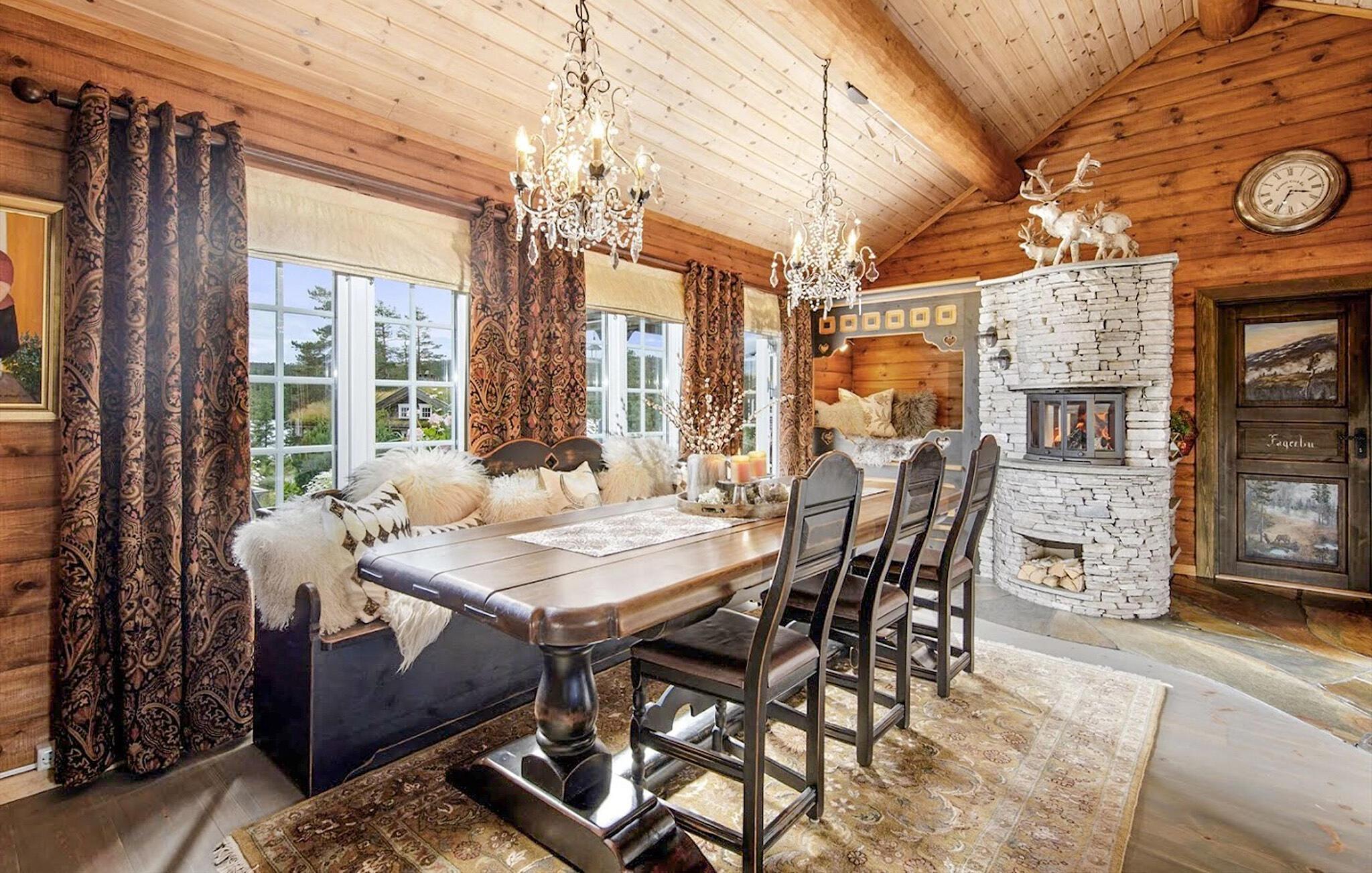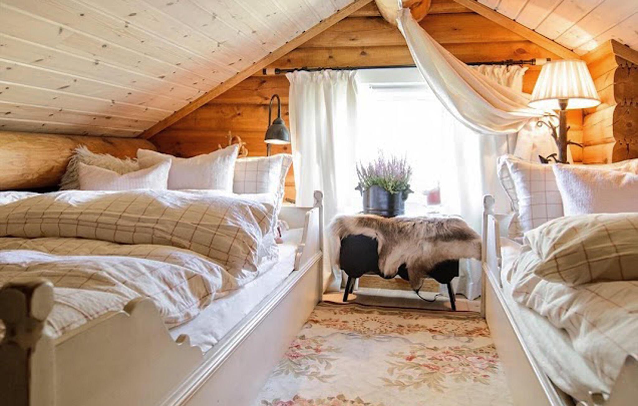 Denne rummelige og komfortable hytte byder jer velkommen ved bredden af ??den maleriske Sandvatnet-sø og er noget særligt med sit hyggelige, smukt udformede interiør. Store vinduer tilbyder udsigt over de charmerende omgivelser, og blød belysning skaber en hyggelig atmosfære. Glæd jer til hyggelige måltider, slap af i saunaen efter en lang dag udendørs og lad de to pejse give ekstra komfort under harmoniske spilleaftener eller stille læsestunder.
