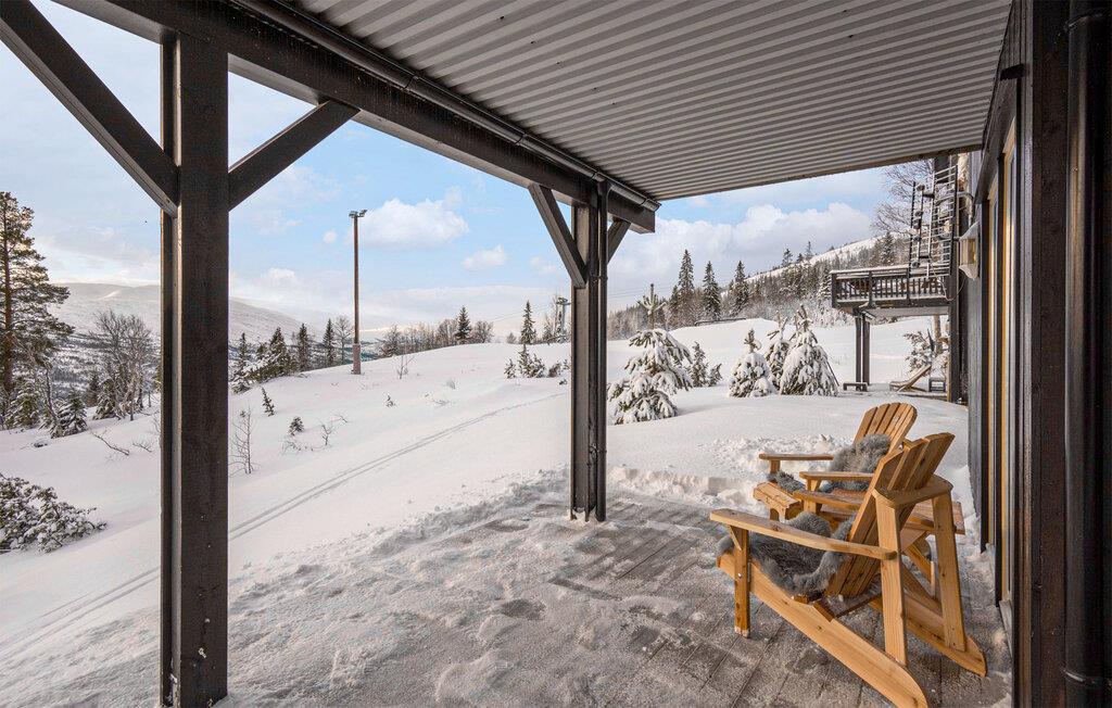 Den overdækkede terrasse indbyder til afslappende stunder i den friske vinterluft. Nyd en varm drik, mens I lader blikket vandre over det idylliske landskab og lytter til naturens ro.