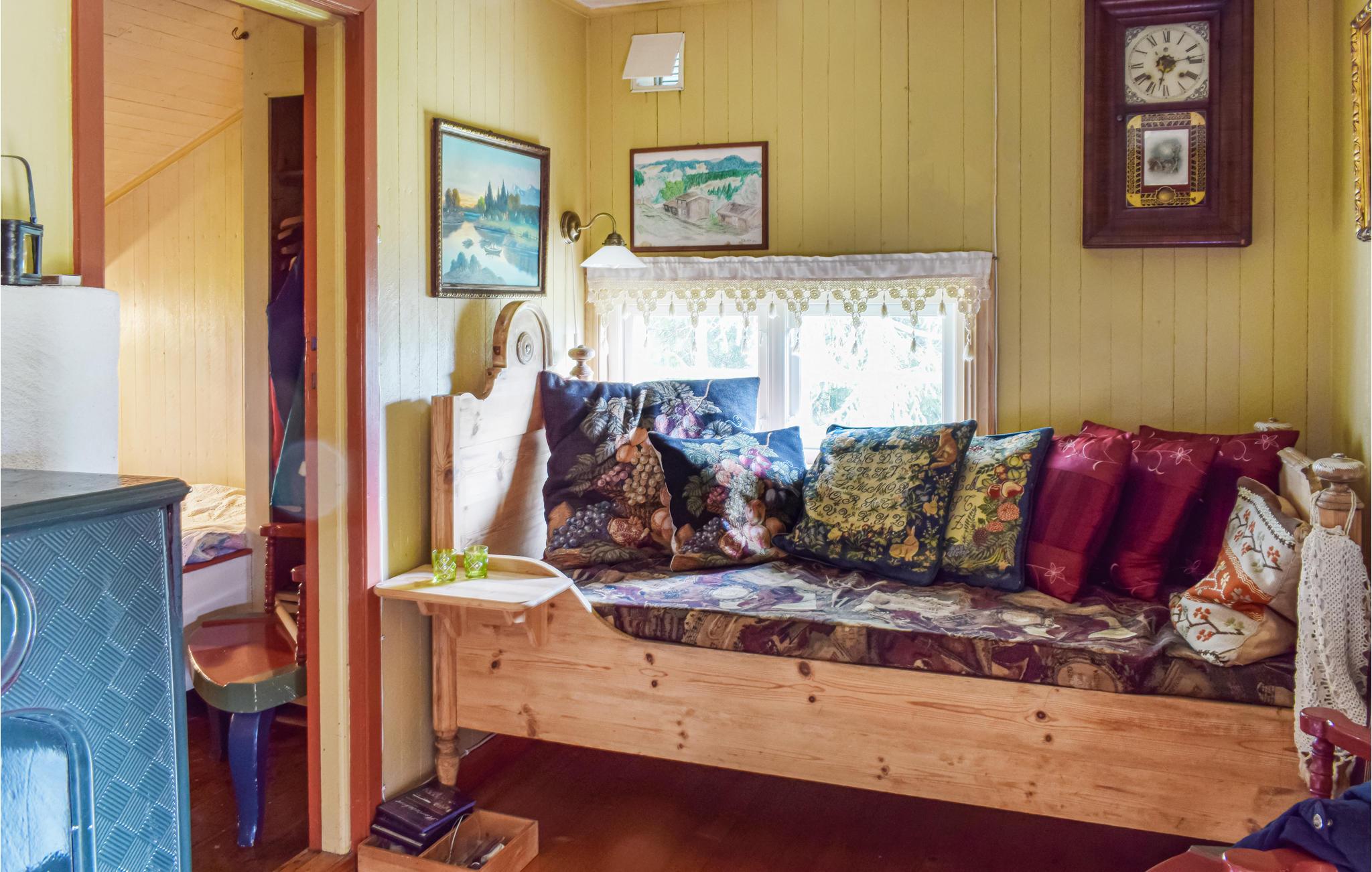 Fordyb jer i det idylliske norske landskab og nyd afslappende dage i dette enkle, men charmerende feriehus omgivet af natur. Huset giver jer rustik indkvartering til jeres næste ferie. Indenfor finder I et hyggeligt interiør med kærligt udvalgte møbler. Føl jer godt tilpas i det indbydende opholdsområde med en bog eller en kop te, og lad den varme, rustikke atmosfære virke magi på jer. Ved spisebordet har I plads nok til at spise sammen med familie eller venner. Her kan I også hygge jer med sjove bræt- eller kortspil efter en lang dag i naturen.
